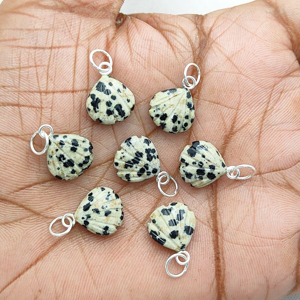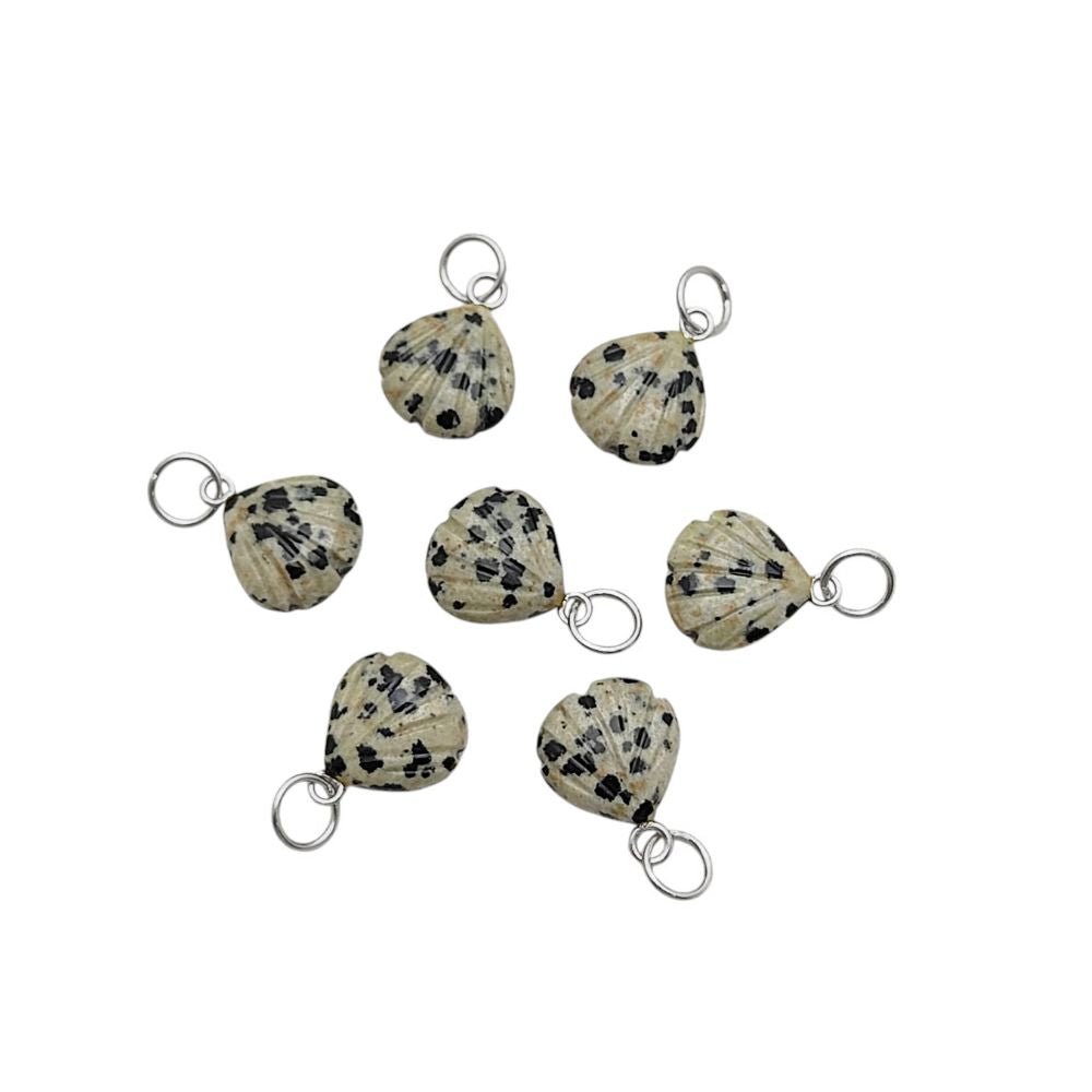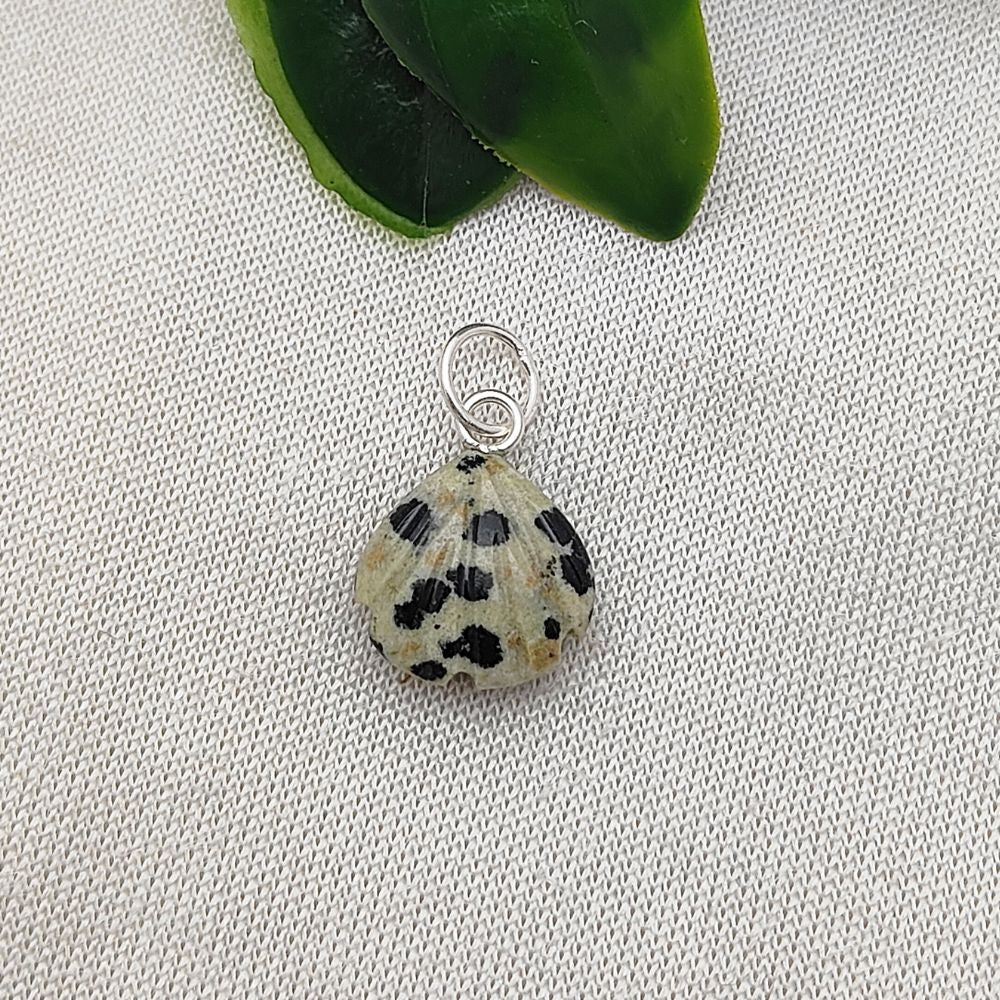 Handmade Dalmatian Jasper Pendant Heart Seashell Charm in Gold Plated Sterling Silver
