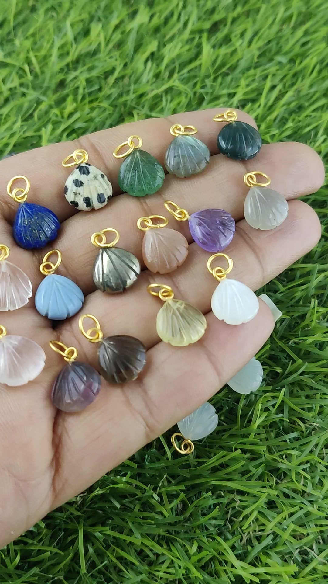 Handmade Gold Plated Sterling Silver SeaShell Pendant with Multi Gemstones Elegant & Dainty Jewelry-Selling Per Piece