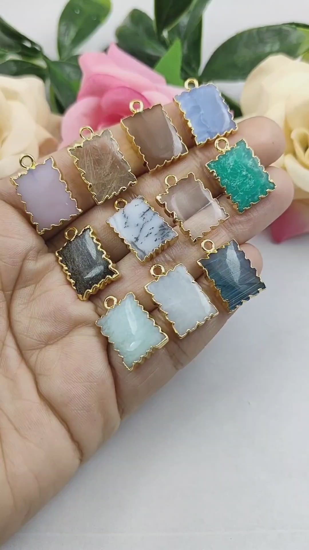 Handmade Gold/Silver Electroplated Slice Zig Zag Pendant 16x12mm Rectangle Multi Gemstone Minimalist Jewelry For Women- Selling Per Piece