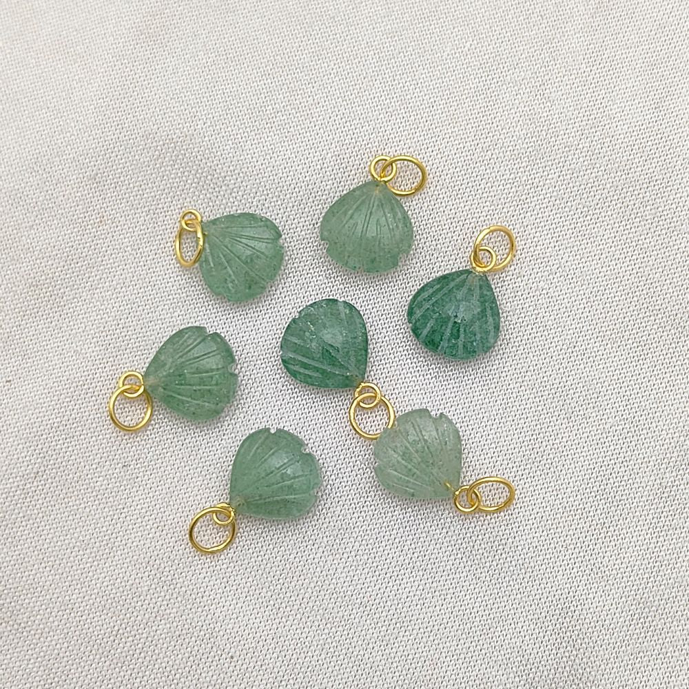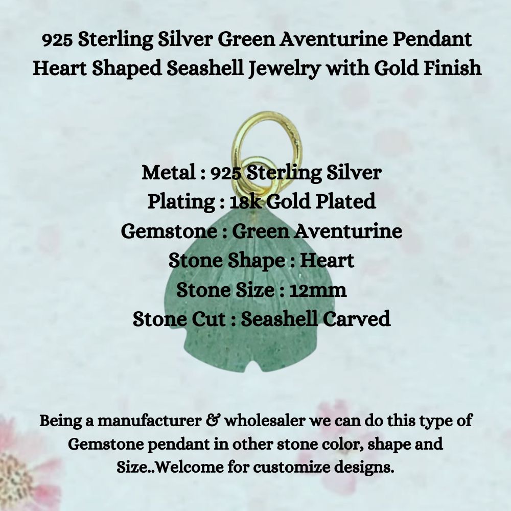 Handmade Green Aventurine Seashell Pendant with Gold Plated Sterling Silver