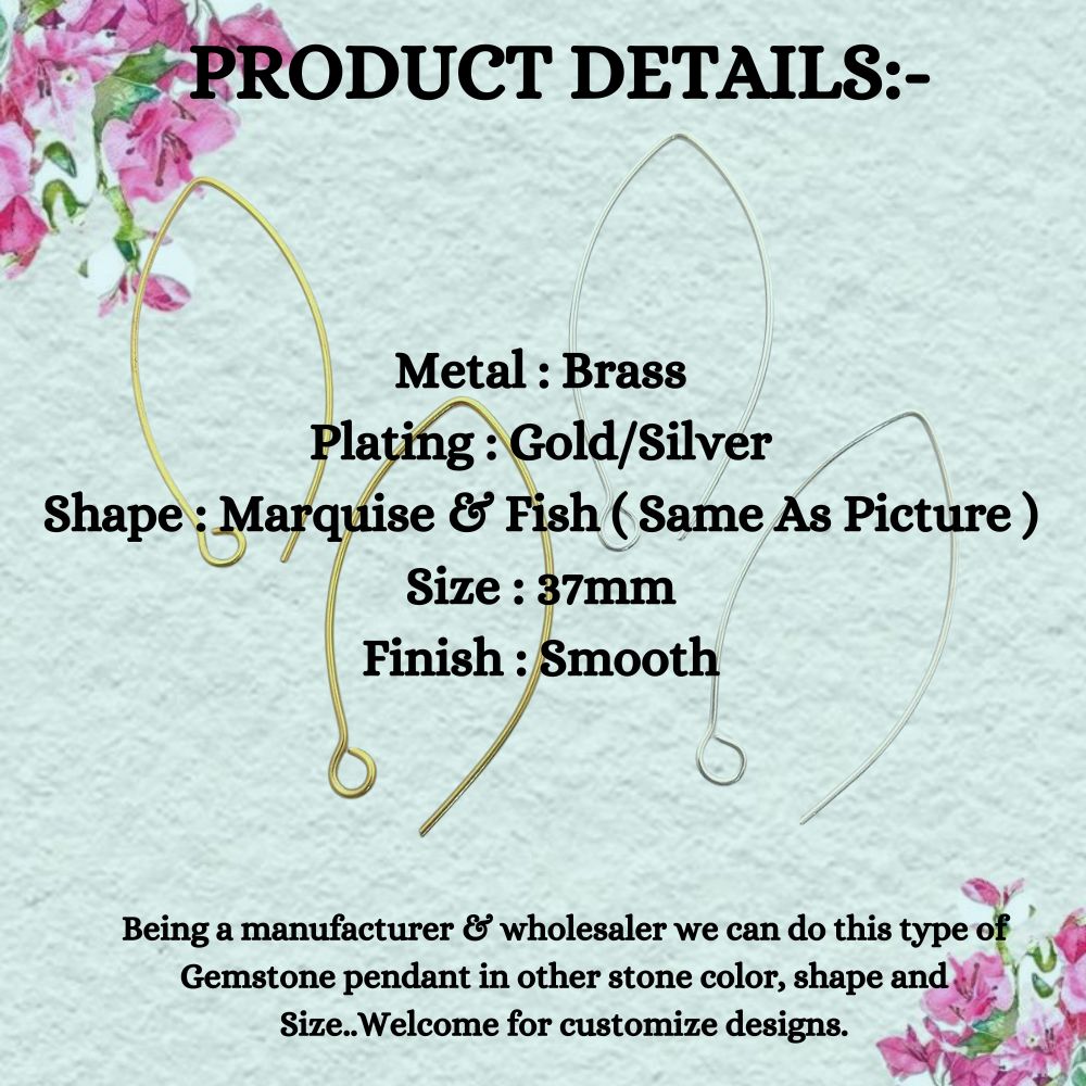 Elevate your DIY jewelry designs with these Handmade Gold & Silver Plated Long Marquise Ear Wires. Crafted for elegance and durability, these earwires are perfect for creating dangling earrings, beaded designs, charms, and other handmade jewelry.