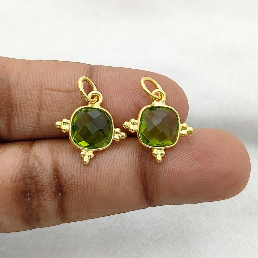 Handmade Peridot Pendant 8mm Cushion Cut Gemstone in Gold Plated Sterling Silver