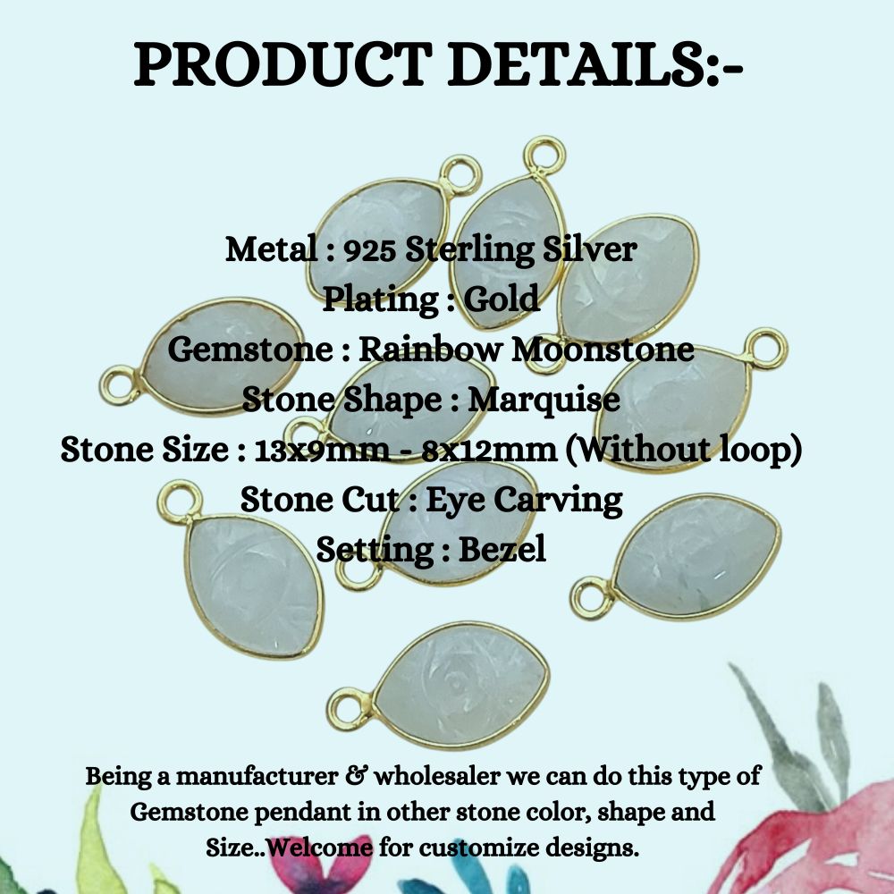 Handmade Rainbow Moonstone Evil Eye Pendant in Gold Plated Sterling Silver Unique Hand-Carved Crystal Charm- Selling Per Piece