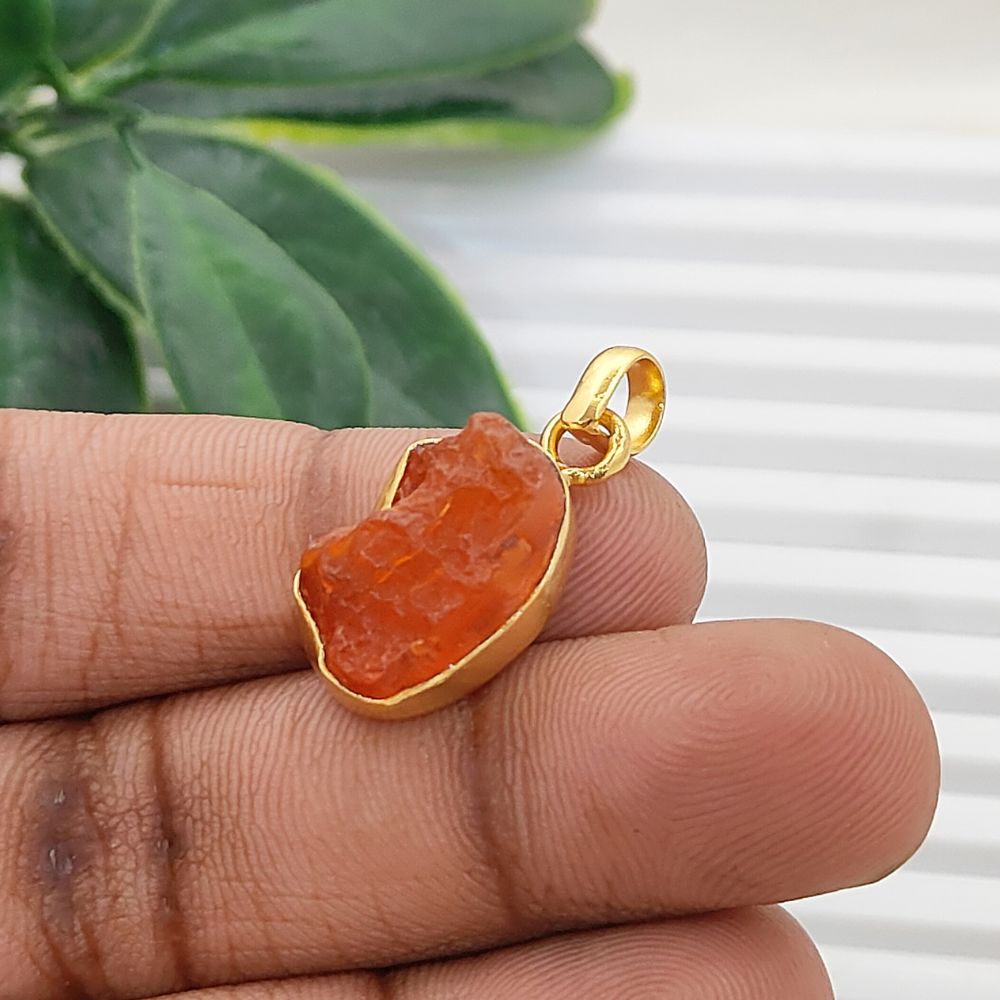 Add a warm, earthy glow to your jewelry designs with this handmade rough Carnelian pendant, beautifully crafted in a classic collet setting. Each piece features a natural raw Carnelian gemstone, preserving its organic texture and rich orange-red tones for an authentic, rustic look.