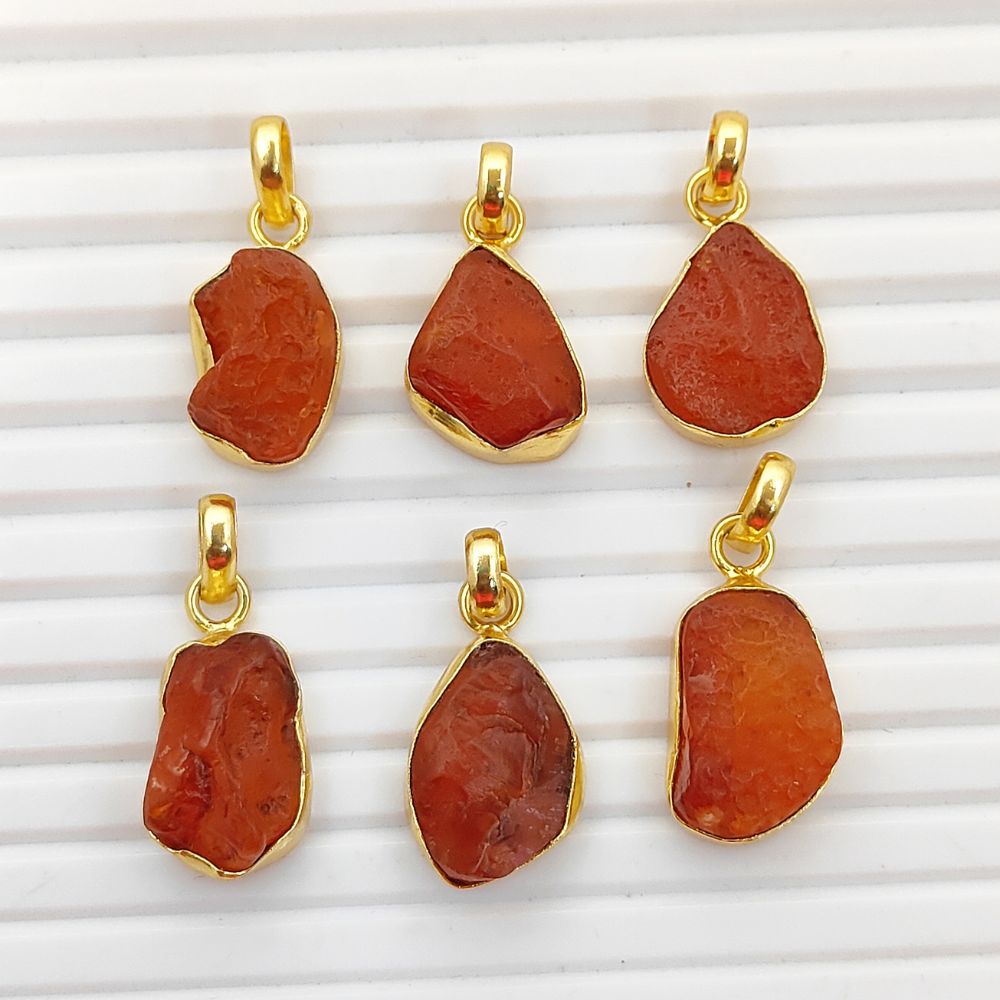 Handmade Rough Carnelian Pendant, Natural Raw Carnelian Gemstone Collet Set Charm for DIY Jewelry Making- Selling Per Piece