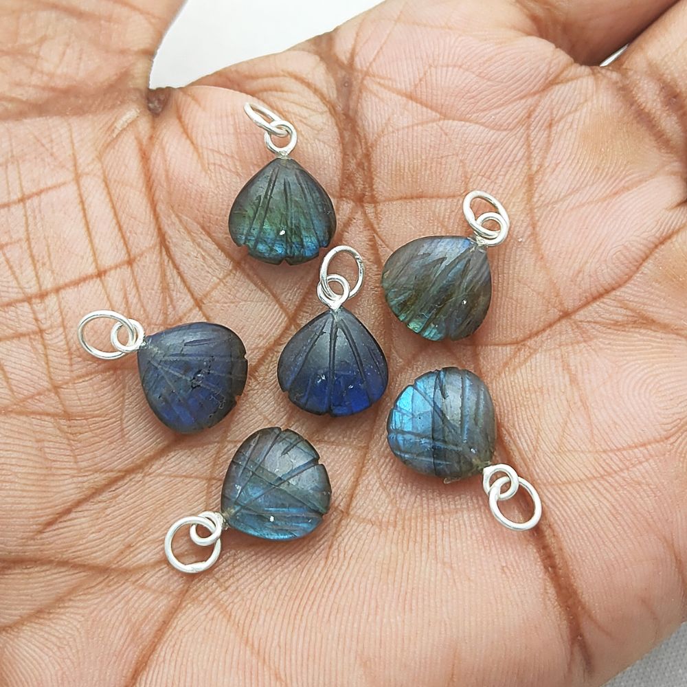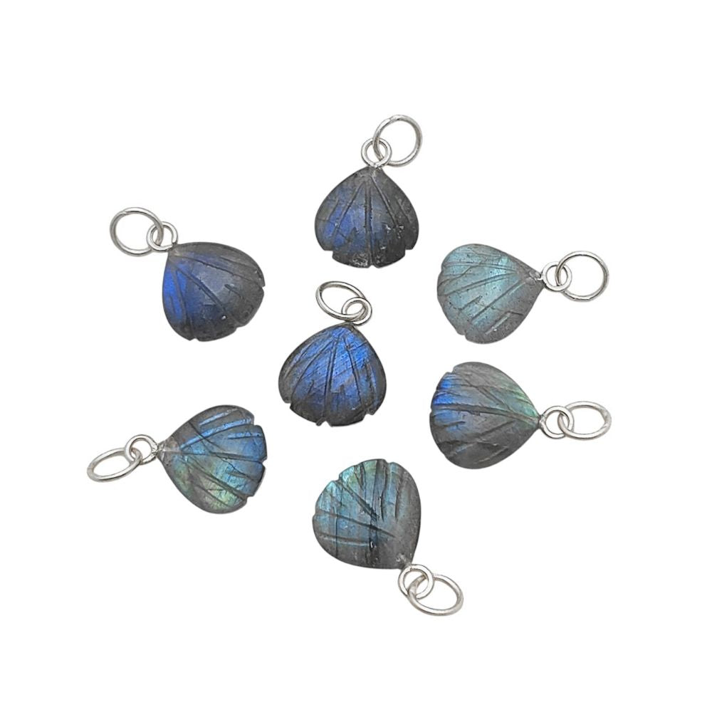 Heart Shape Blue Fire Labradorite Gemstone Seashell Pendant 18k Gold Plated Sterling Silver Handmade Jewelry- Selling Per Piece