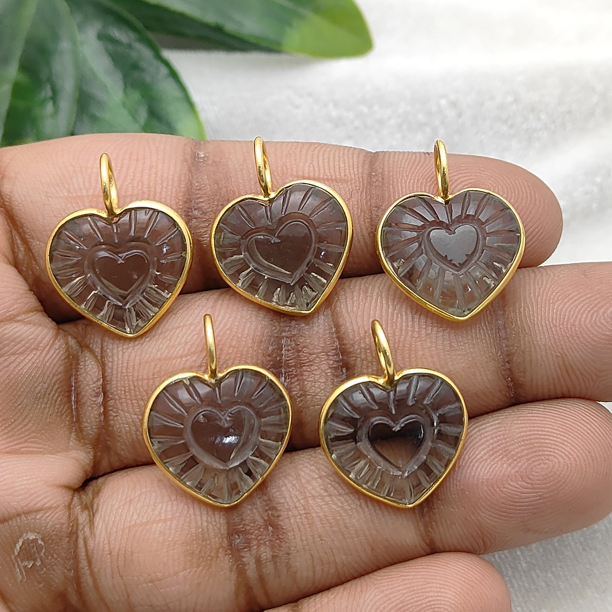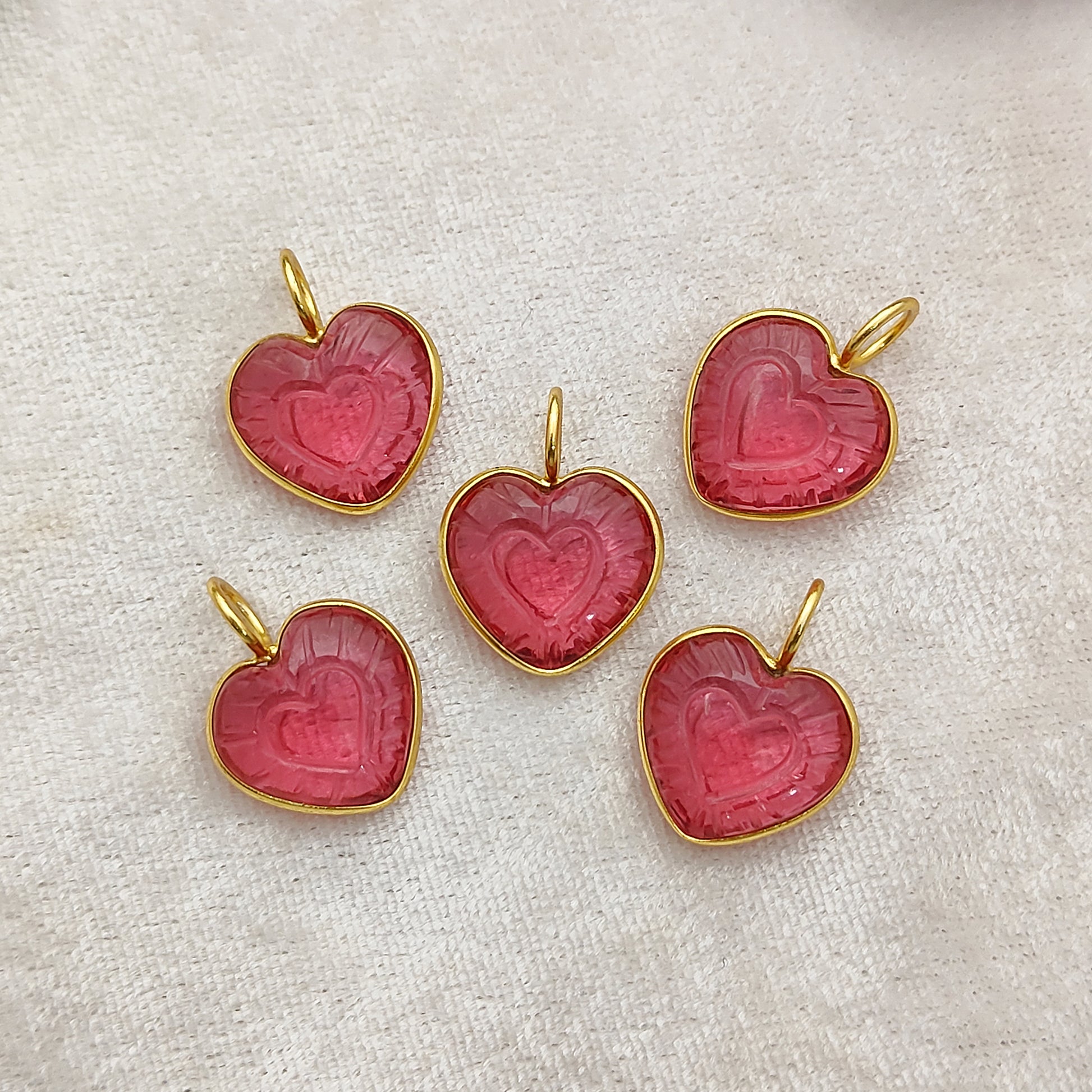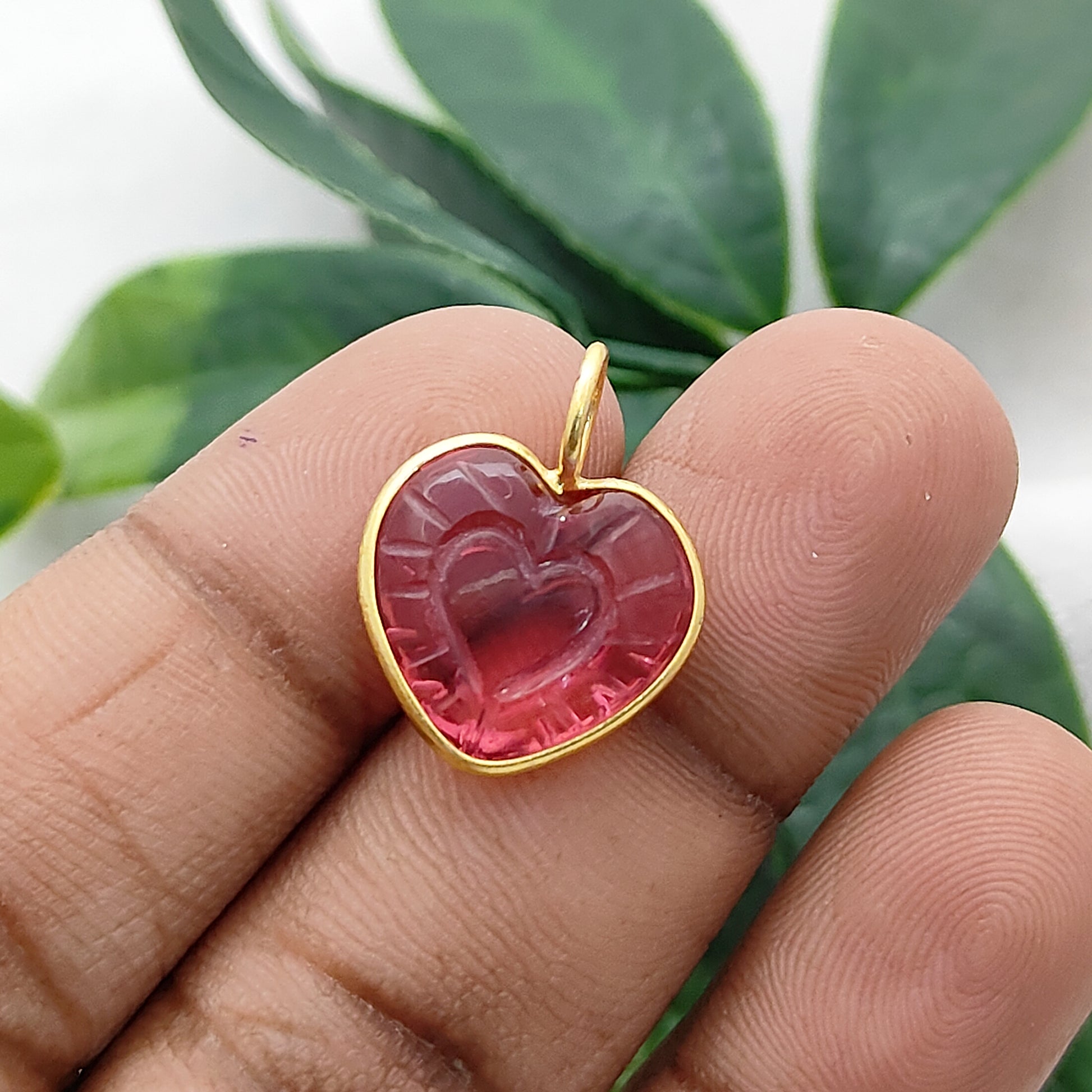 Heart Shaped Crystal Pendant in Gold Plated 925 Sterling Silver Handmade Bezel Set Gemstone Charm for Women- Selling Per Piece