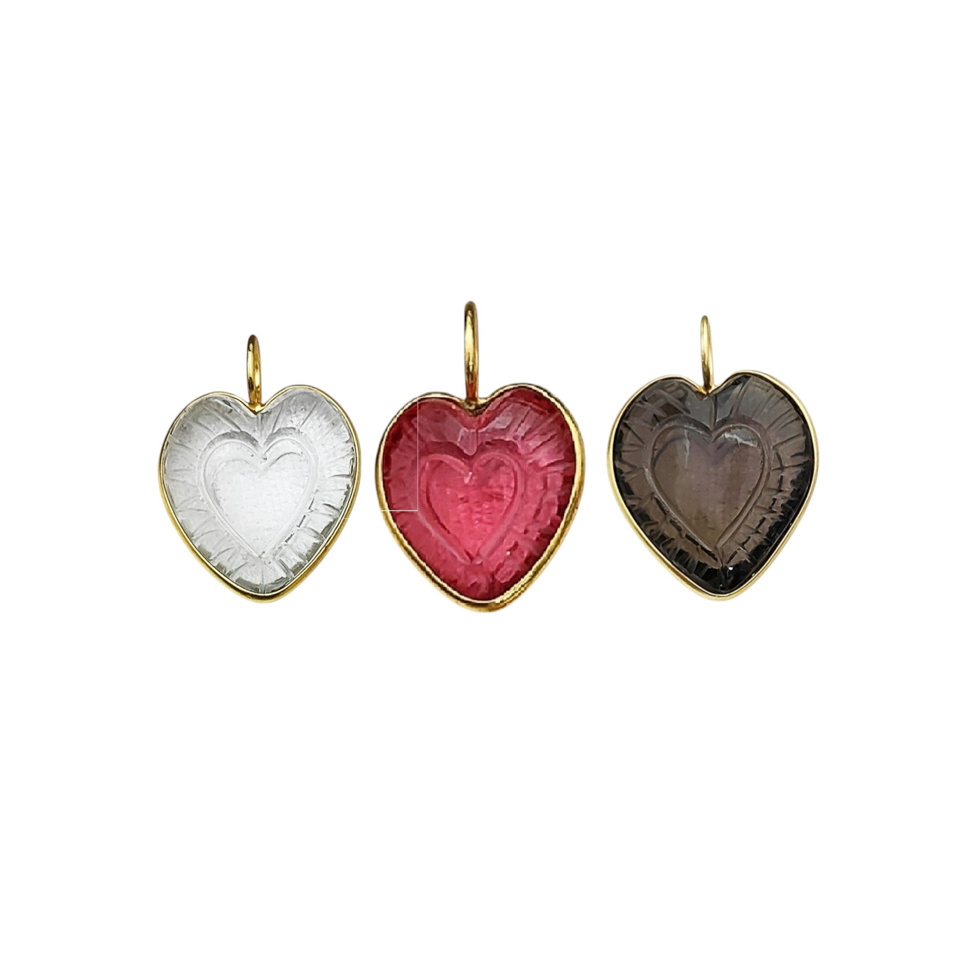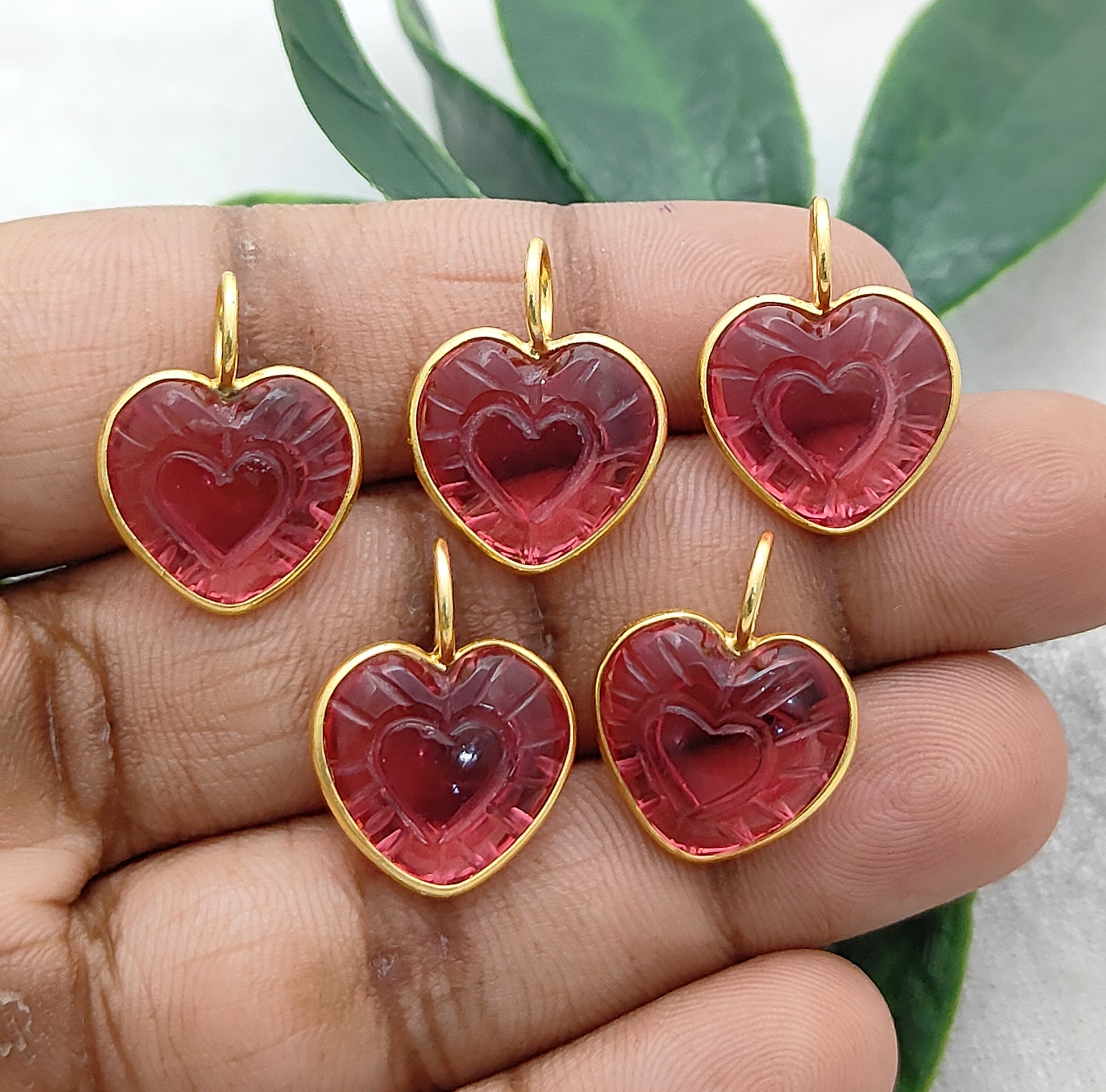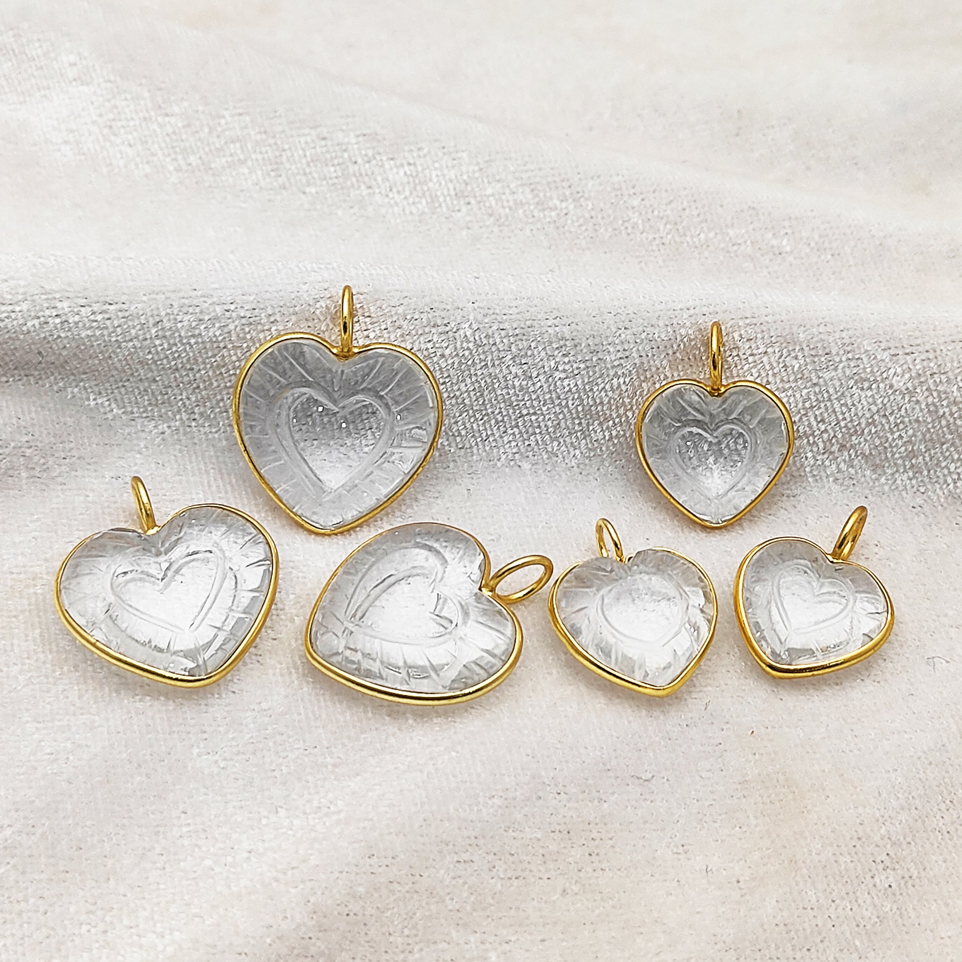 Heart Shaped Crystal Pendant in Gold Plated 925 Sterling Silver Handmade Bezel Set Gemstone Charm for Women- Selling Per Piece