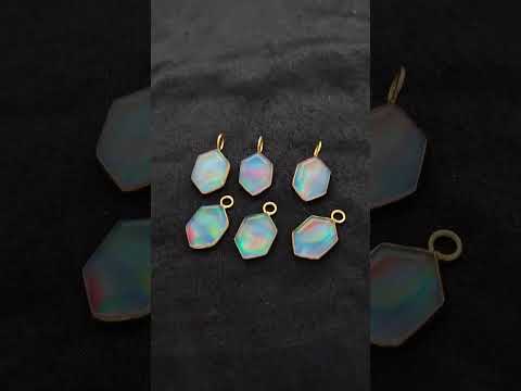 Elevate your jewelry designs with this Hexagon Opal Crystal Charm, beautifully crafted with an iridescent finish that reflects a spectrum of colors. The charm is framed in a gold plated bezel, giving it a luxurious shine while maintaining a modern, minimalist look.