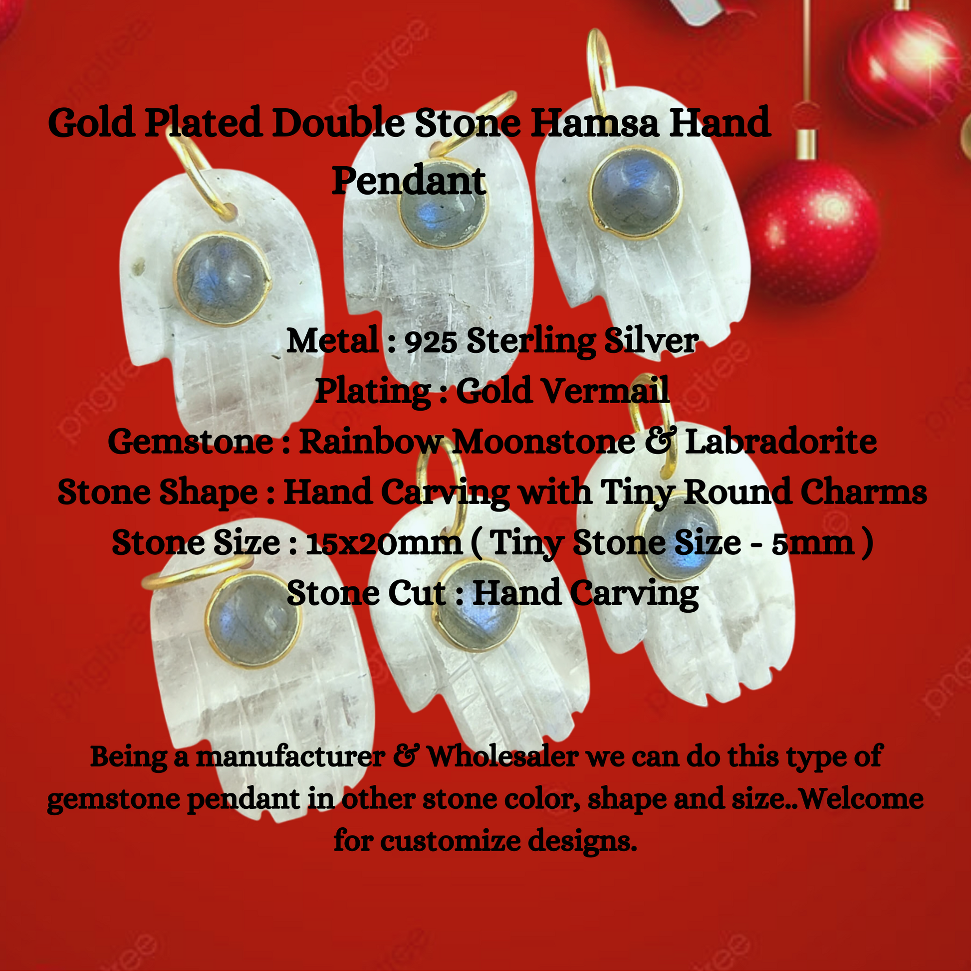 Being a manufacturer we can do this type of gemstone pendant in other stone color, shape and size.. Welcome for customize designs.