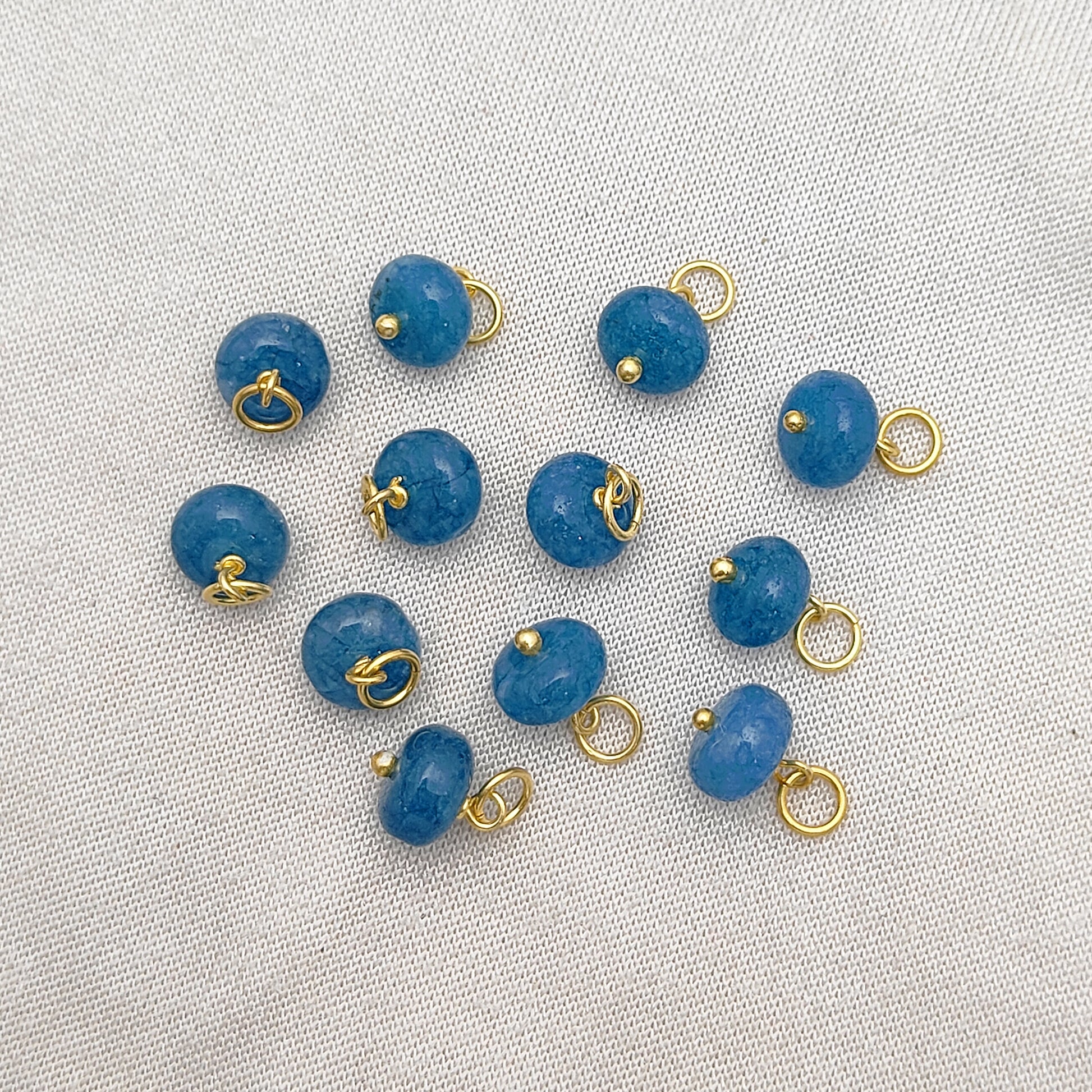 Kyanite Quartz Roundel Gemstone Beaded Charm 8mm Gold Vermeil Pendant for Earrings & Necklaces- Selling Per Piece
