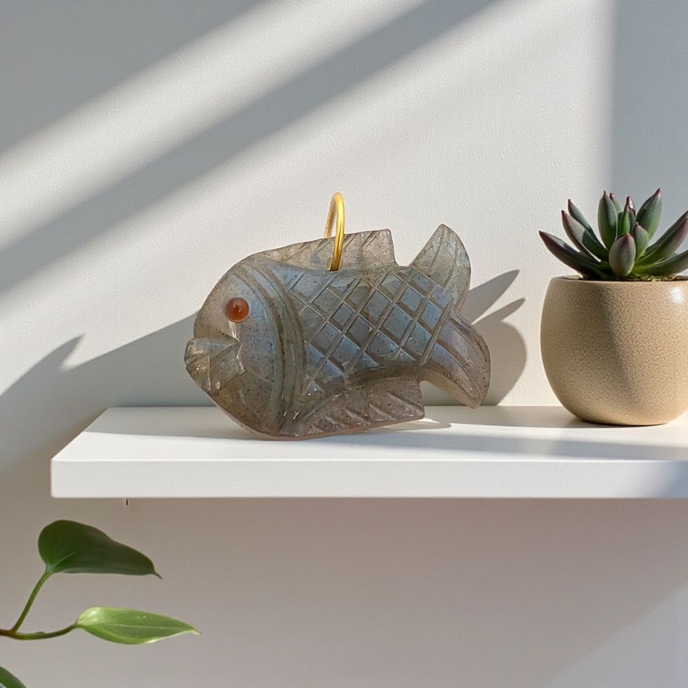 Labradorite Crystal Fish Pendant Artisan Carved Animal Charm for Necklaces, Bracelets & DIY Jewelry- Selling Per Piece