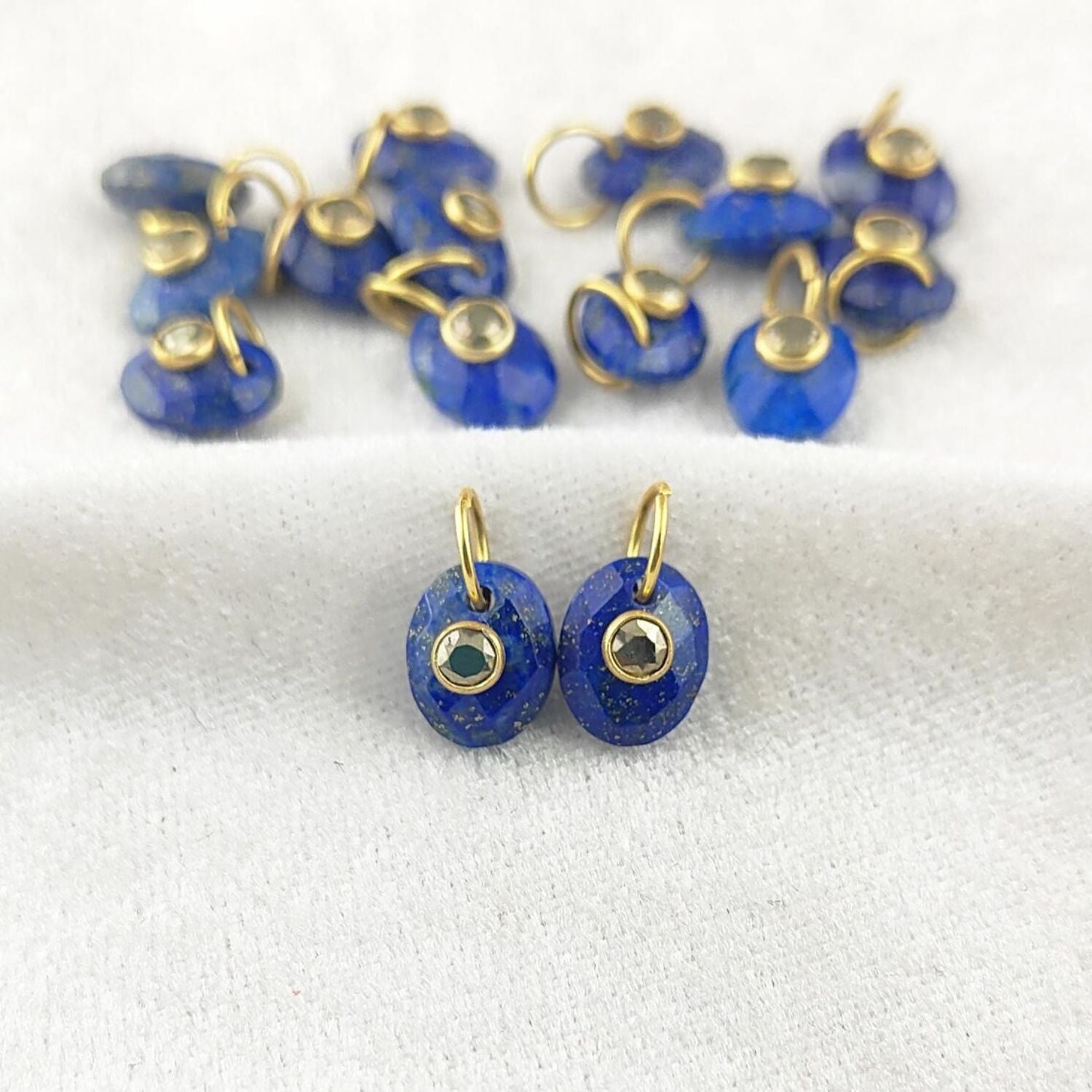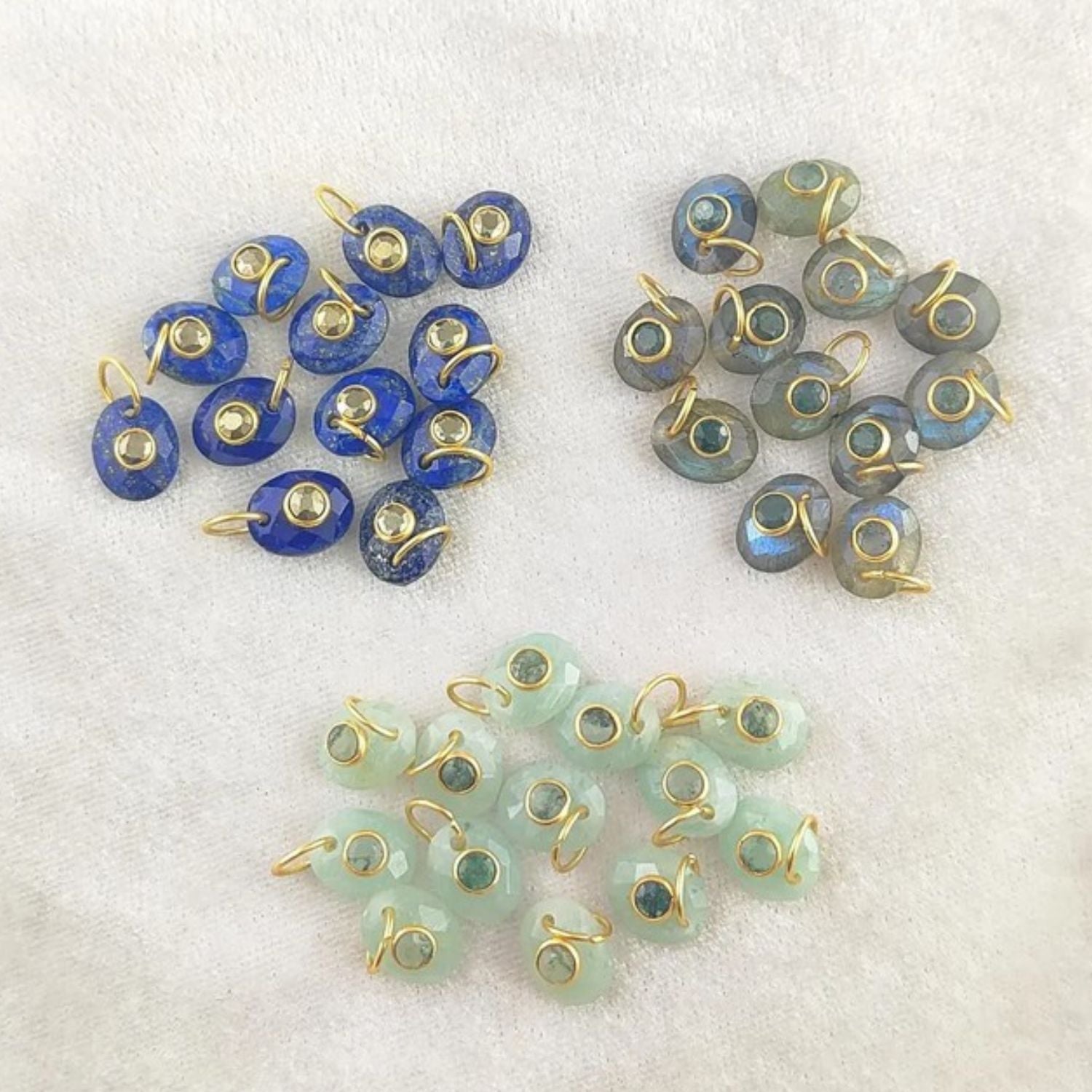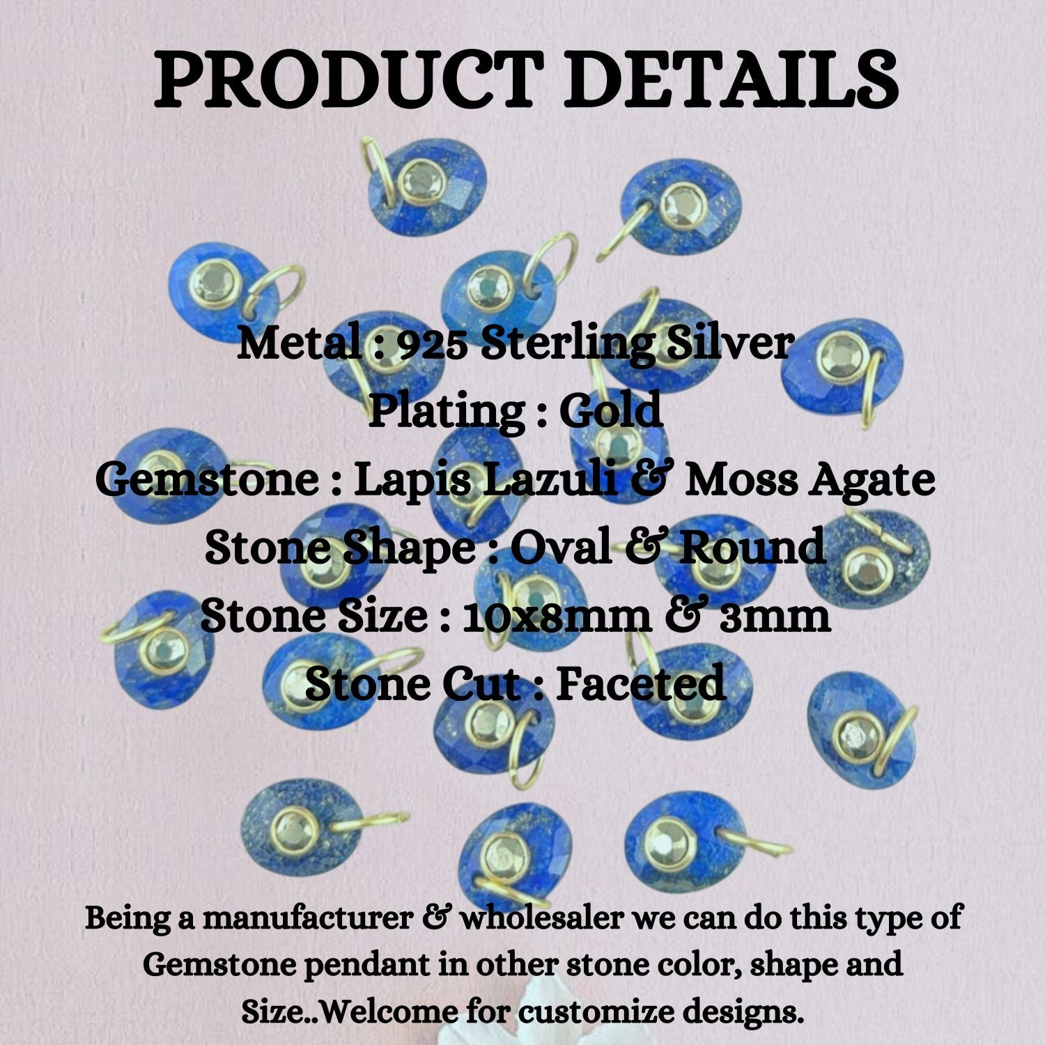 Lapis Lazuli & Moss Agate Gemstone Pendant Gold Plated Charms in 925 Sterling Silver- Selling Per Piece