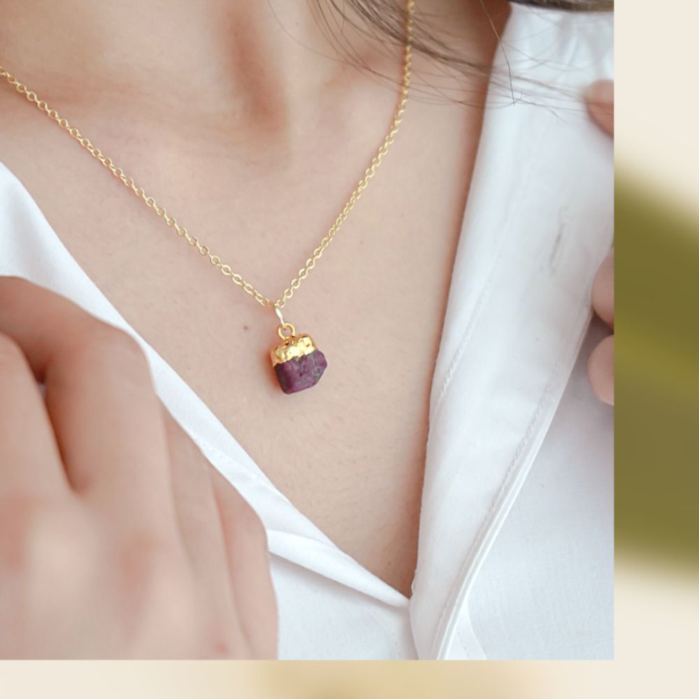 Minimalist All Birthstone Raw Gemstone Necklace, Gold/Rose Gold/Silver Plated Handmade Pendant Jewelry-Selling/Piece
