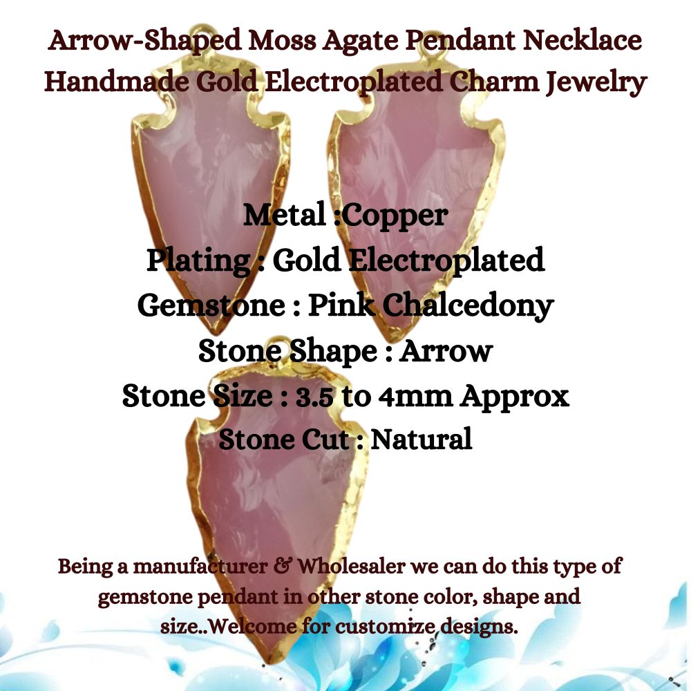 Minimalist Pink Chalcedony Gemstone Pendant Unique Handmade Charm Necklace Arrow-Shaped Jewelry For Gift- Selling Per Piece