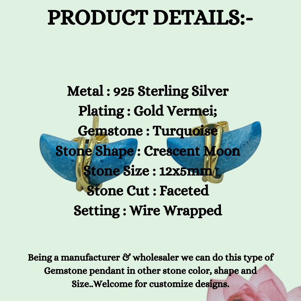 Minimalist Turquoise Crescent Stud Earrings, Gold Plated Half Moon Jewelry Gift for Her- Selling Per Pair
