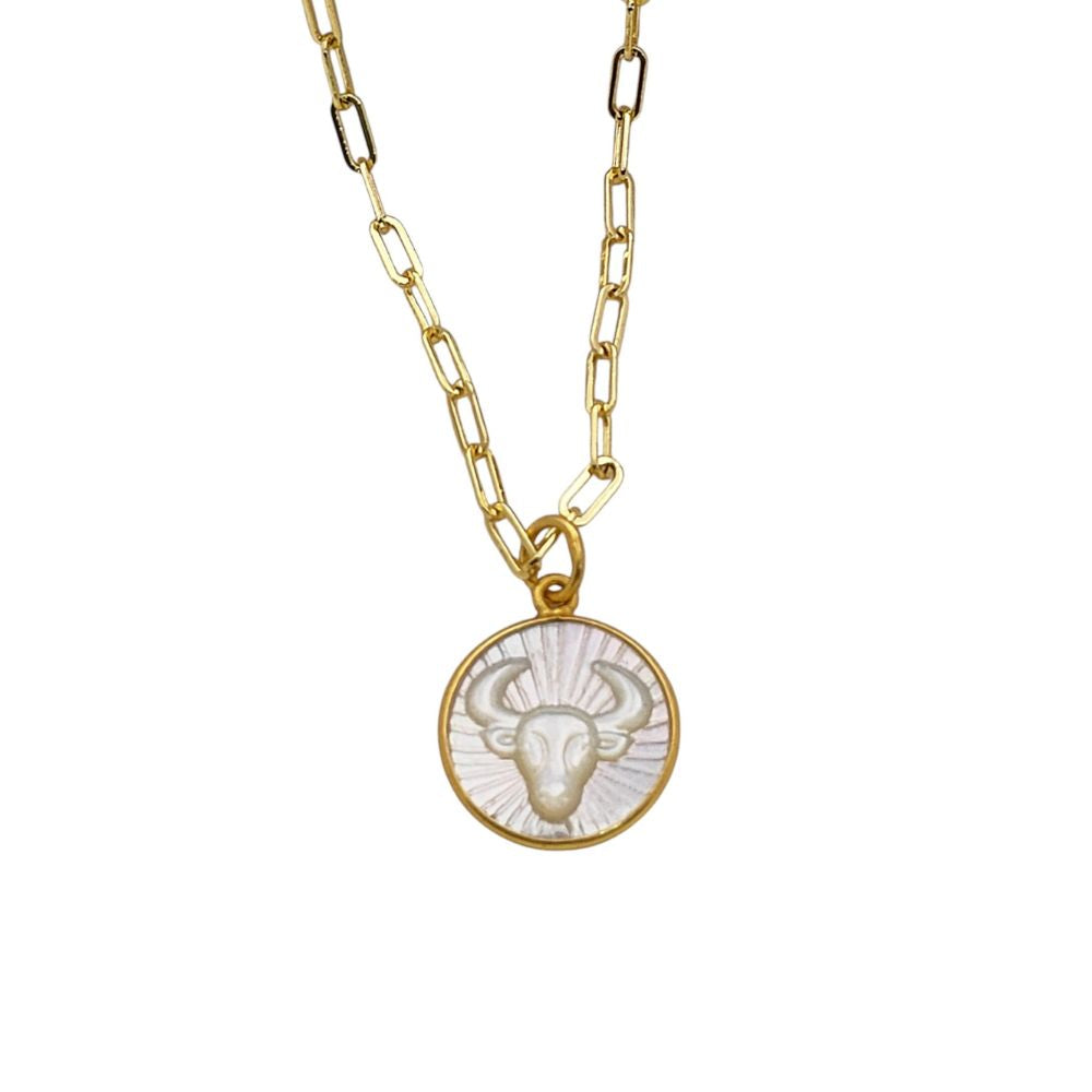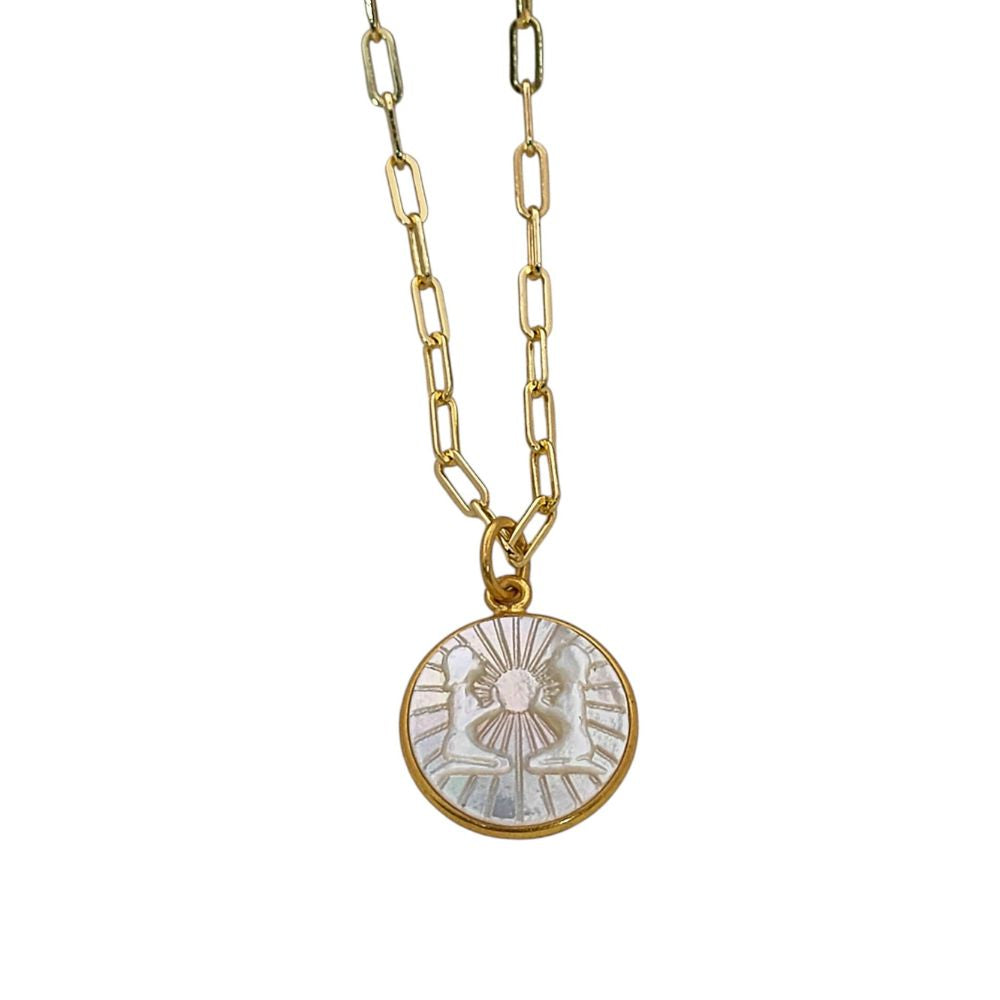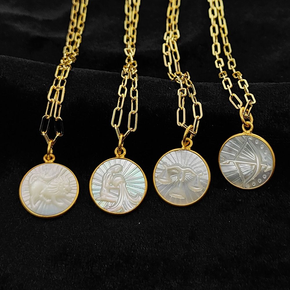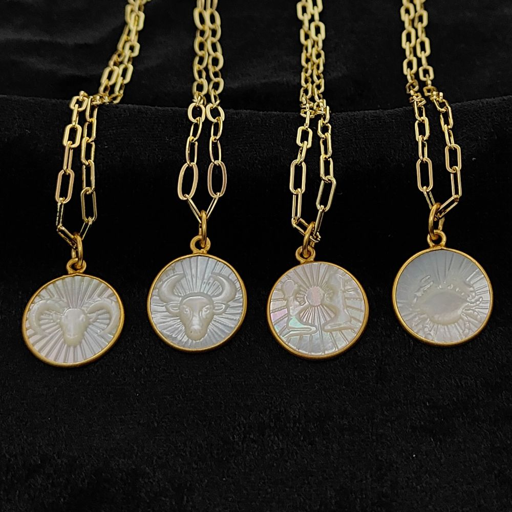 Mother of Pearl Zodiac Pendant for Necklace Gold Plated Astrology Sign Charm on Paperclip Chain Horoscope Jewelry Gift- Selling Per Piece