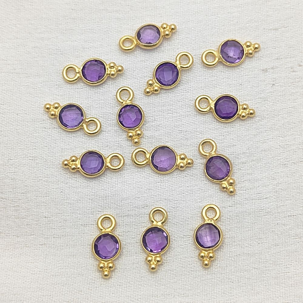 Natural Amethyst Charm for Jewelry 4mm Gold Vermeil Pendant