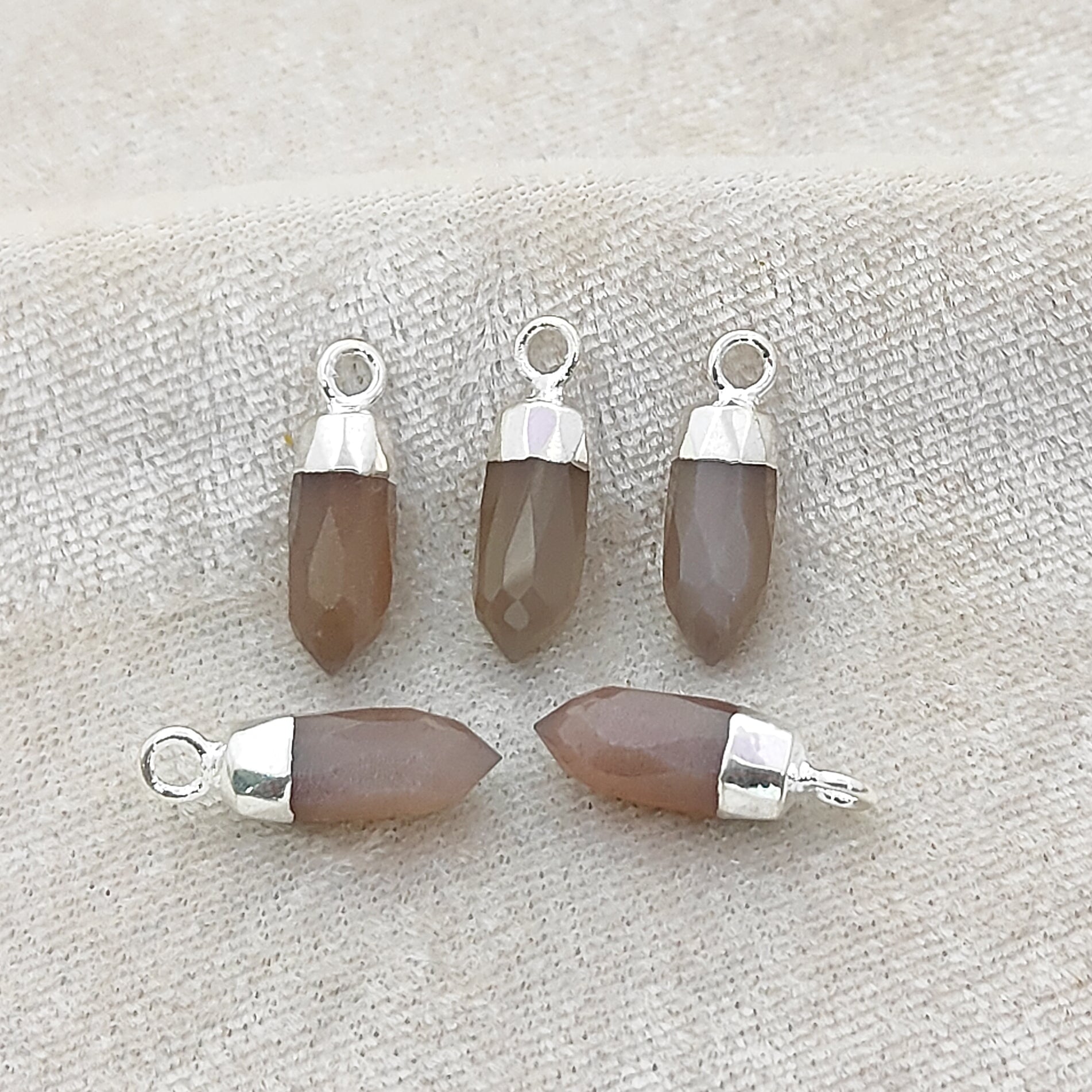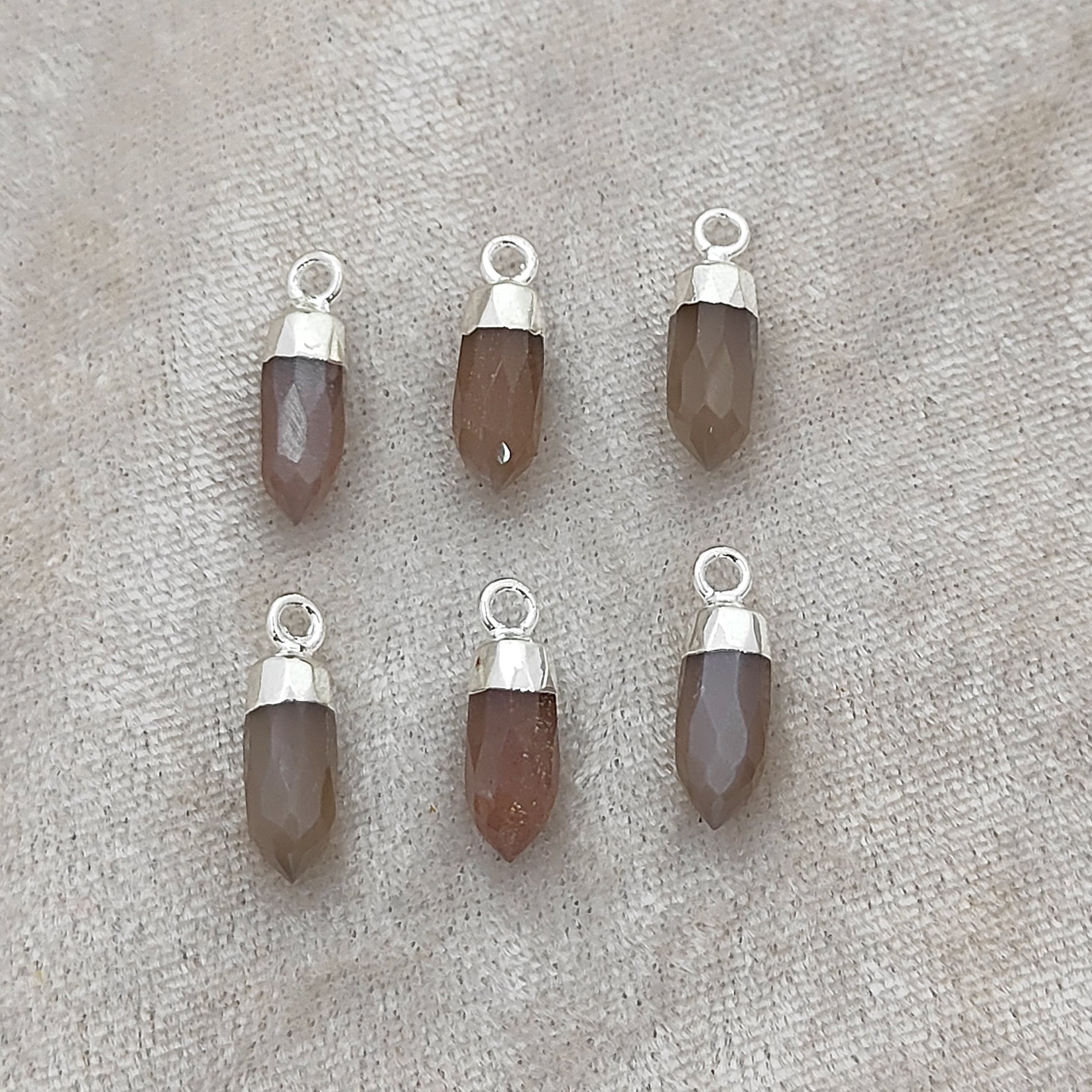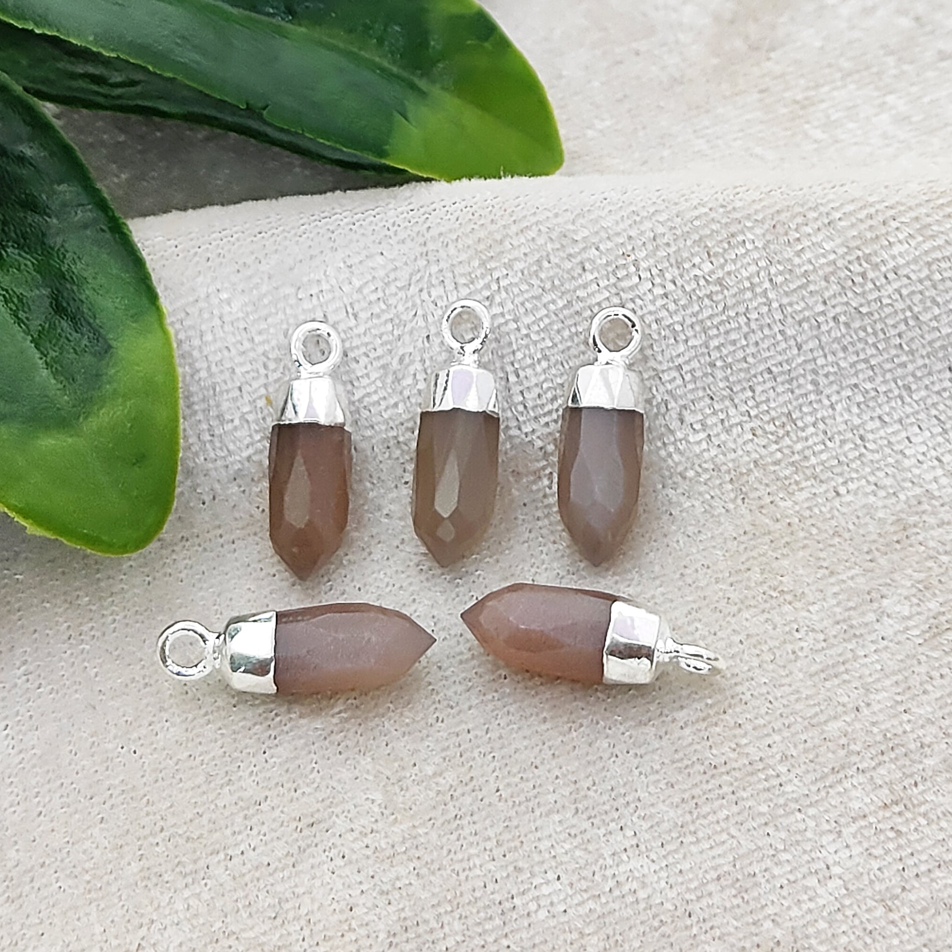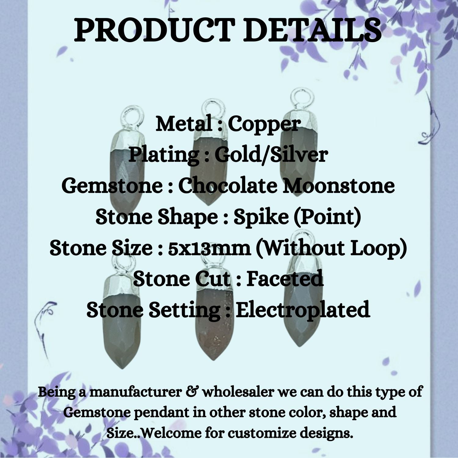 Natural Chocolate Moonstone Spike Pendant Gold/Silver Electroplated Cap Crystal for Handmade Jewelry- Selling Per Piece