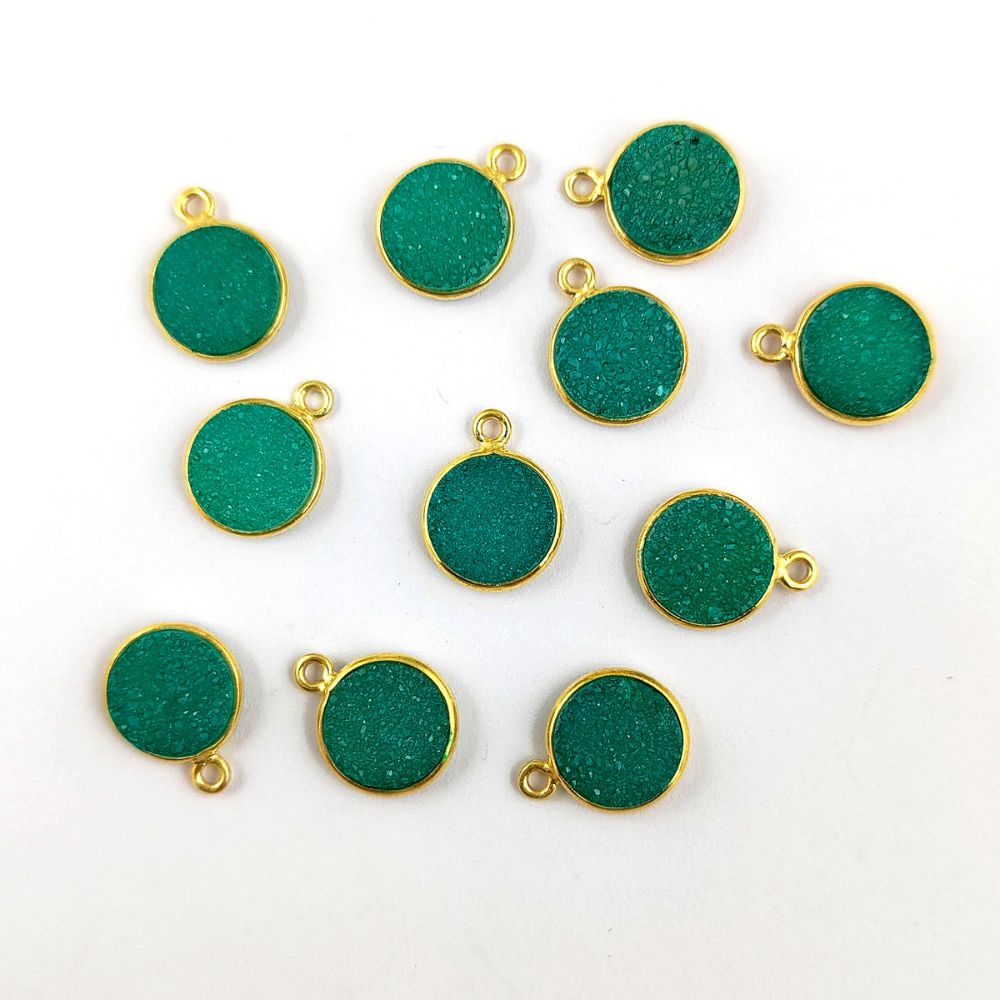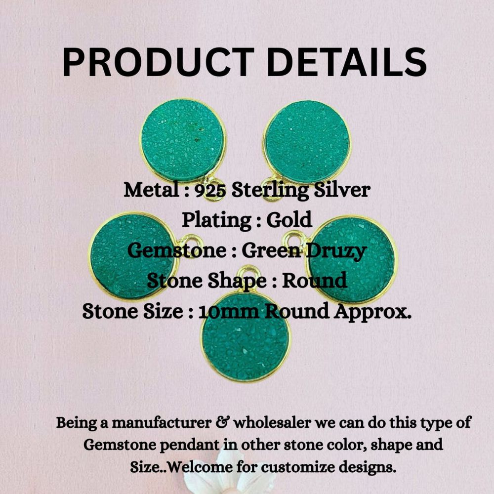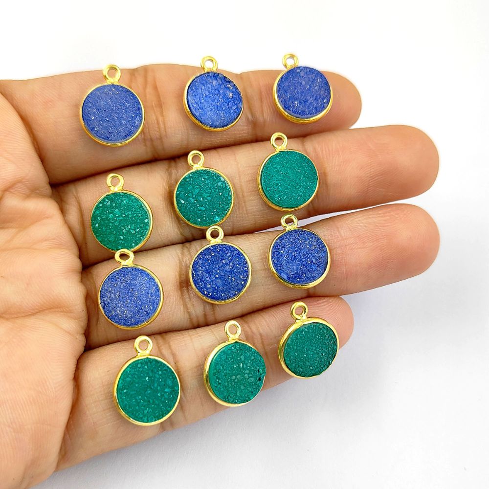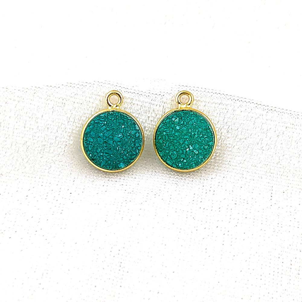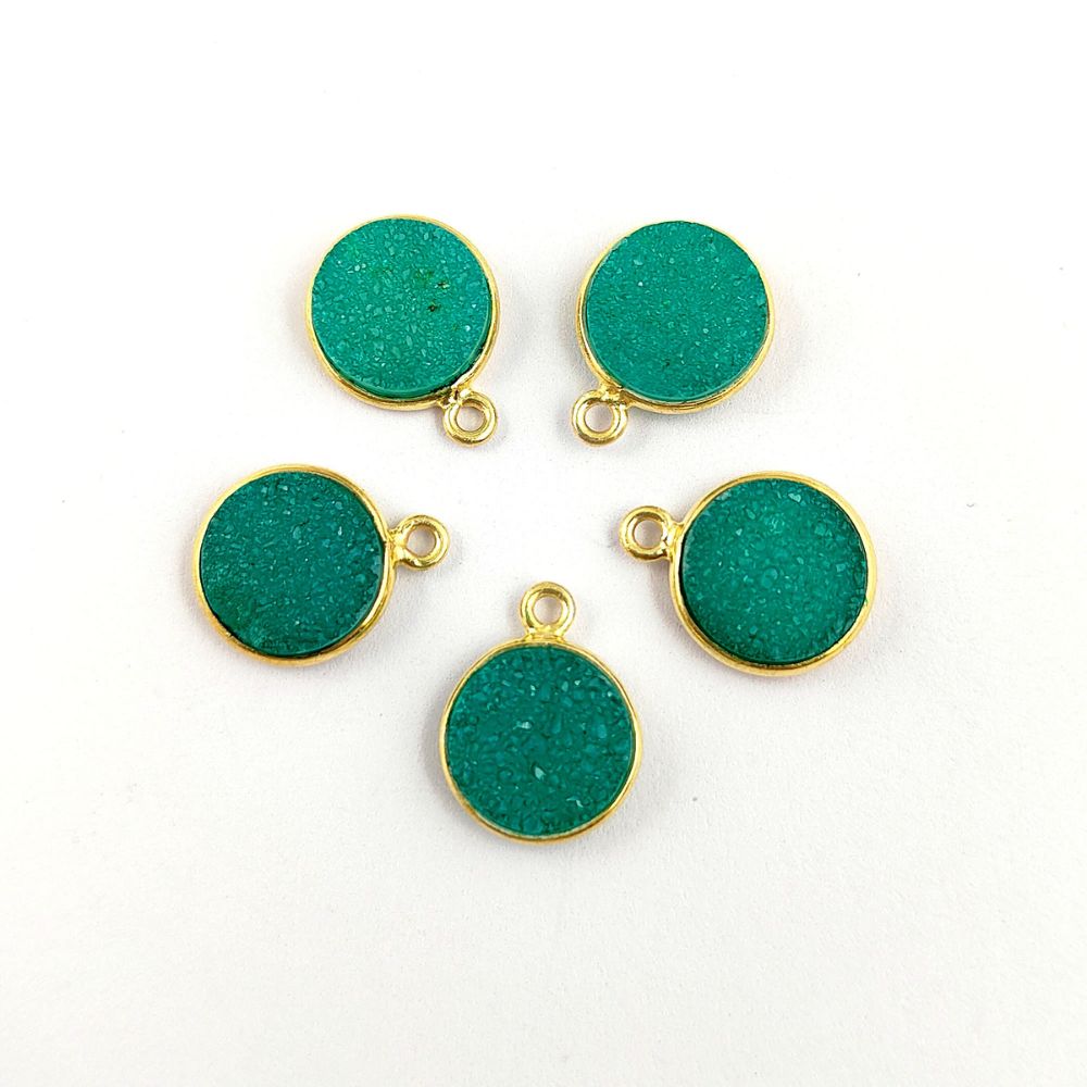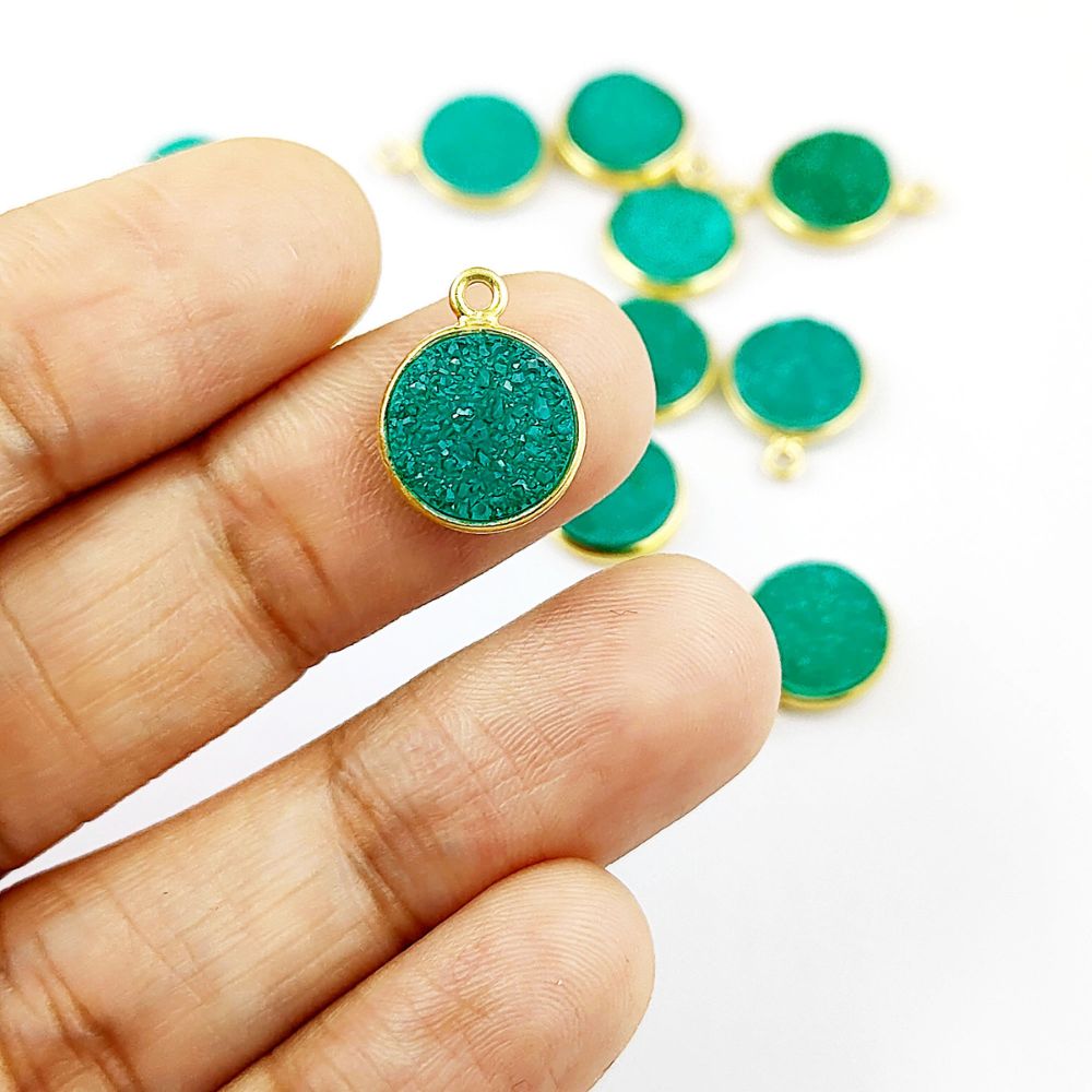 Natural Green Druzy Gemstone Pendant Gold Plated Round Charm for Custom Jewelry Creations- Selling Per Piece