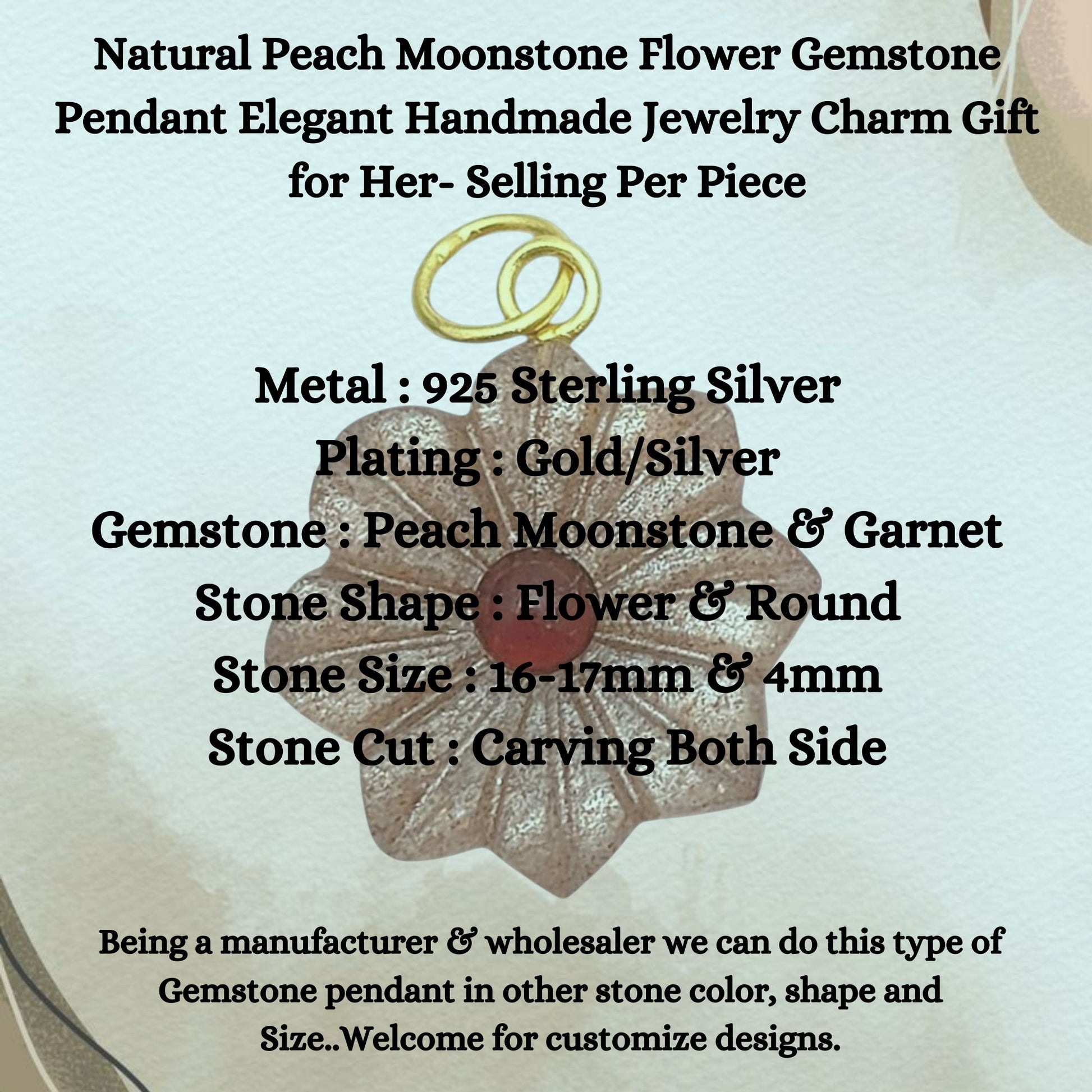 Natural Peach Moonstone Flower Gemstone Pendant Elegant Handmade Jewelry Charm Gift for Her- Selling Per Piece
