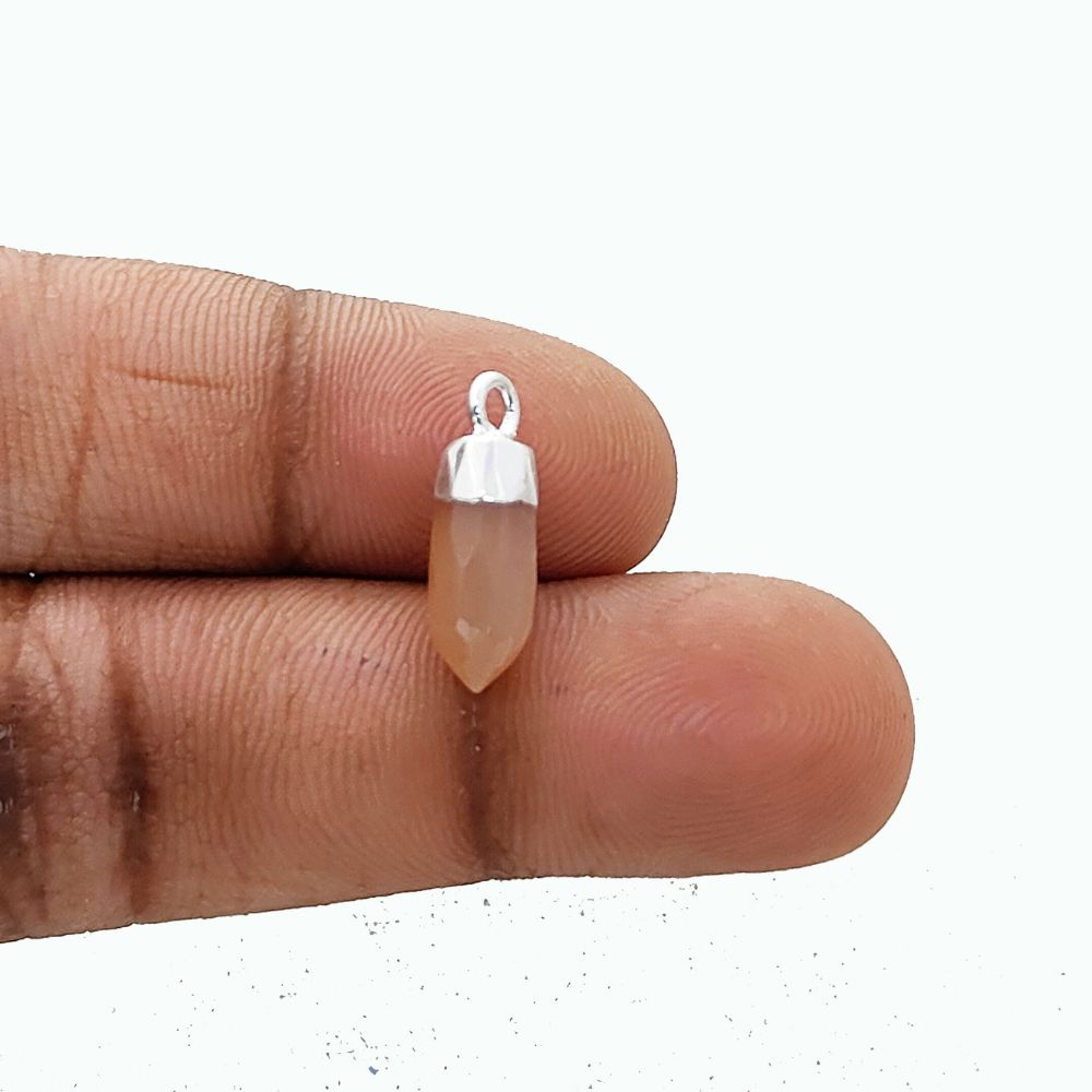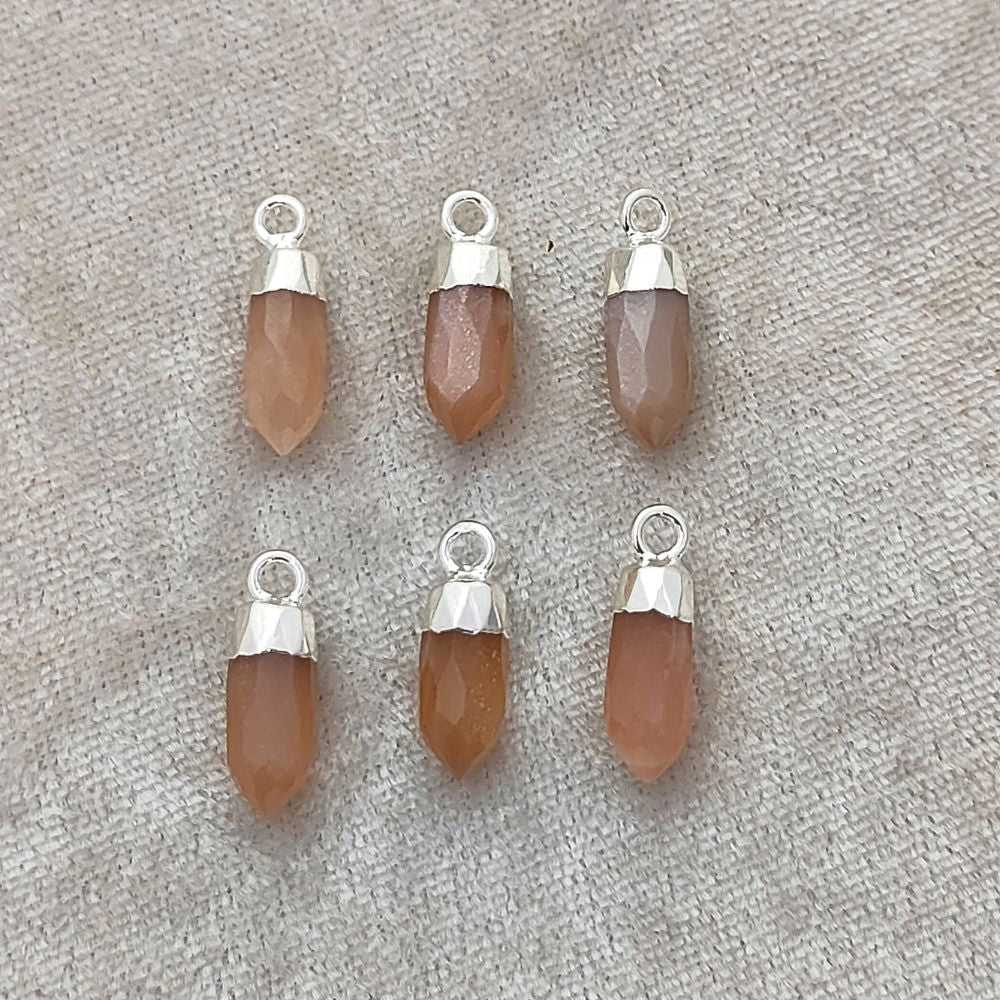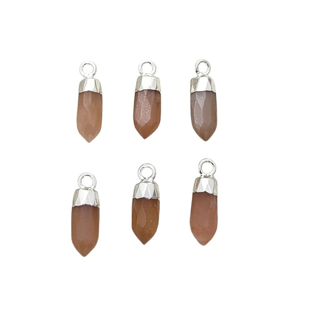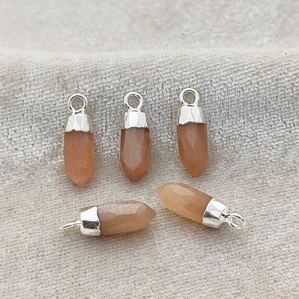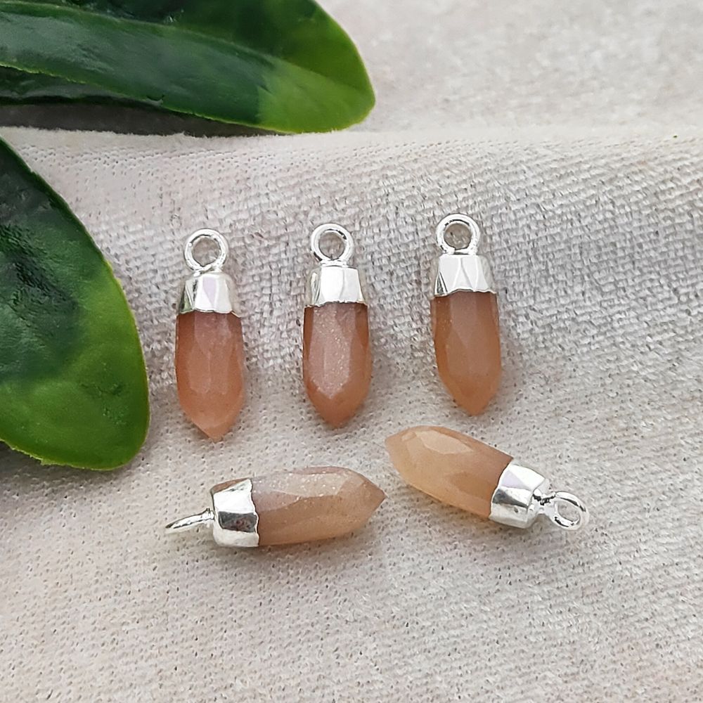 Natural Peach Moonstone Spike Pendant with Silver Electroplated Cap Handmade Healing Gemstone Charm for DIY Boho Jewelry – Selling Per Piece