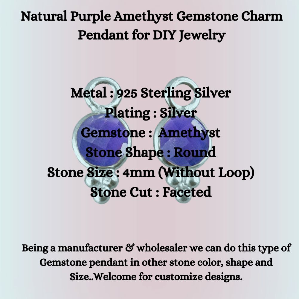 Add a touch of elegance and spirituality to your jewelry designs with this stunning 4mm Amethyst pendant, set in solid 925 sterling silver. As the birthstone of February, Amethyst is cherished for its rich purple hue and is believed to bring calmness, balance, and clarity. This dainty charm is perfect for DIY jewelry makers looking to craft unique and meaningful pieces.