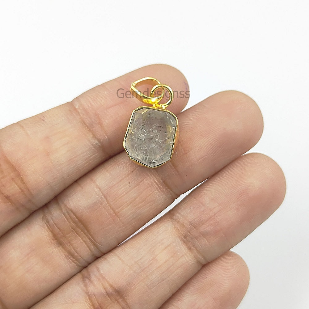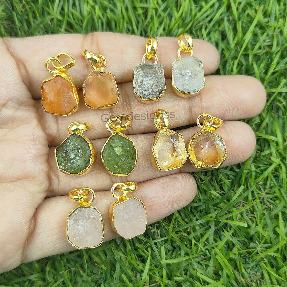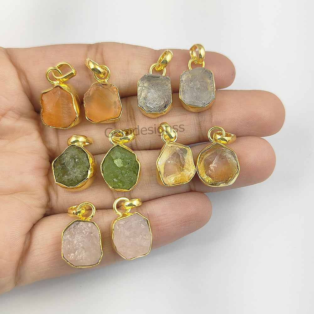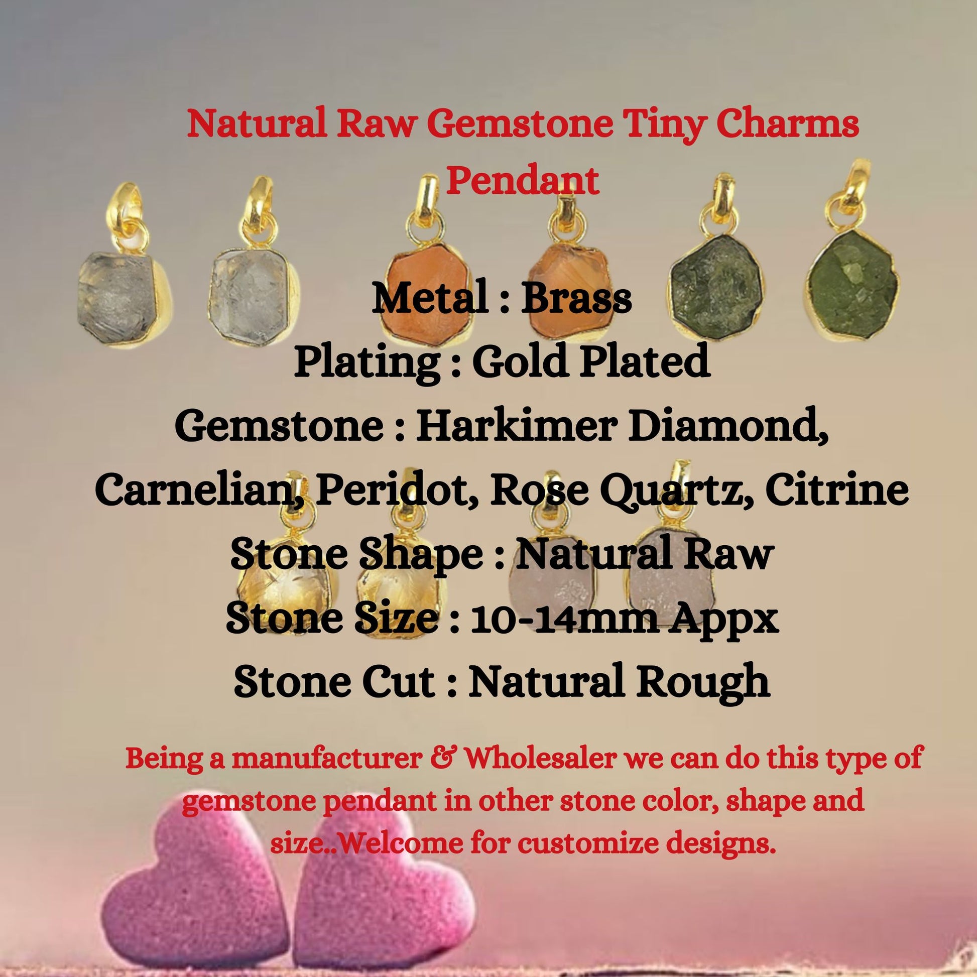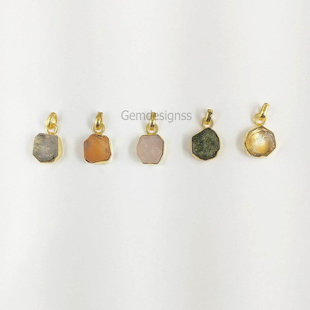Raw Gemstone Tiny Pendant Rough Stone Pendant Necklace Artisans Charms Gold Plated Jewelry- Selling Per Piece