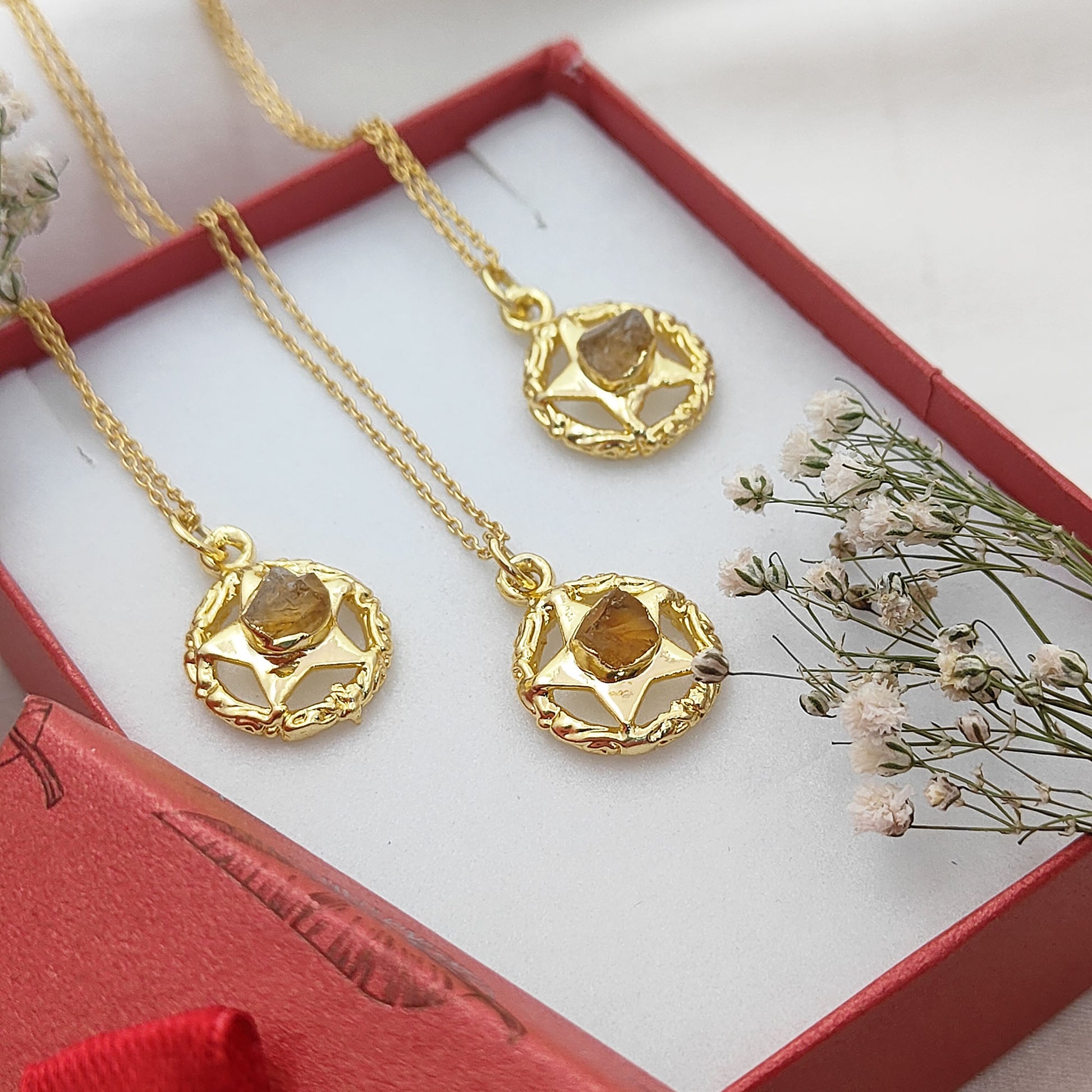 November Birthstone Raw Citrine Necklace Minimalist Gold Plated Star Pendant for Gift