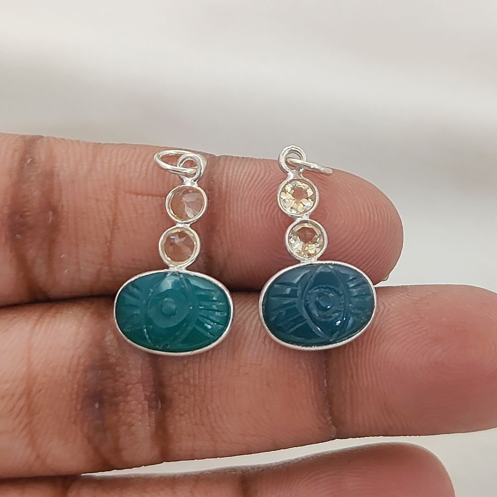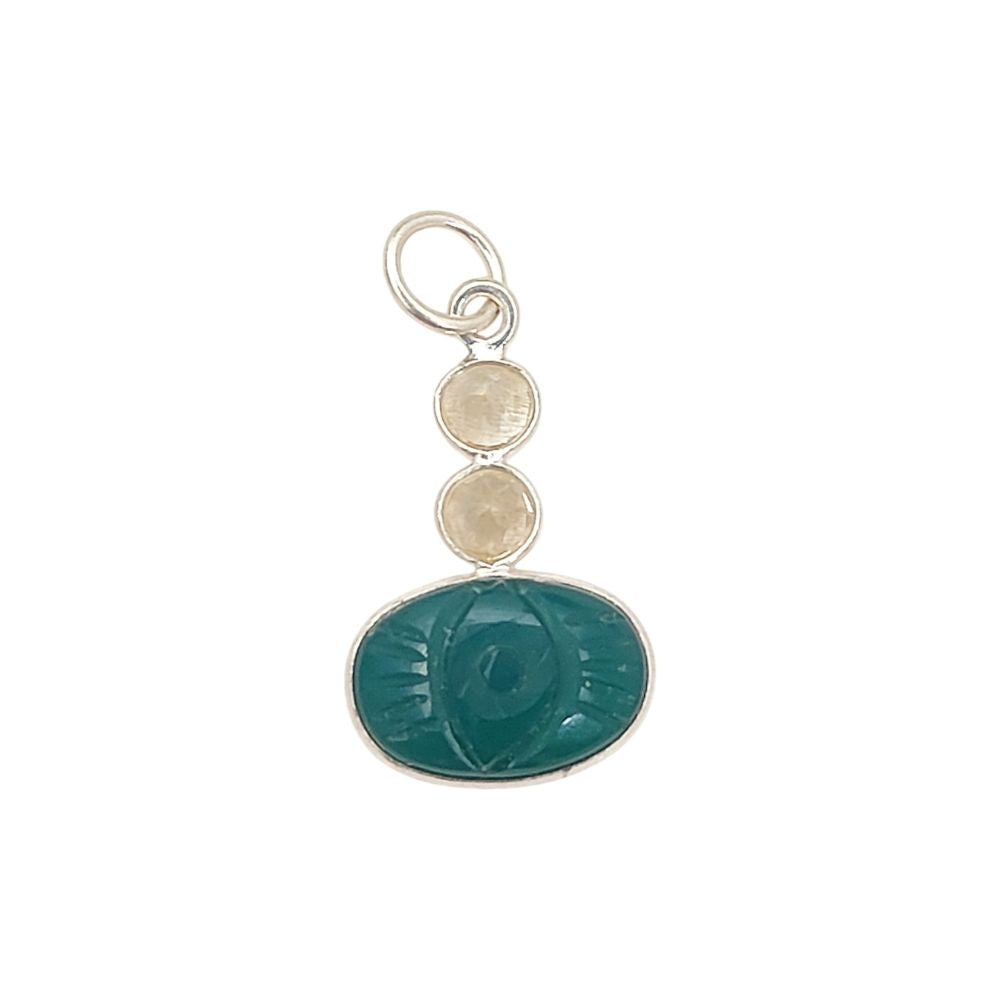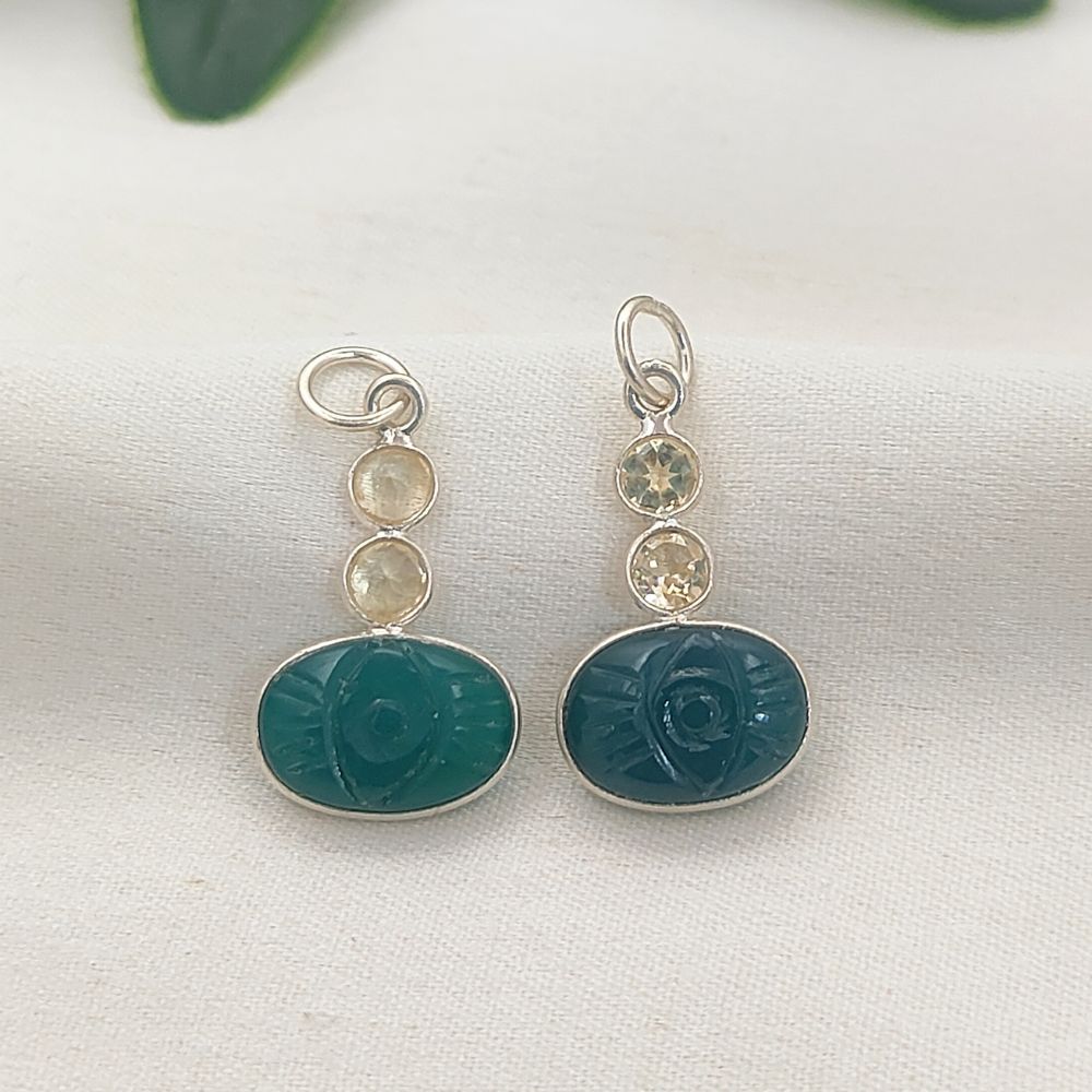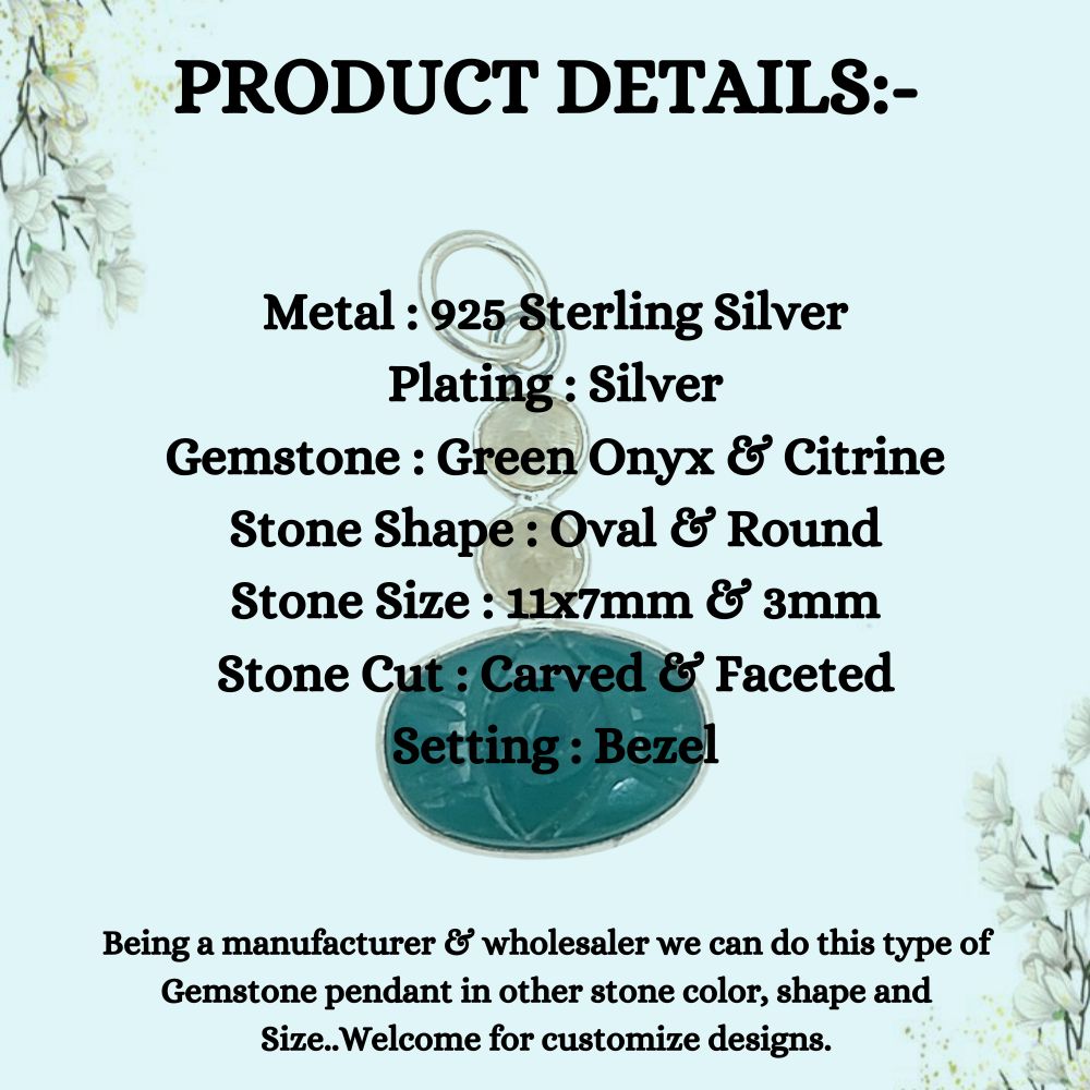 Oval Green Onyx Carved Pendant with Natural Citrine Stones 925 Sterling Silver DIY Jewelry Connector- Selling Per Piece