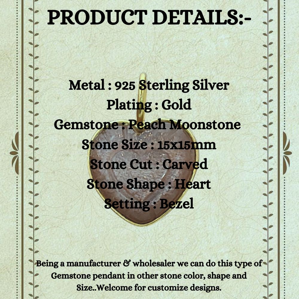 Embrace the gentle energy and elegance of this Handmade 15mm Peach Moonstone Heart Pendant, beautifully set in gold plated 925 sterling silver. Known as the stone of new beginnings and emotional balance, Peach Moonstone glows with a warm, feminine shimmer that radiates calmness and harmony.
