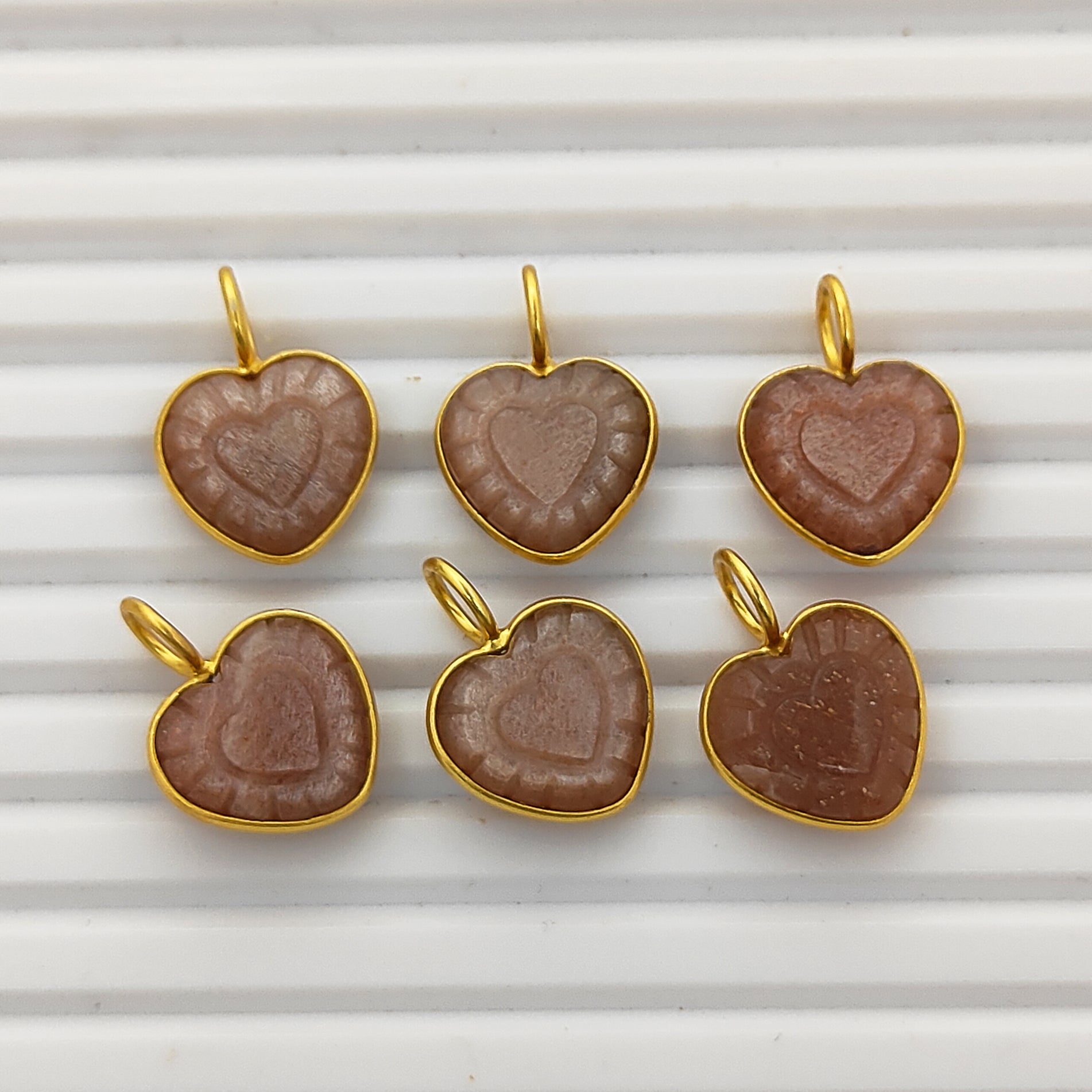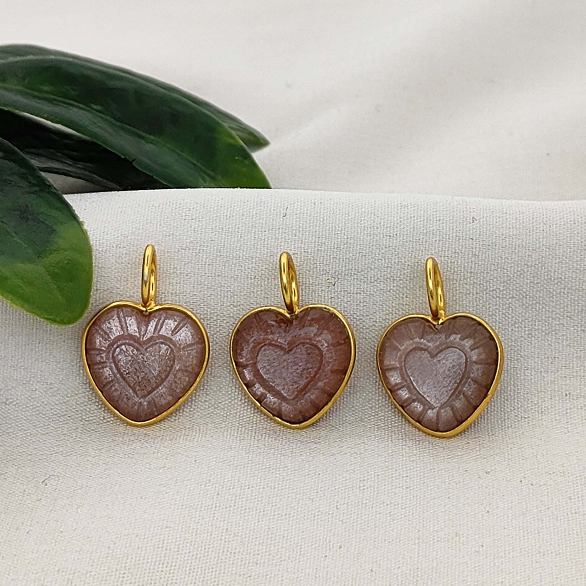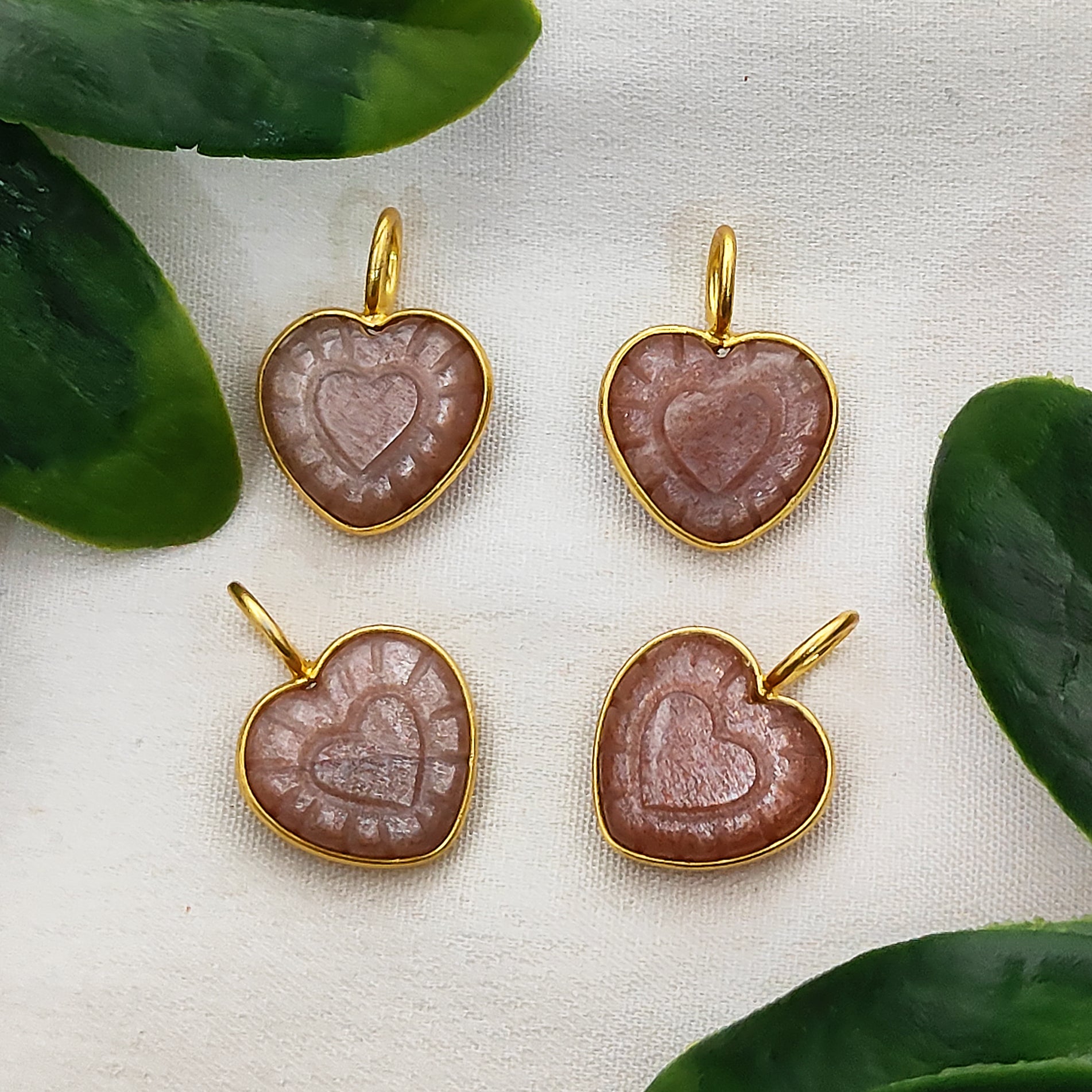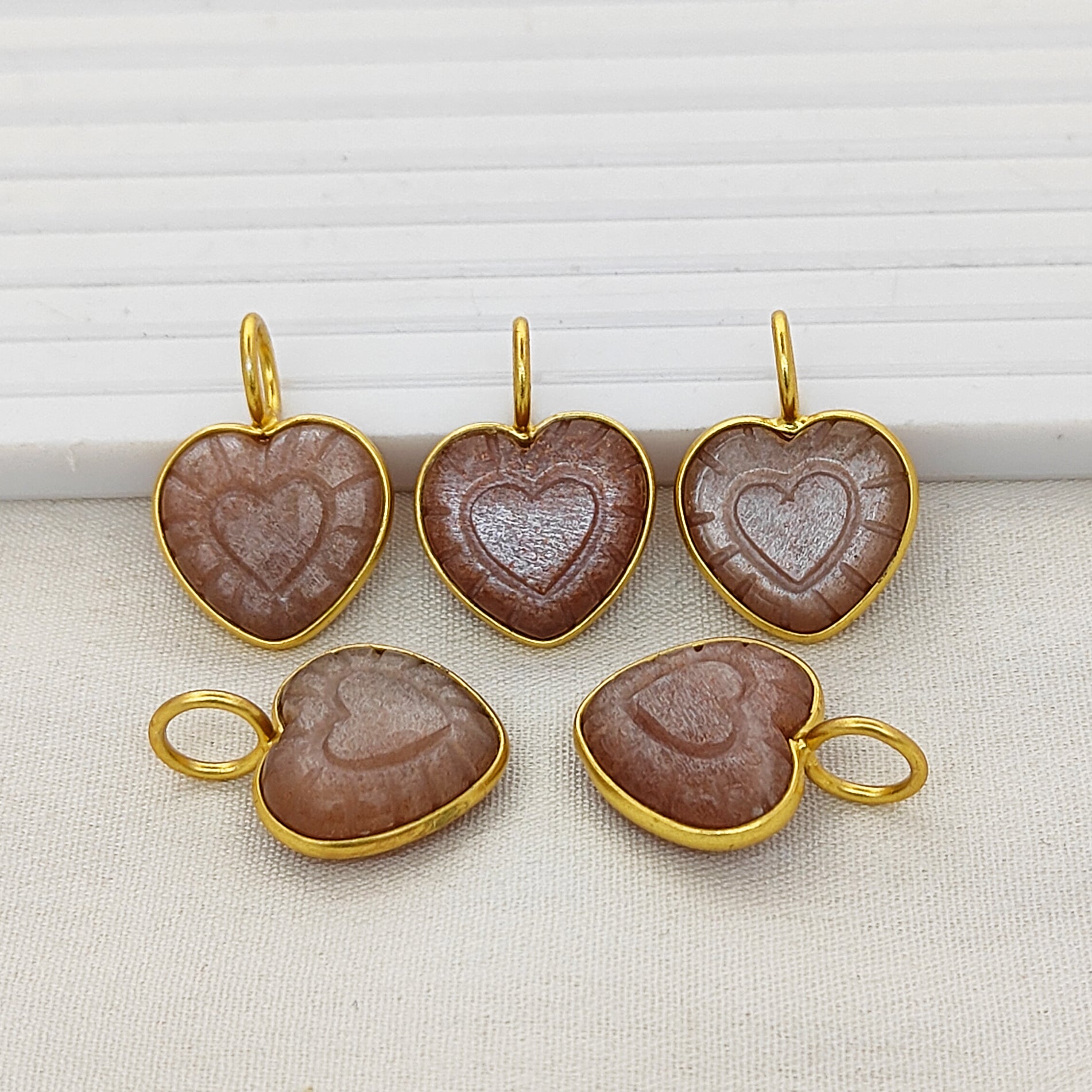 Peach Moonstone Heart Charm Necklace Handmade 15mm Healing Gemstone Pendant for Spiritual Jewelry- Selling Per Piece
