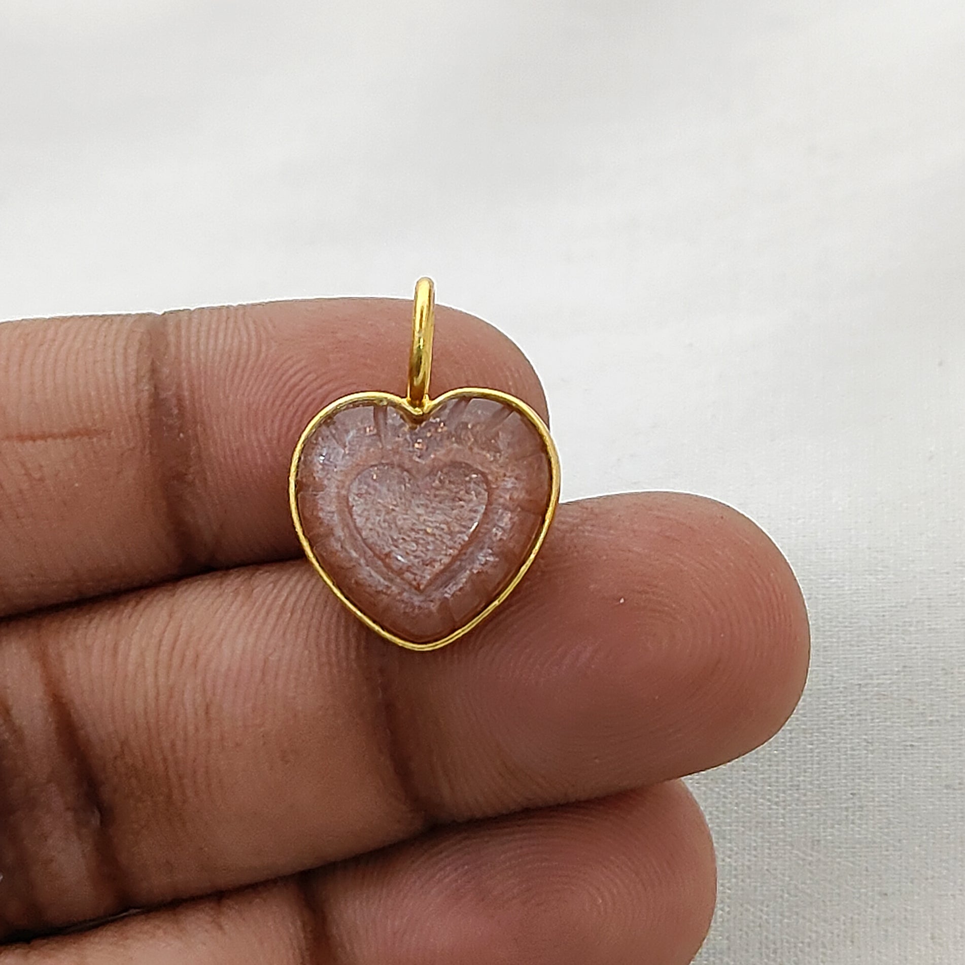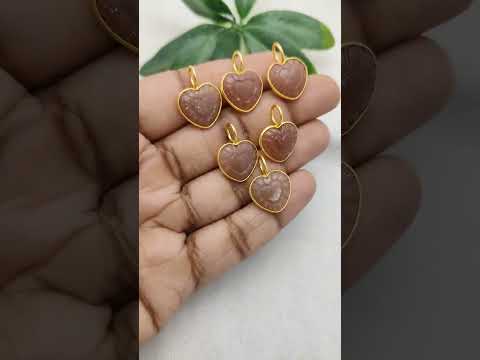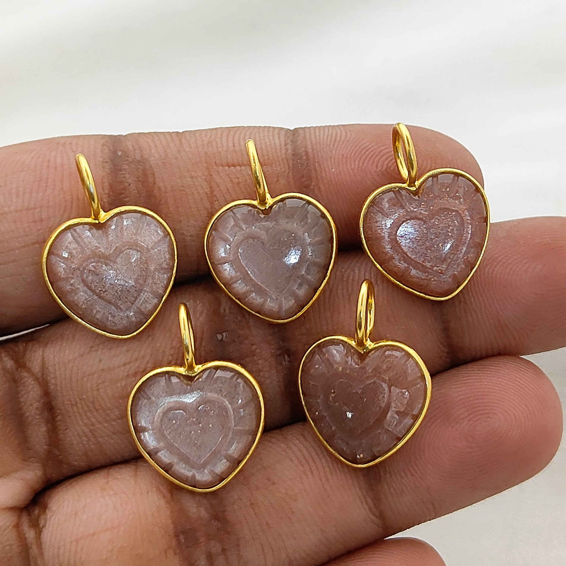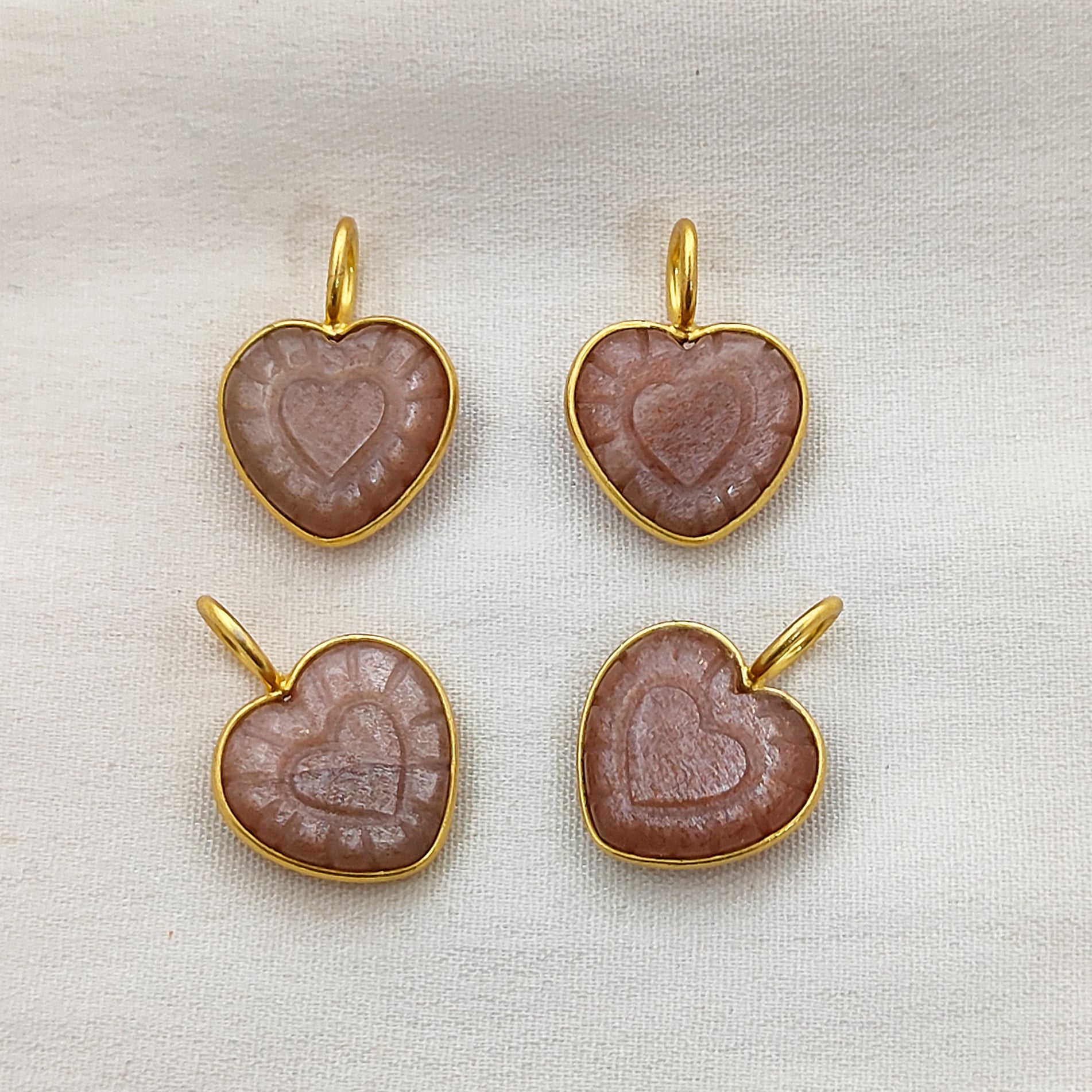 Peach Moonstone Heart Charm Necklace Handmade 15mm Healing Gemstone Pendant for Spiritual Jewelry- Selling Per Piece