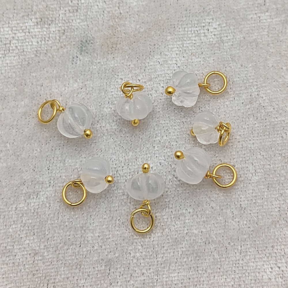 Capture the magic of celestial light with this breathtaking Rainbow Moonstone pumpkin charm pendant, masterfully hand-carved into a melon-shaped bead and set in radiant gold plated 925 sterling silver. Beloved for its ethereal glow and mystical flashes of blue and rainbow sheen, this gemstone is a favorite among jewelry makers and spiritual collectors alike.