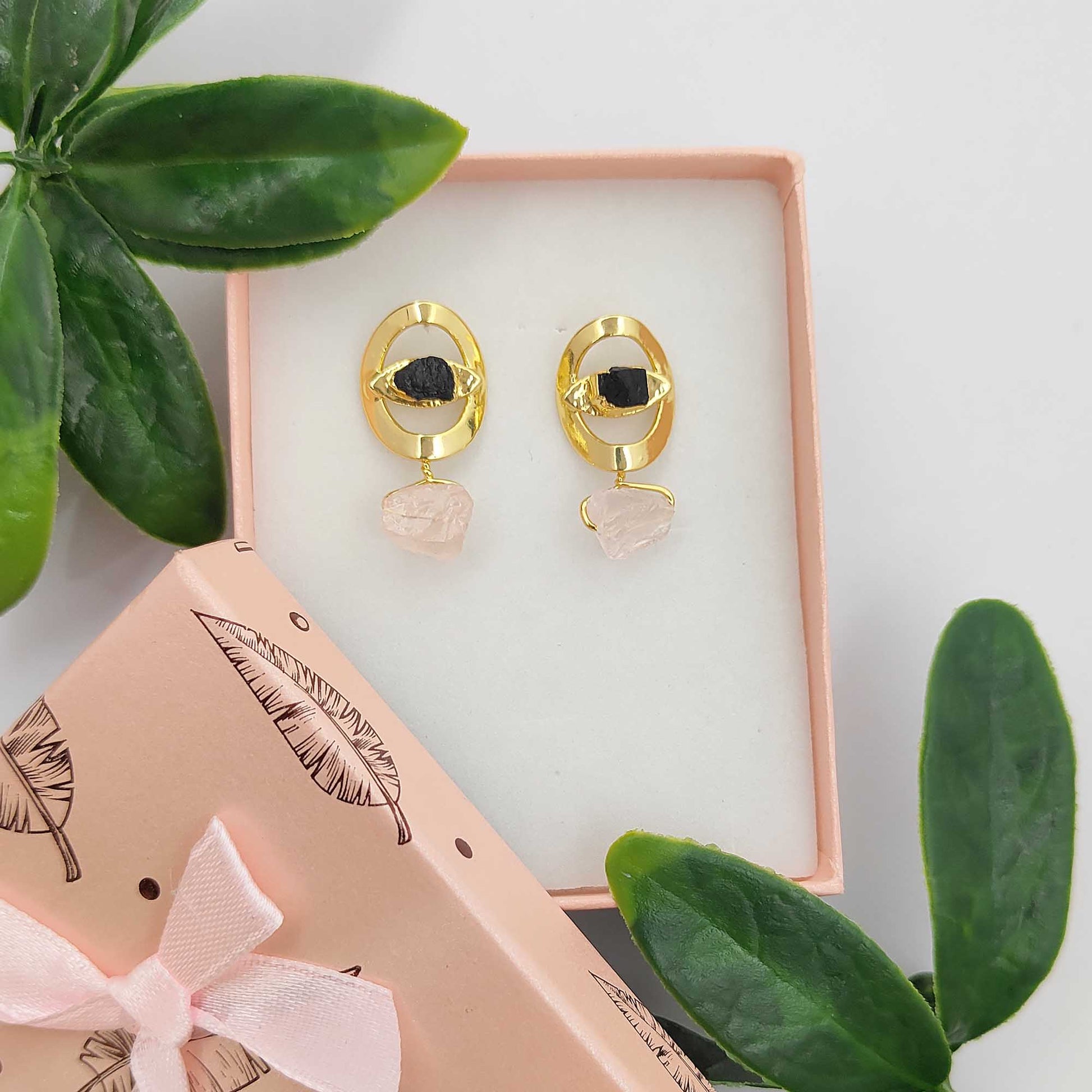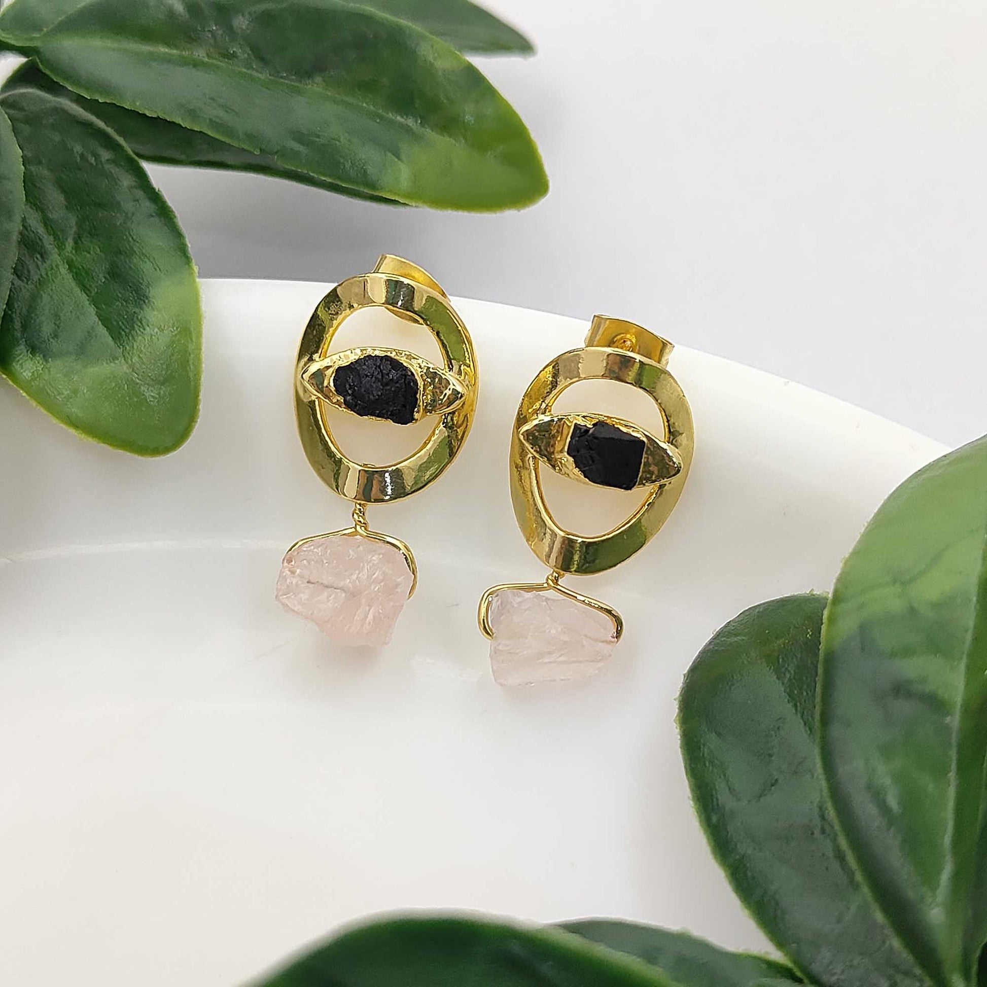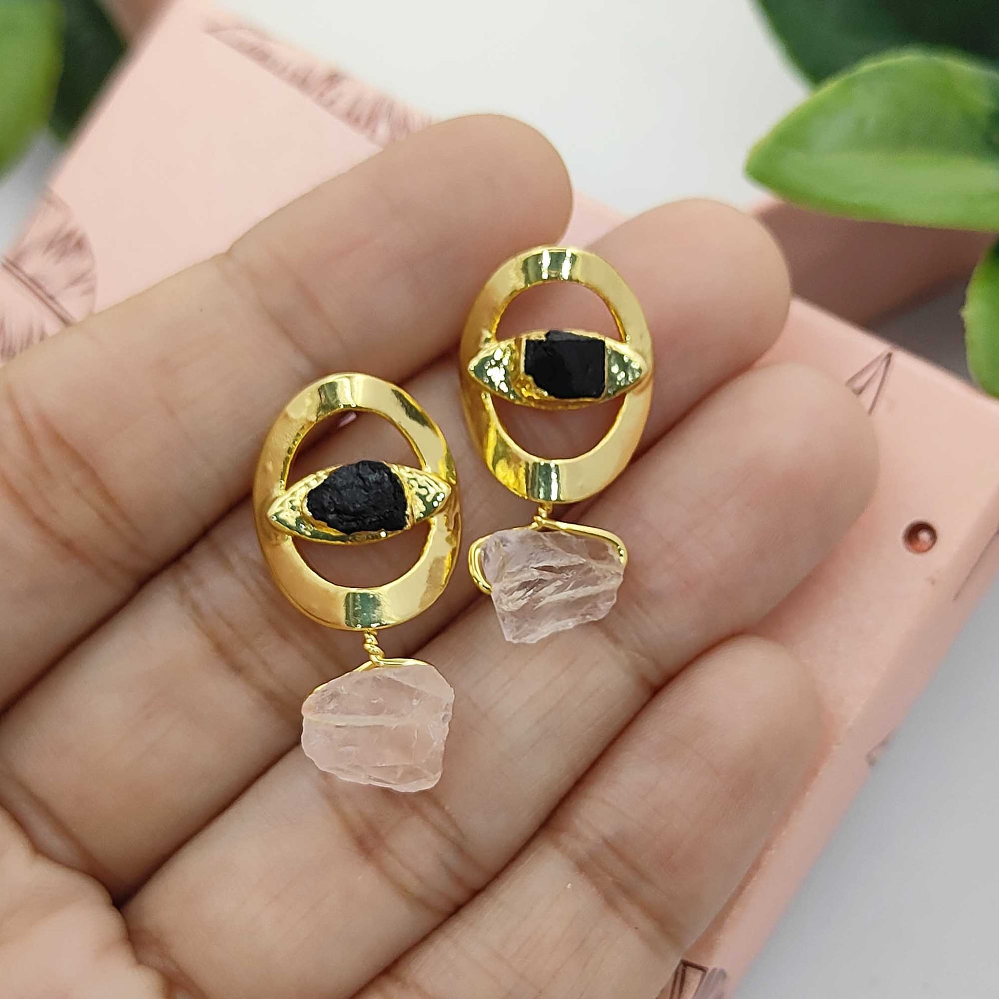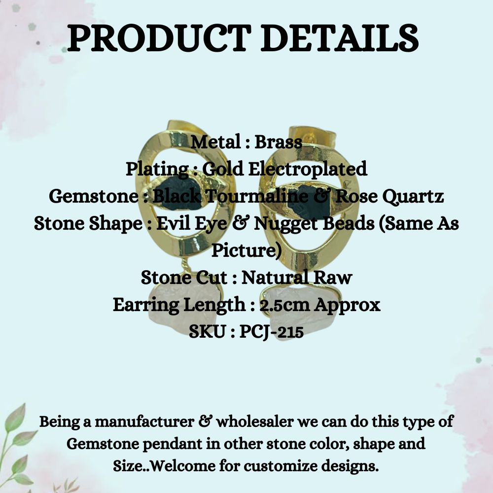 Raw Black Tourmaline Evil Eye Stud Earrings Handmade Gemstone Studs Minimalist Jewelry for Gift- Selling Per Pair