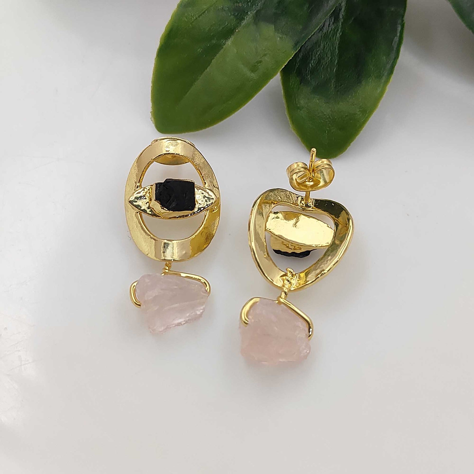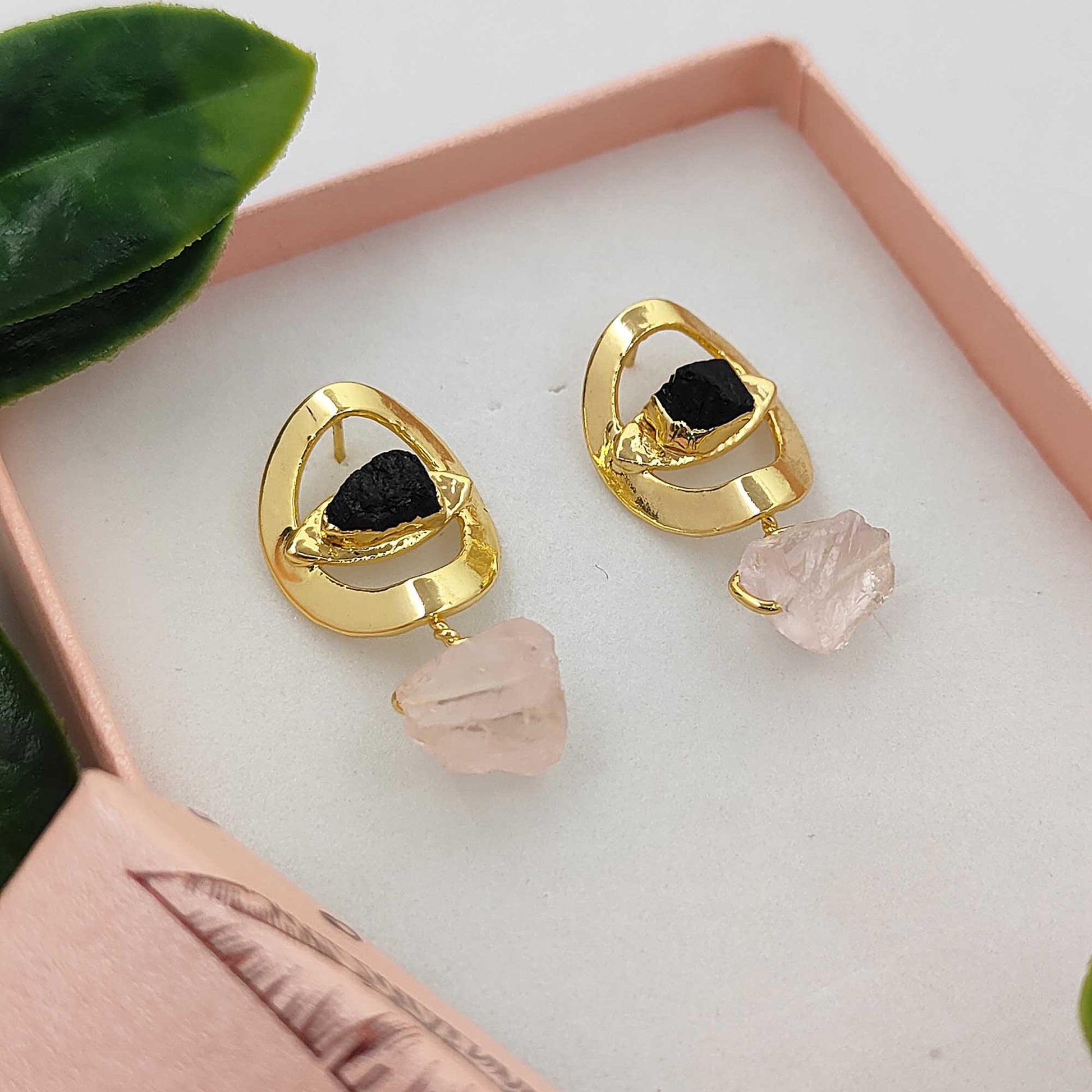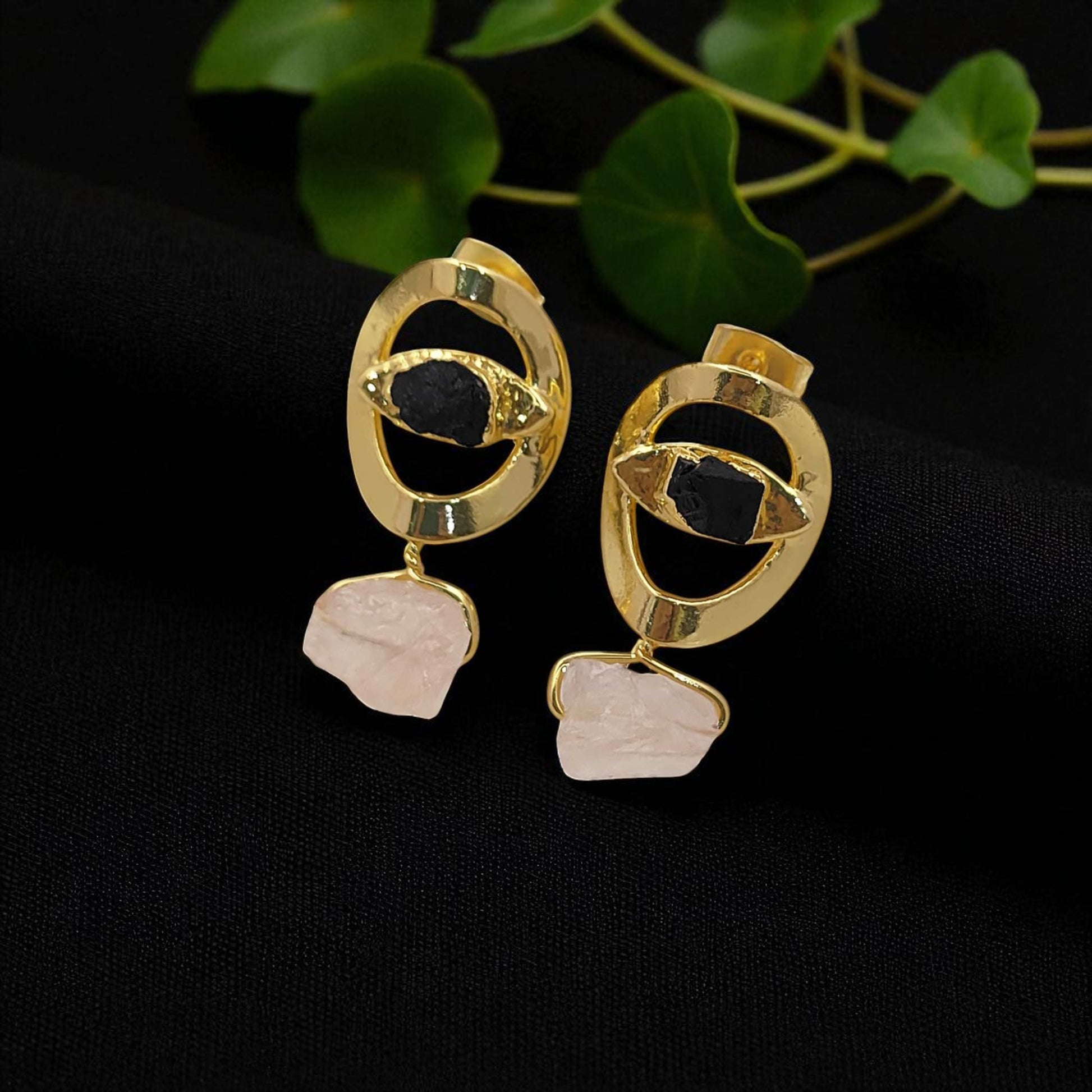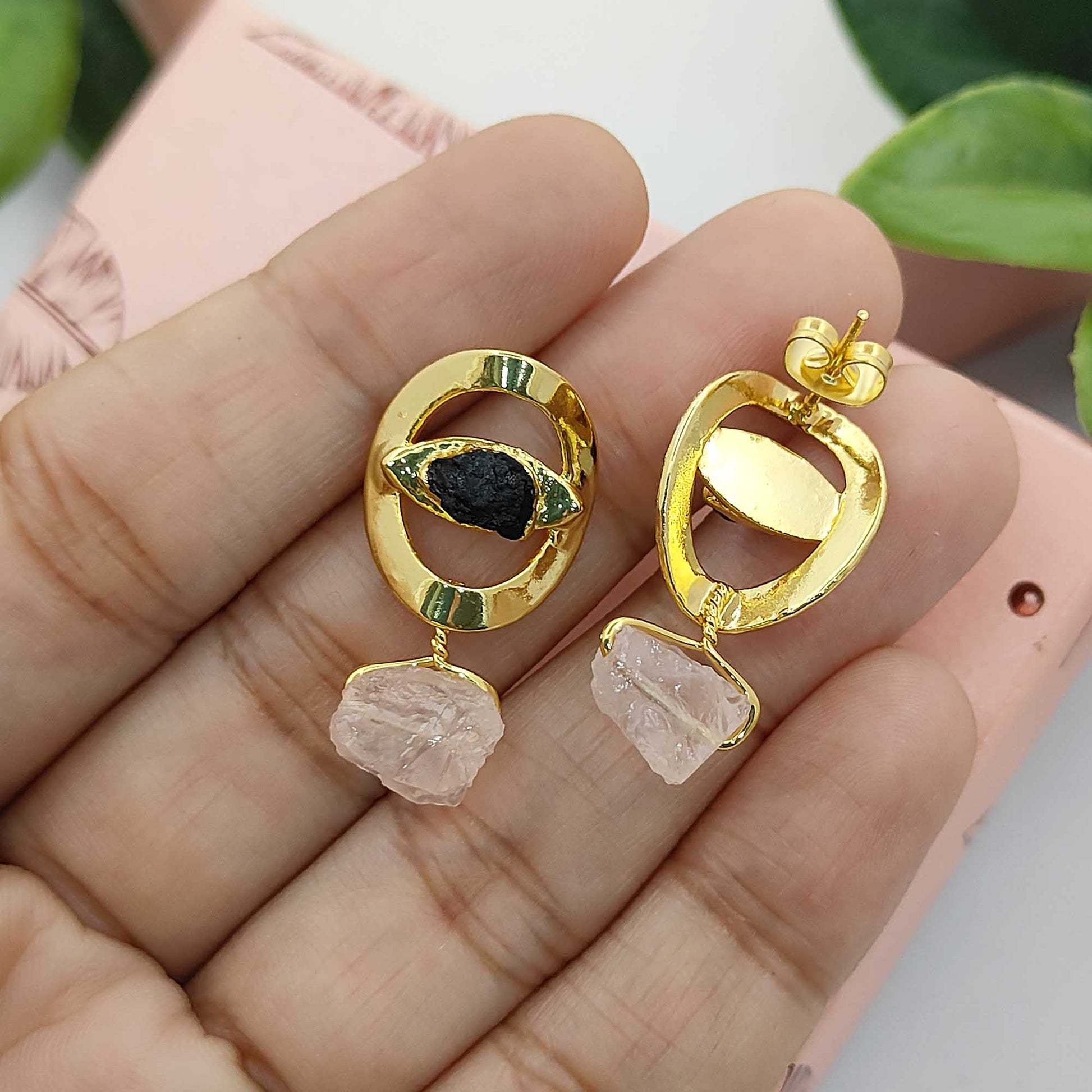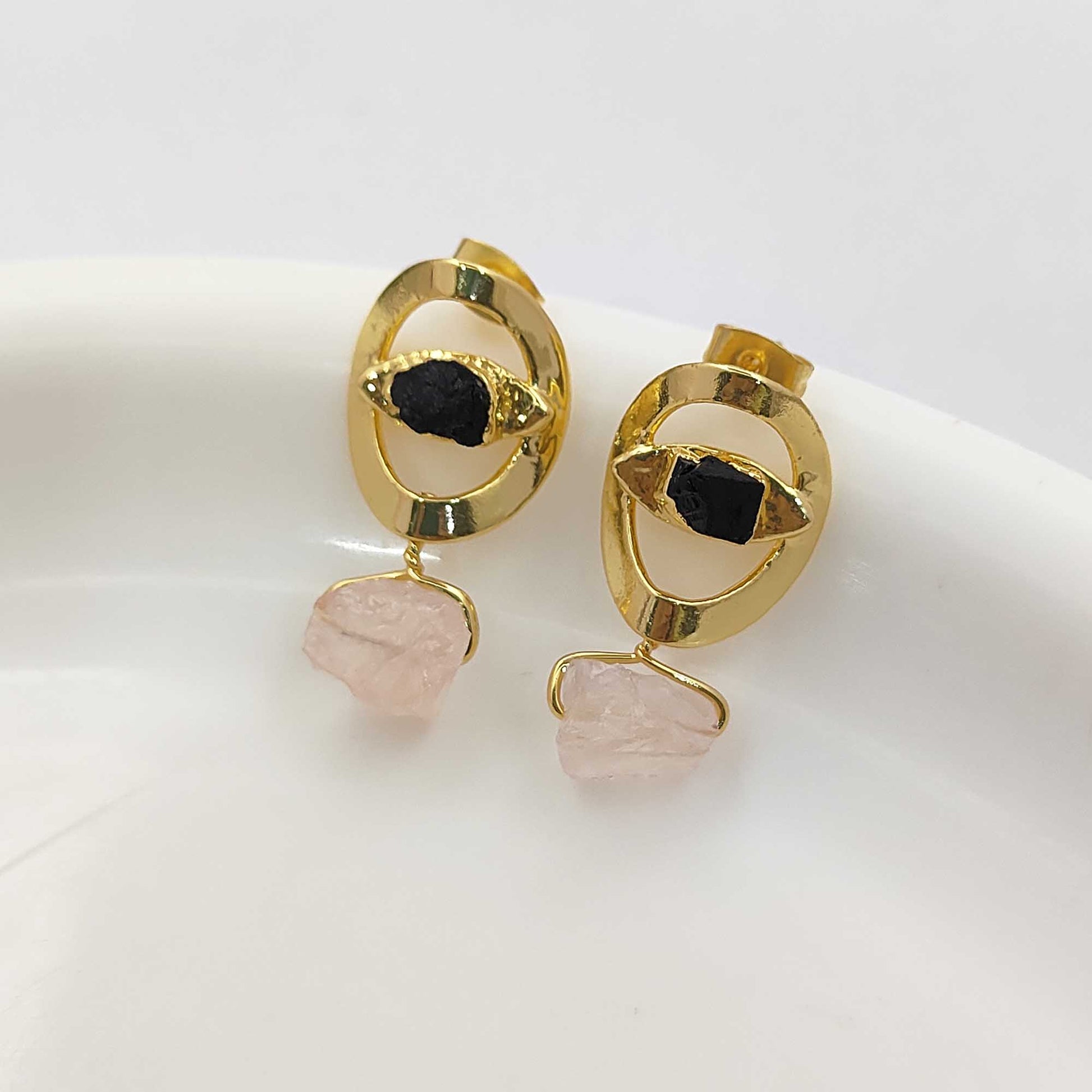 Raw Black Tourmaline Evil Eye Stud Earrings Handmade Gemstone Studs Minimalist Jewelry for Gift- Selling Per Pair