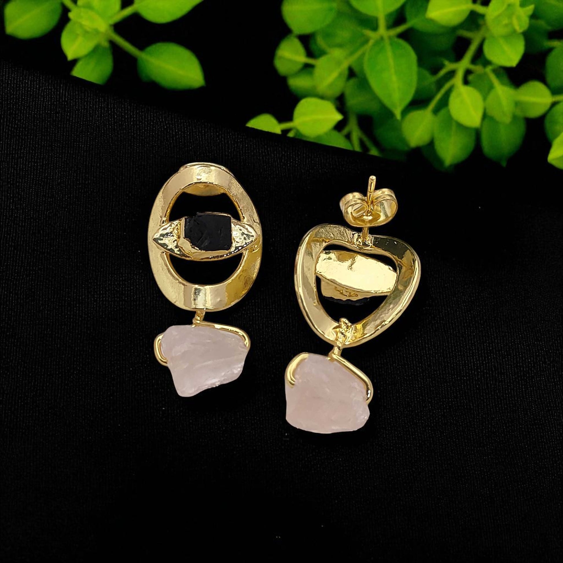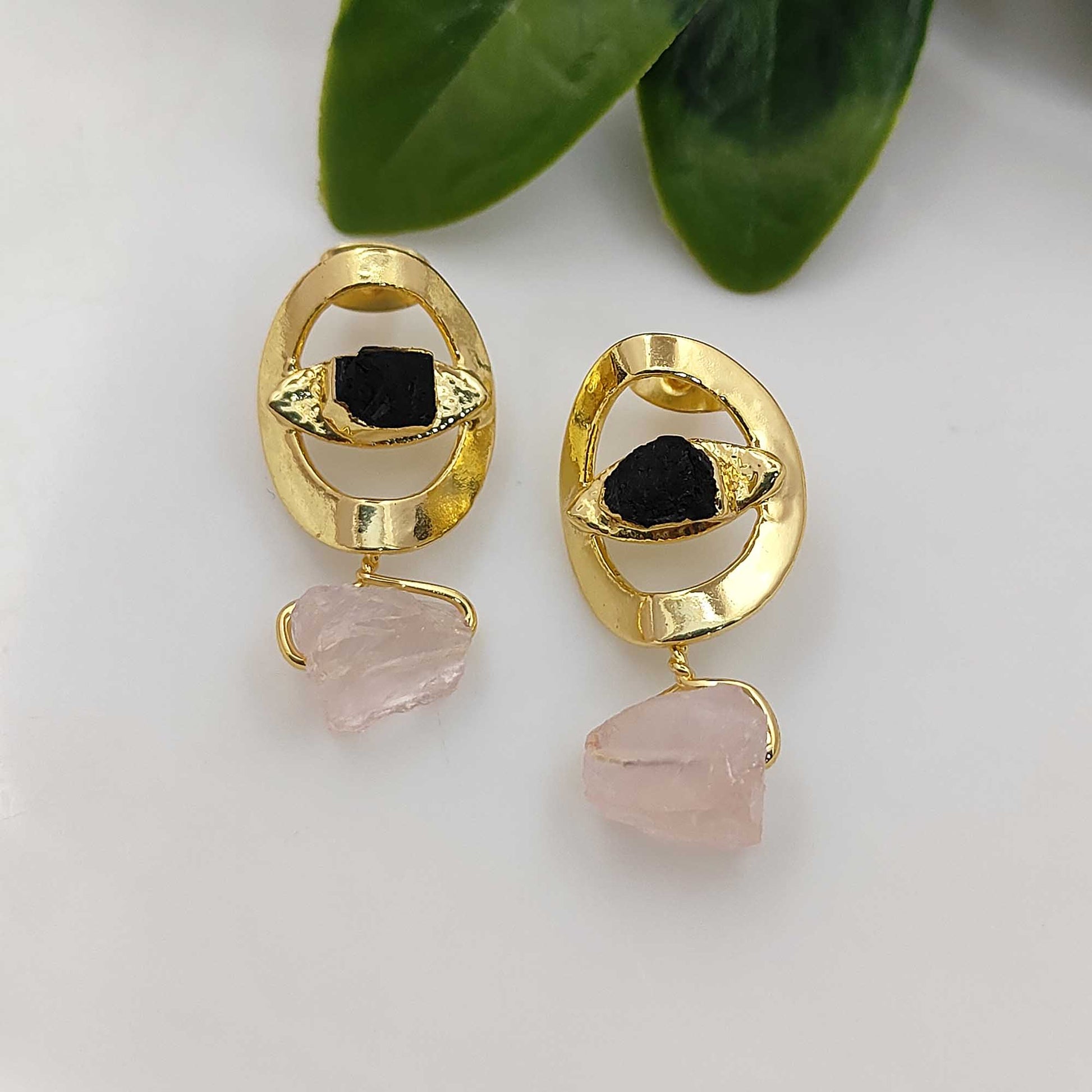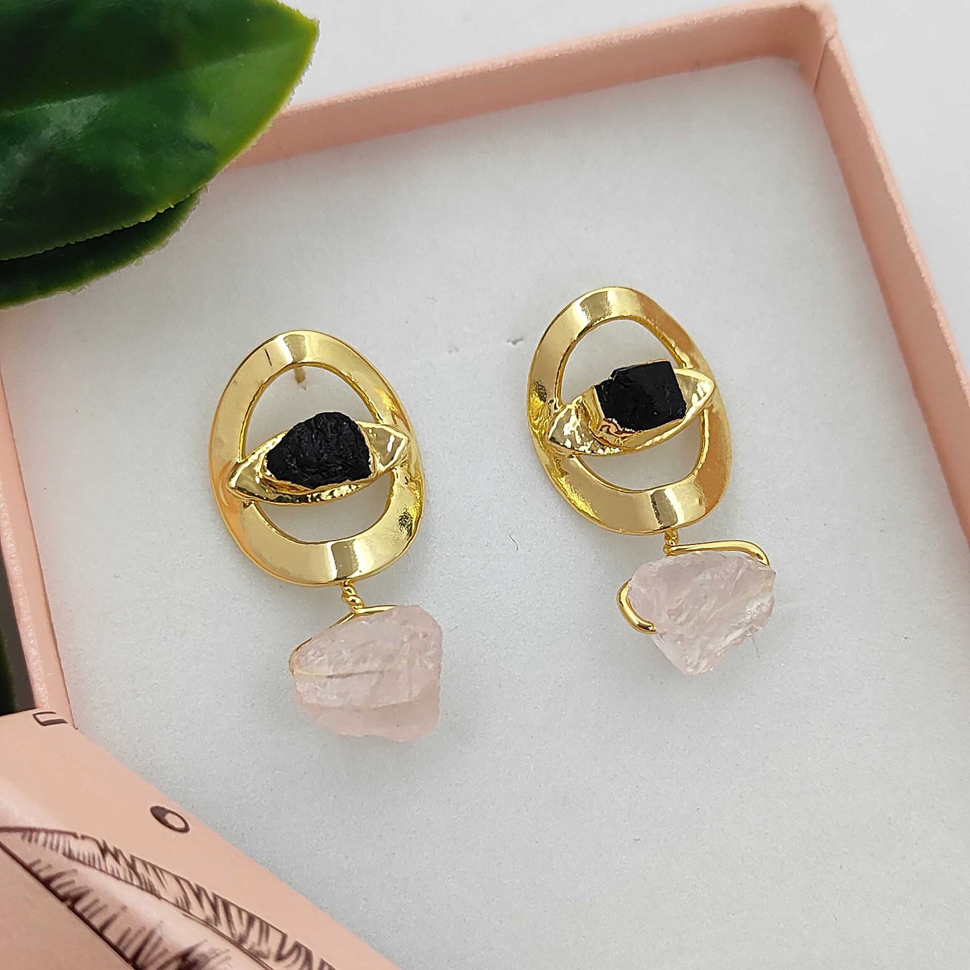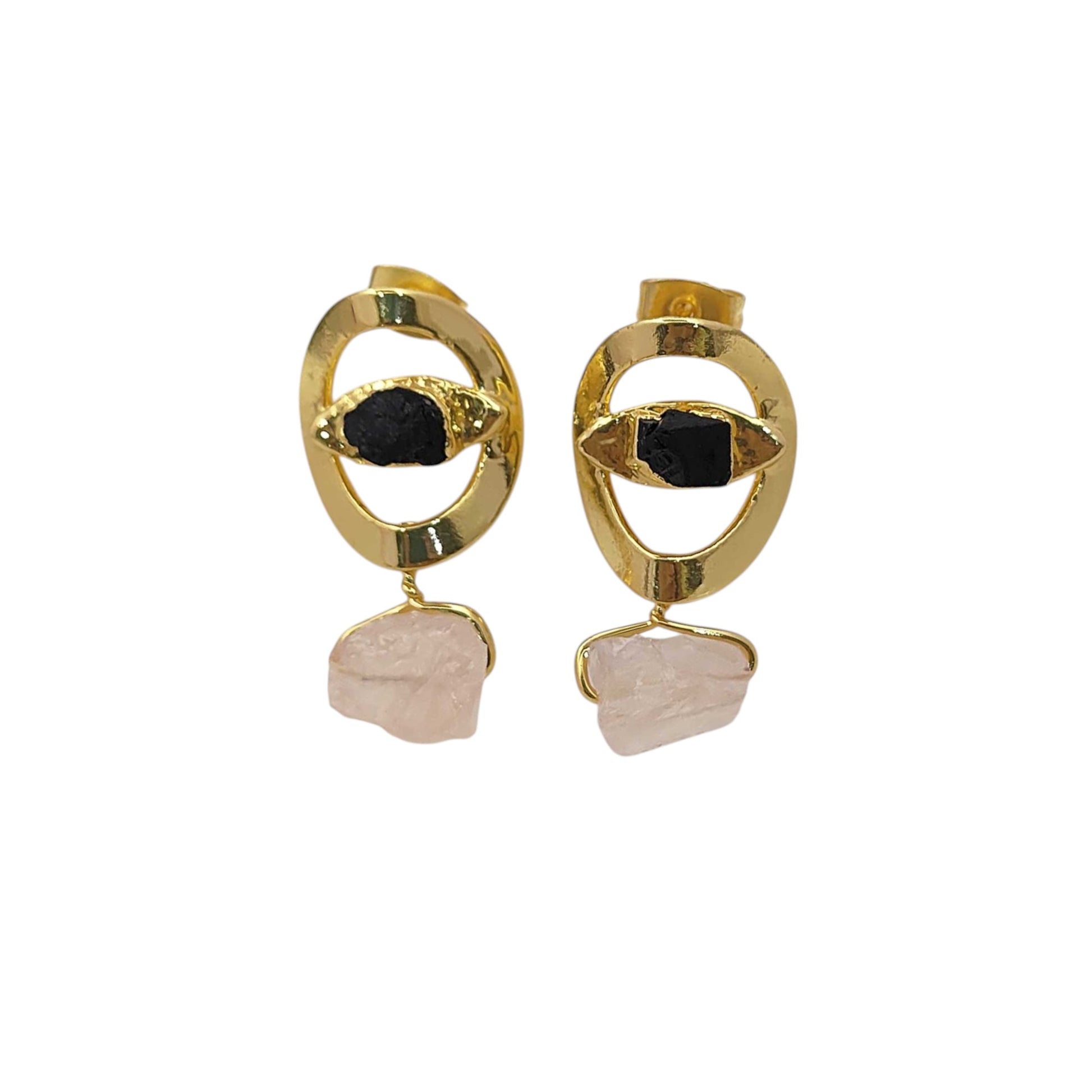 Raw Black Tourmaline Evil Eye Stud Earrings Handmade Gemstone Studs Minimalist Jewelry for Gift- Selling Per Pair
