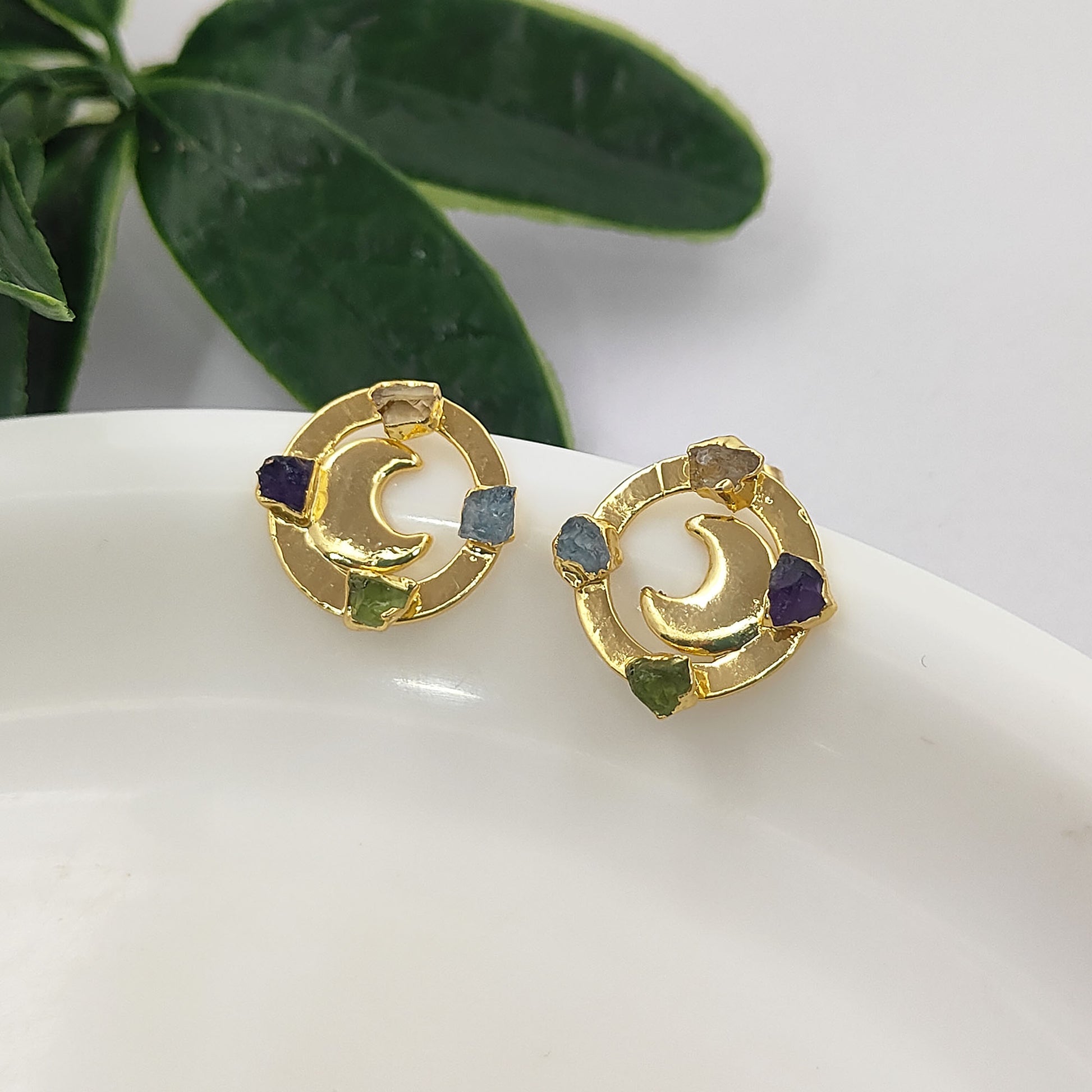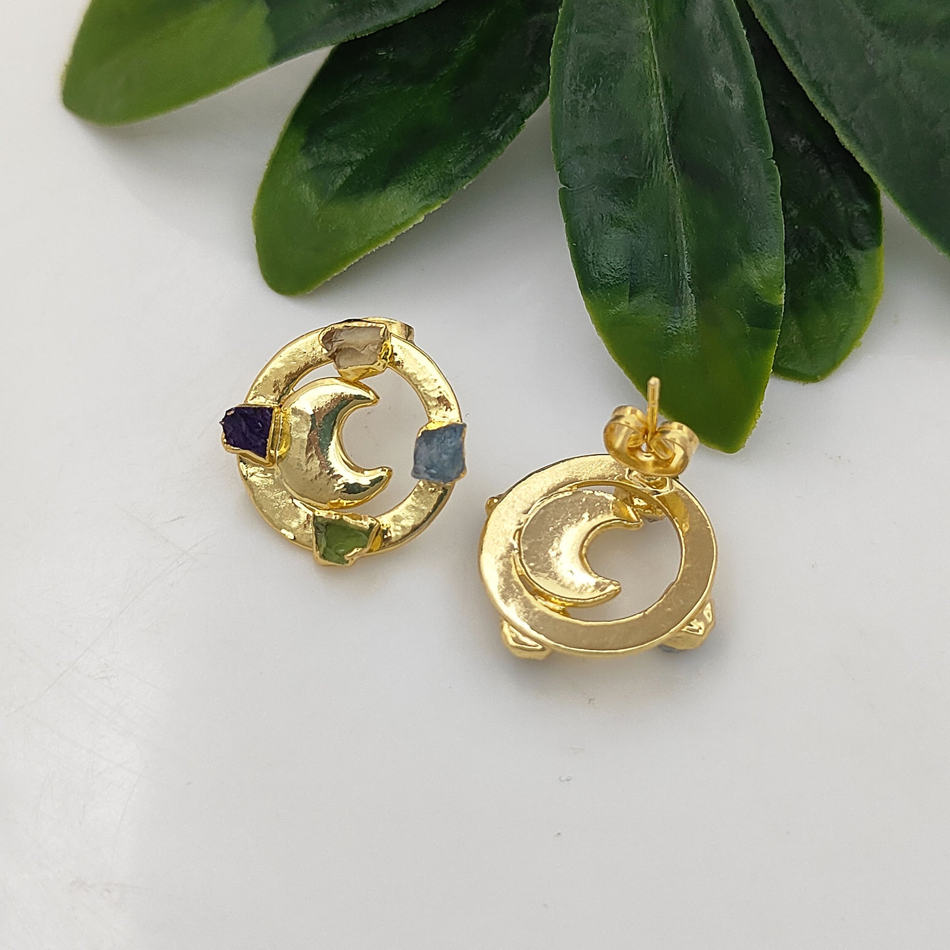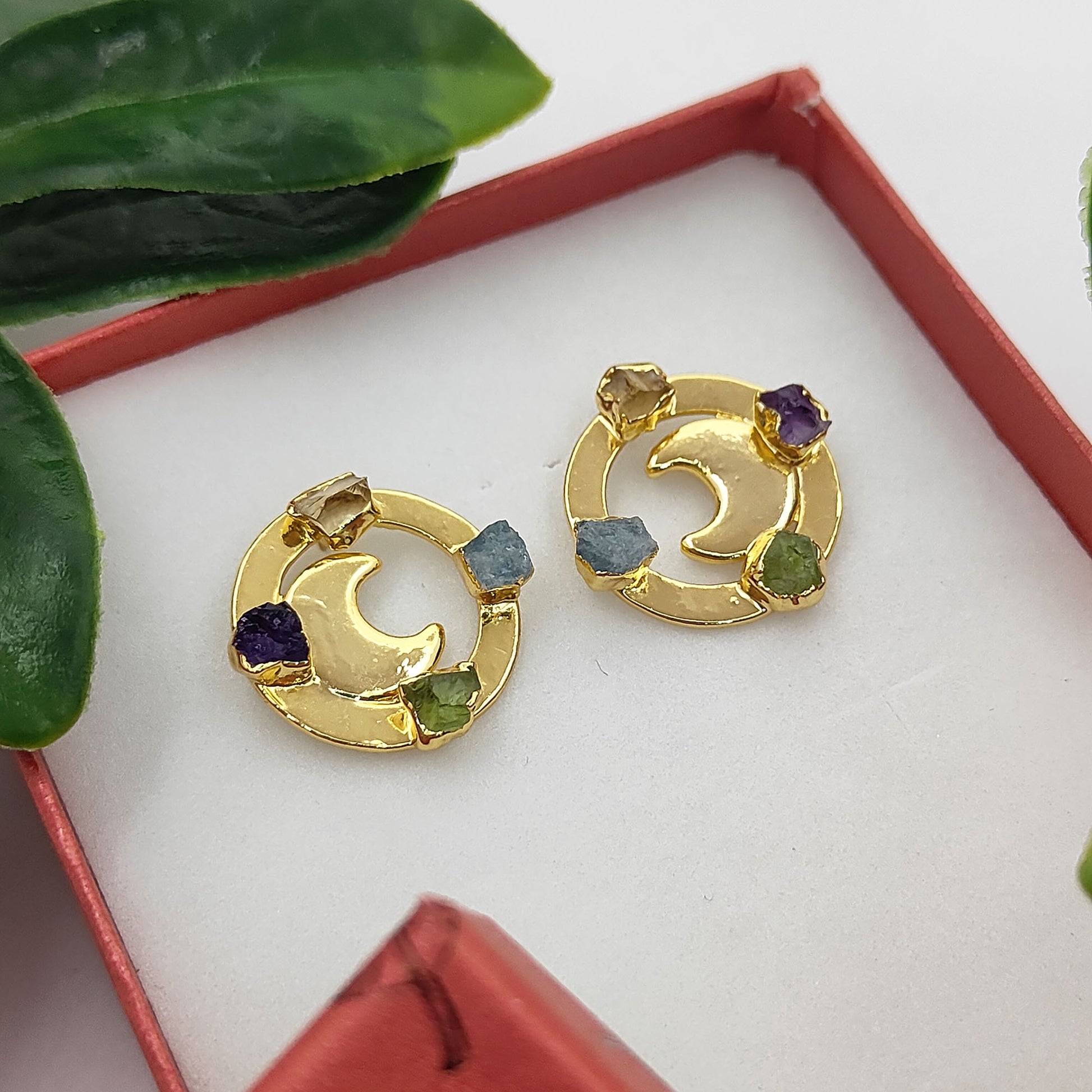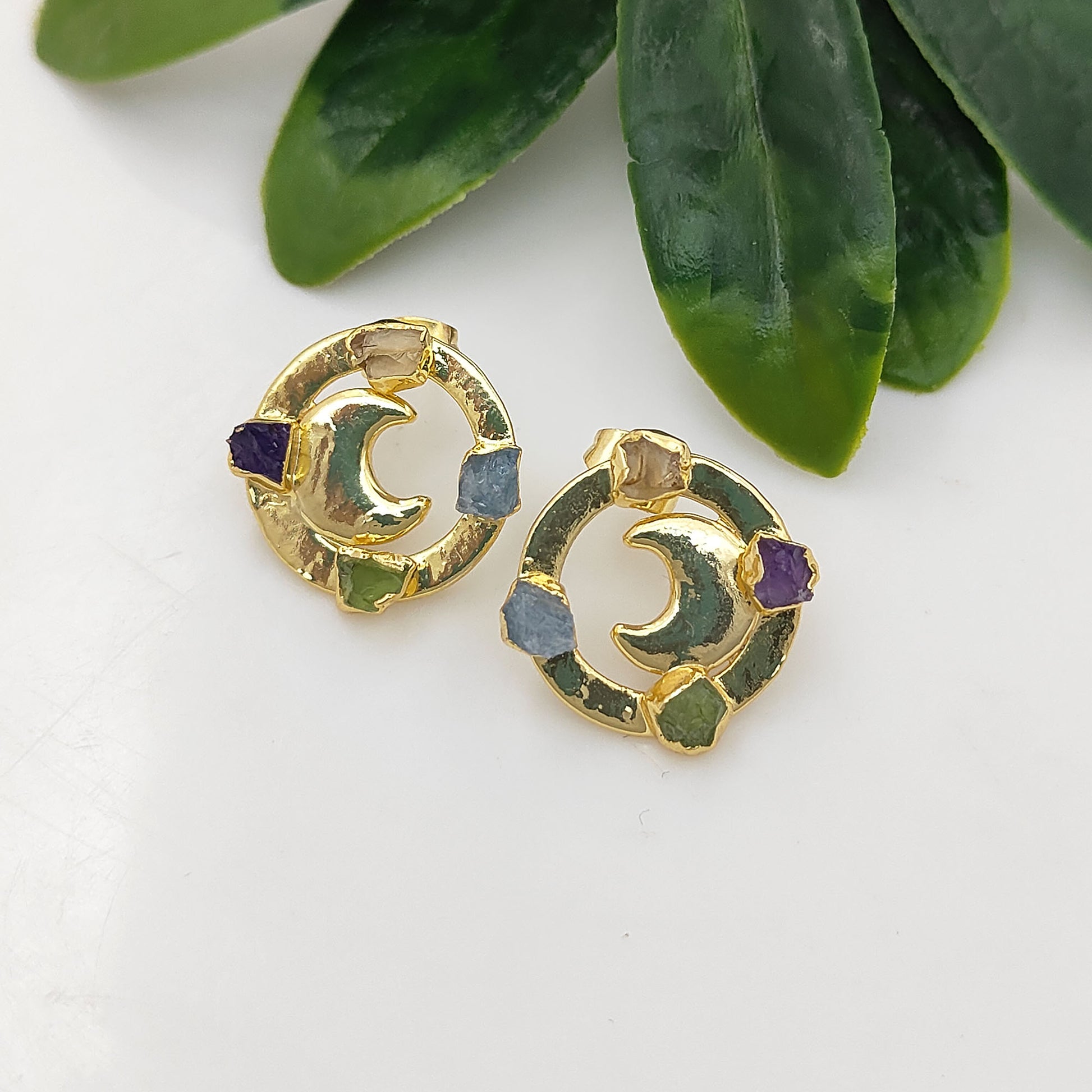 Raw Crystal Crescent Half Moon Stud Earrings Celestial-Inspired Handmade Jewelry for Her- Selling Per Pair