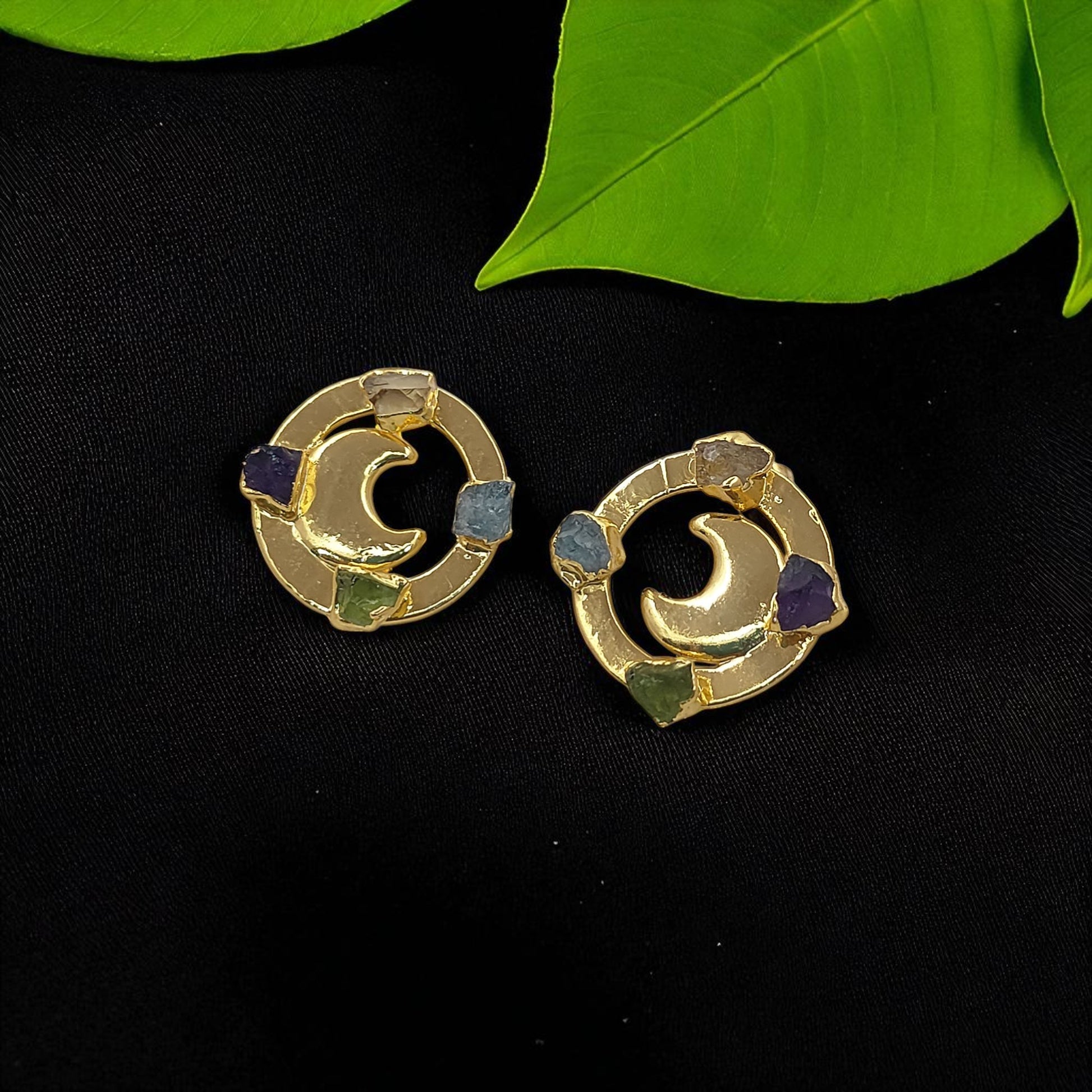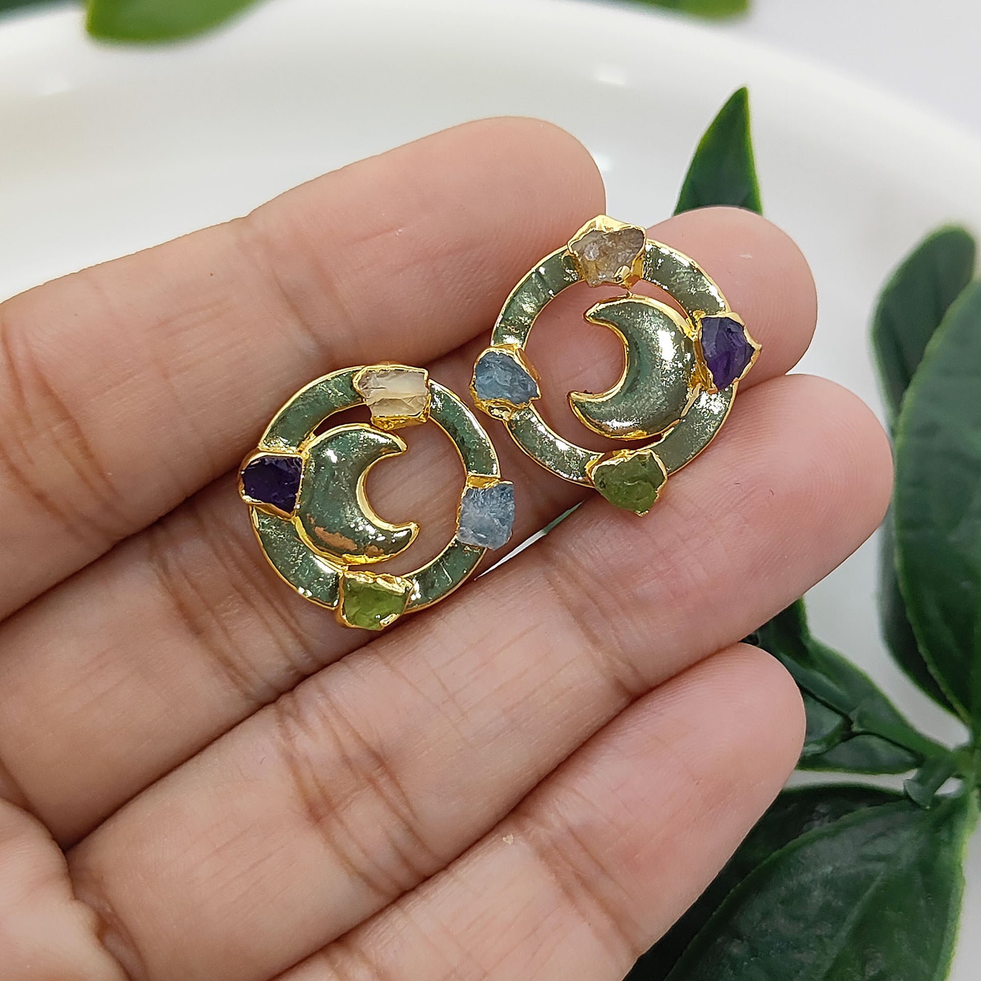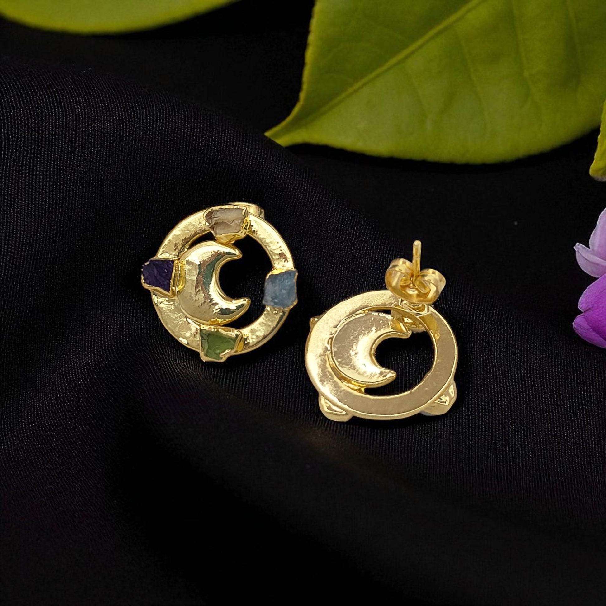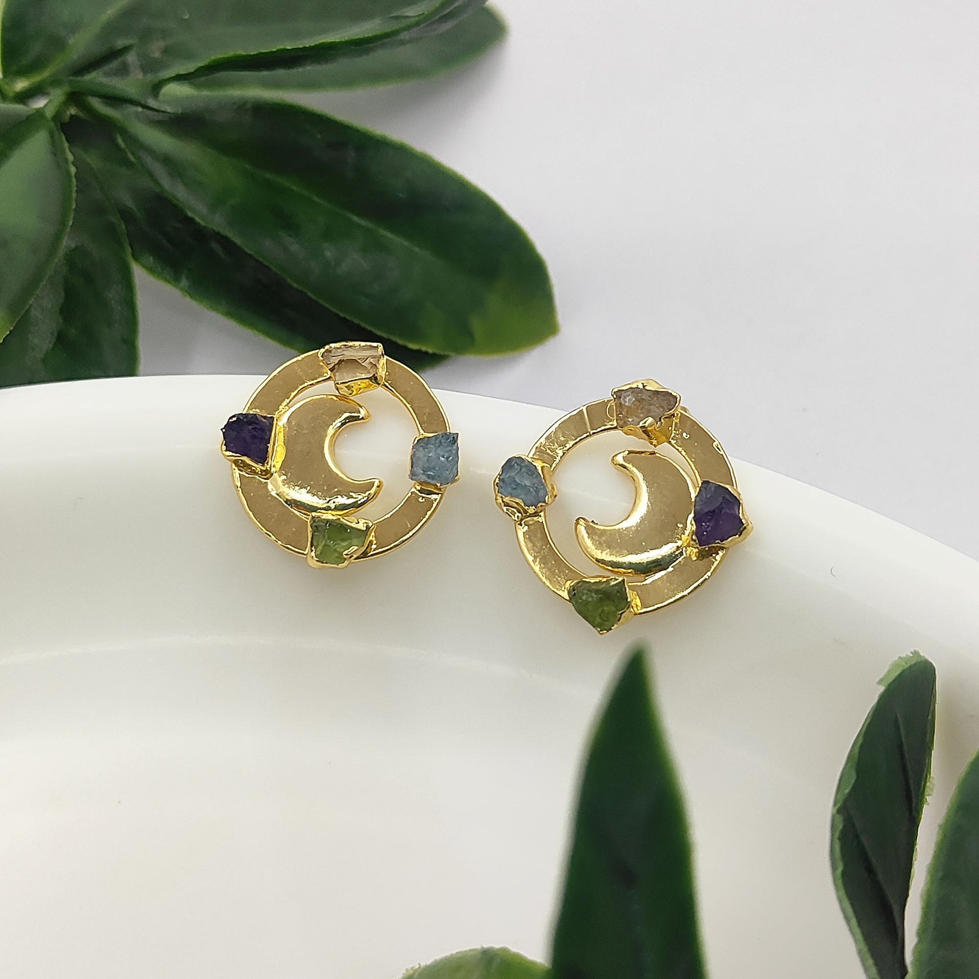 Raw Crystal Crescent Half Moon Stud Earrings Celestial-Inspired Handmade Jewelry for Her- Selling Per Pair