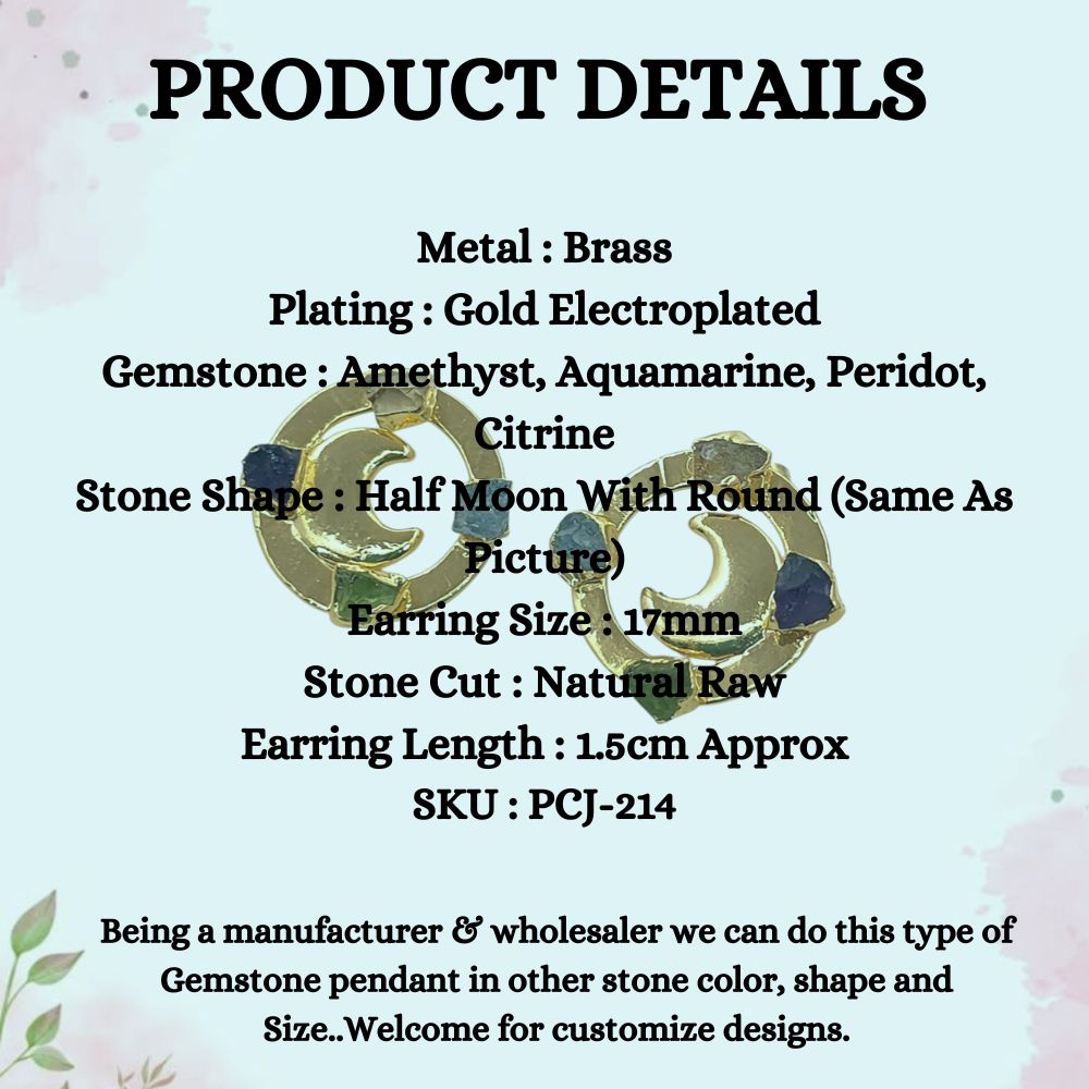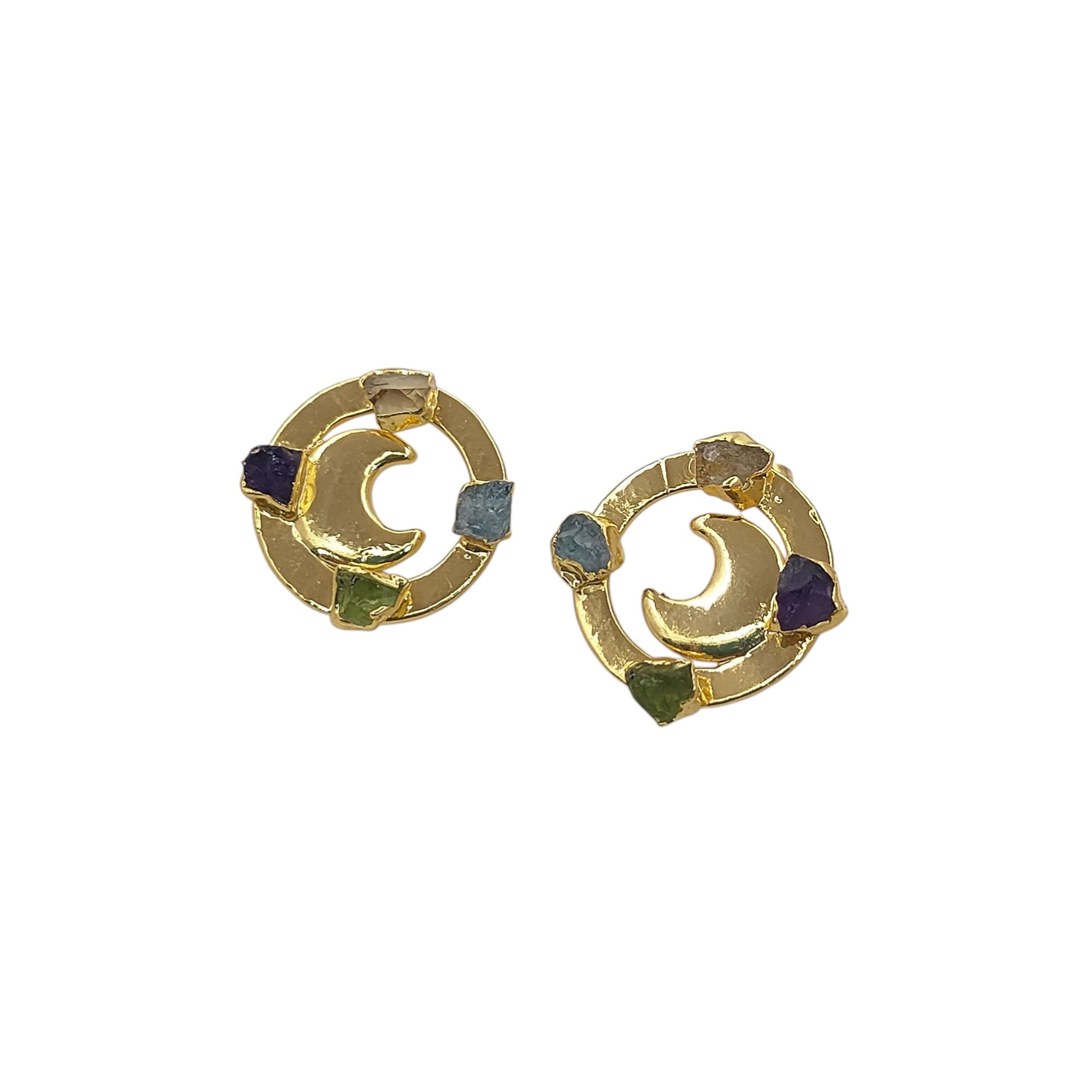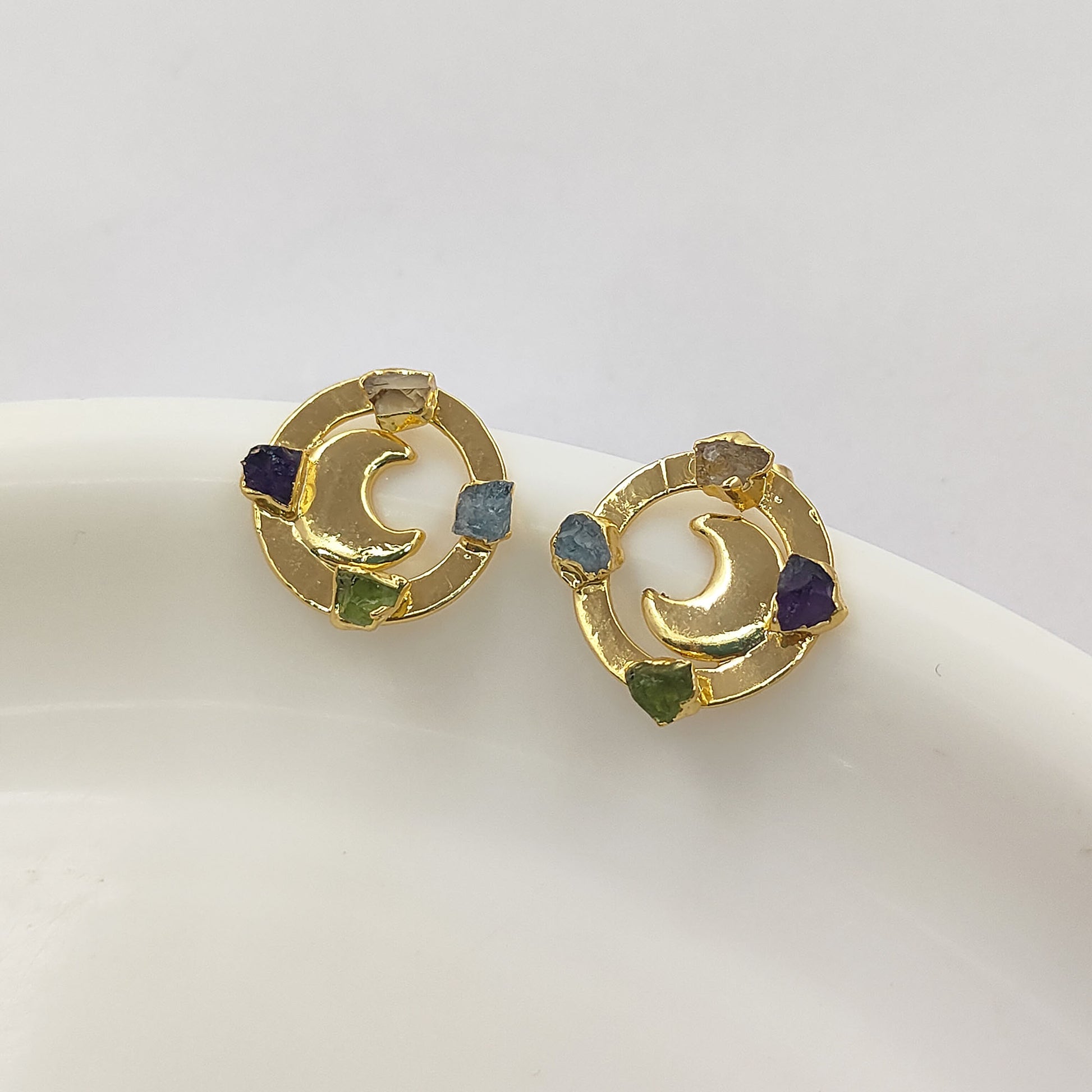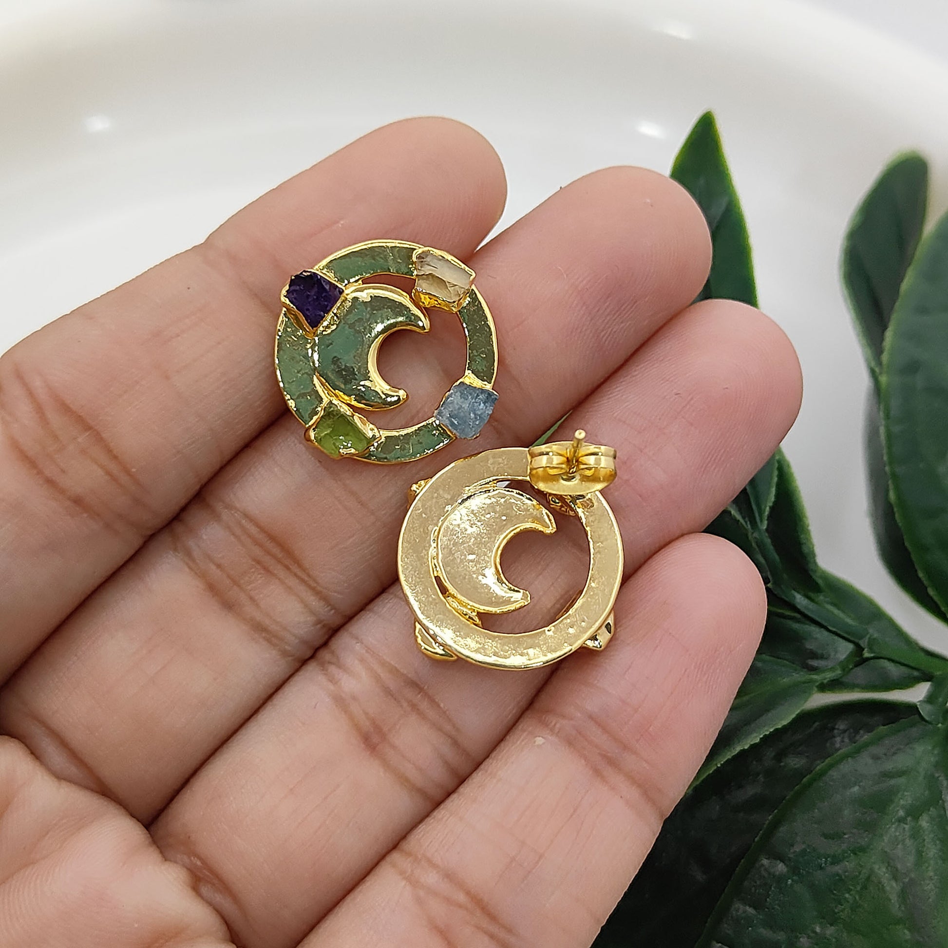 Raw Crystal Crescent Half Moon Stud Earrings Celestial-Inspired Handmade Jewelry for Her- Selling Per Pair