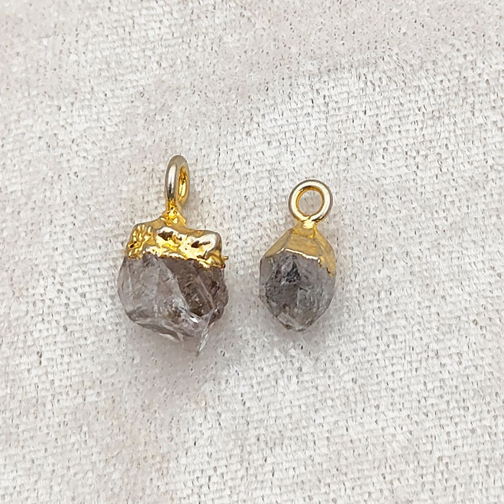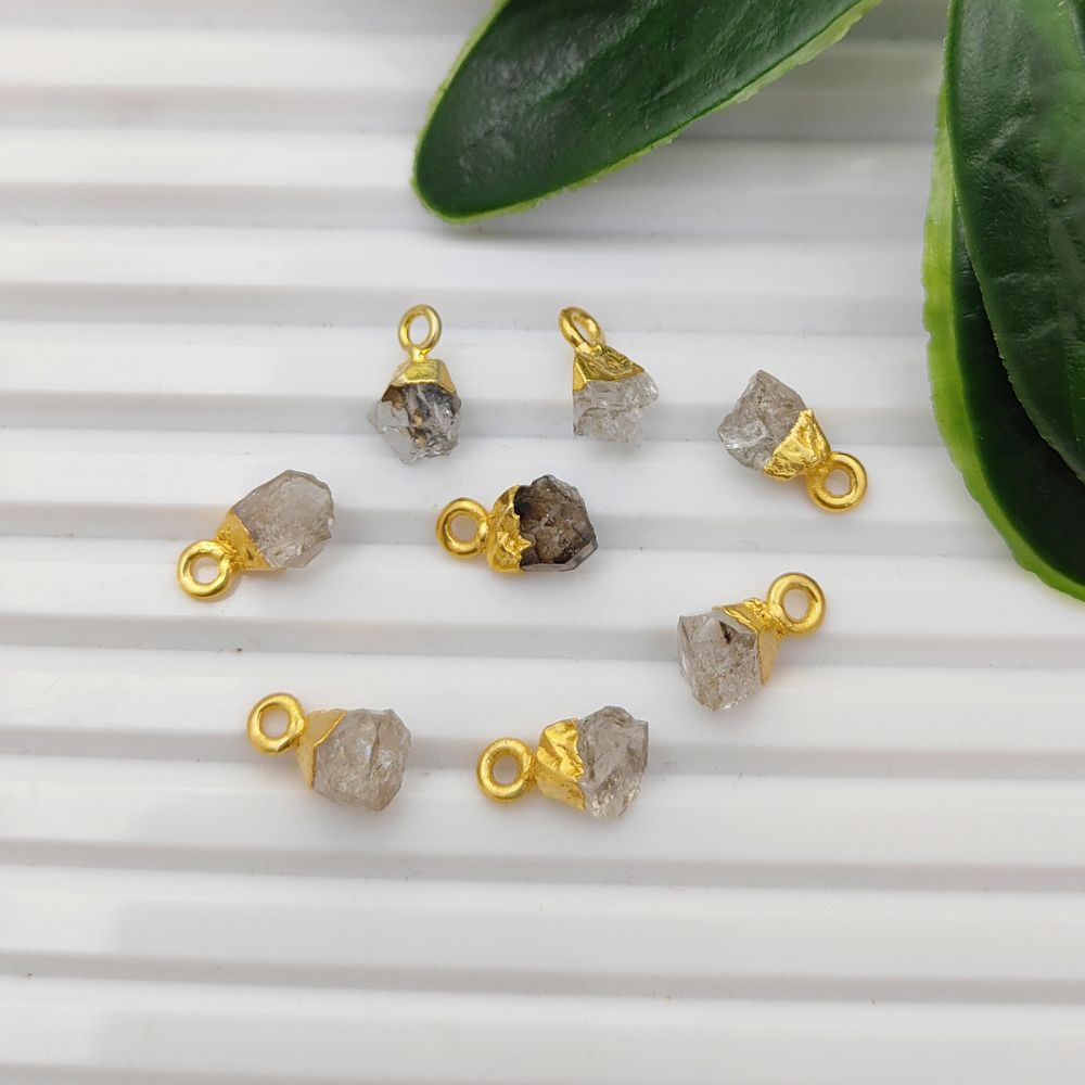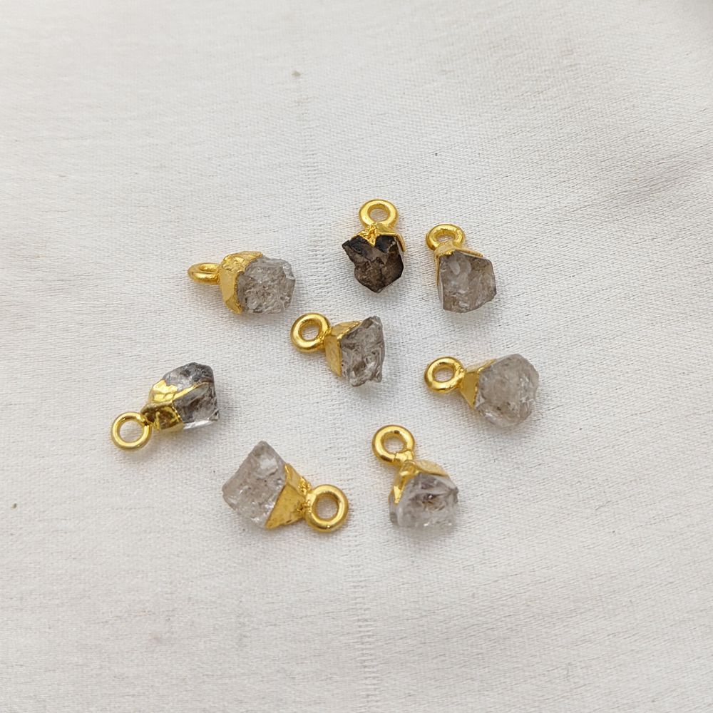 Raw Herkimer Diamond Crystal Pendant April Birthstone with Gold Finish Cap for Handmade Jewelry & Boho Accessories- Selling Per Piece