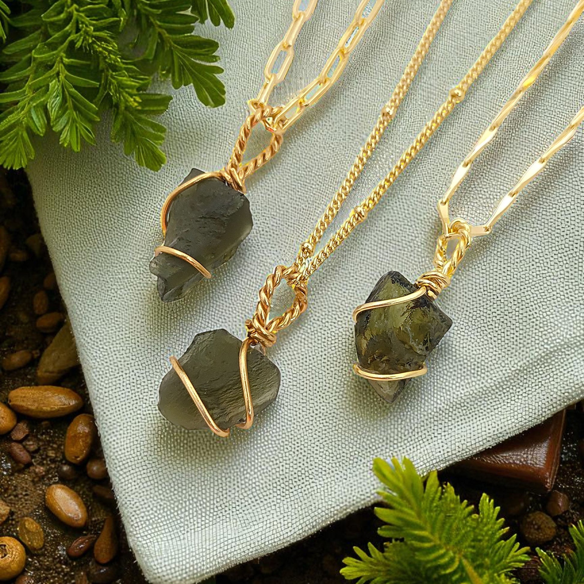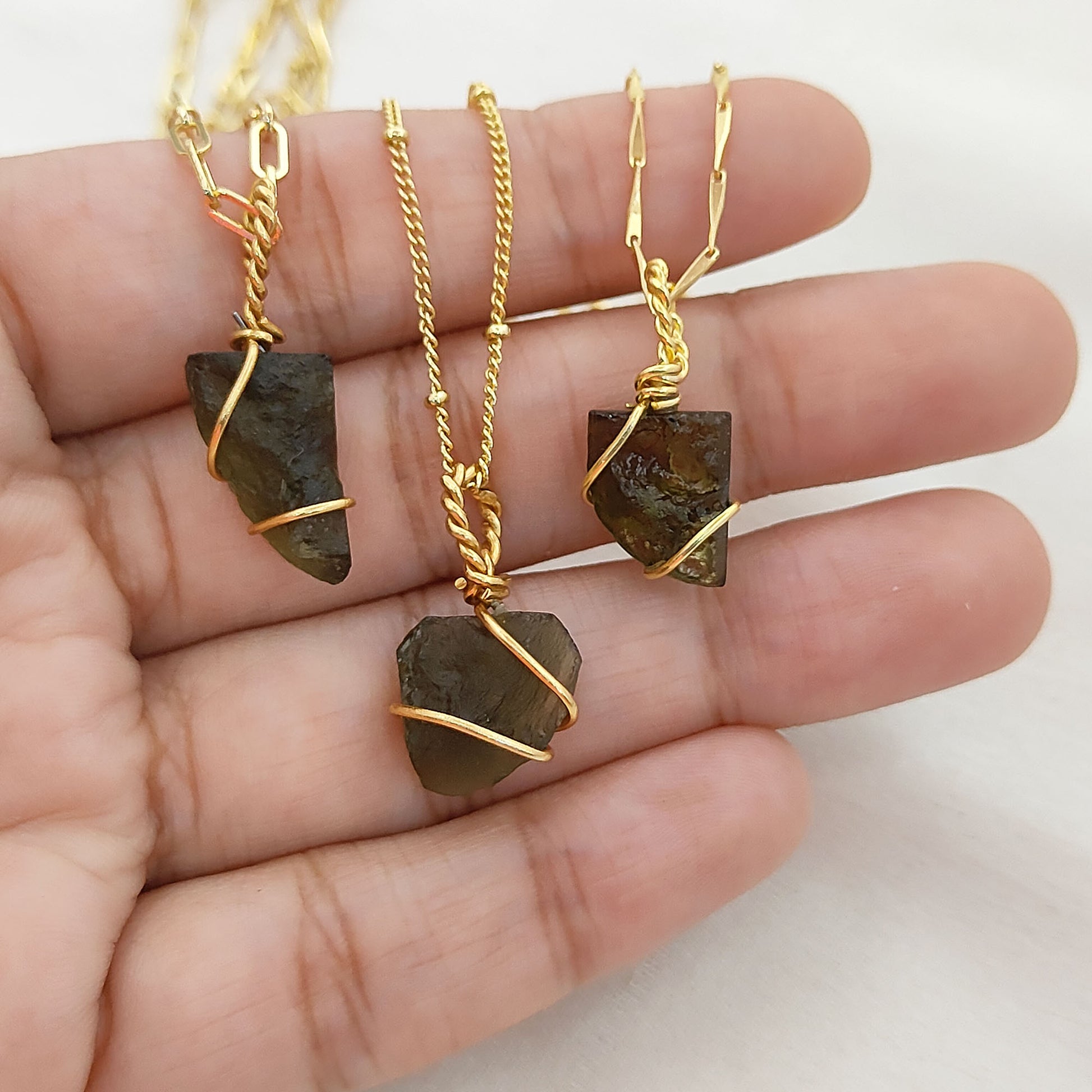 Raw Moldavite Wire Wrapped Necklace Green Crystal Healing Pendant for Transformation & Heart Chakra- Selling Per Piece