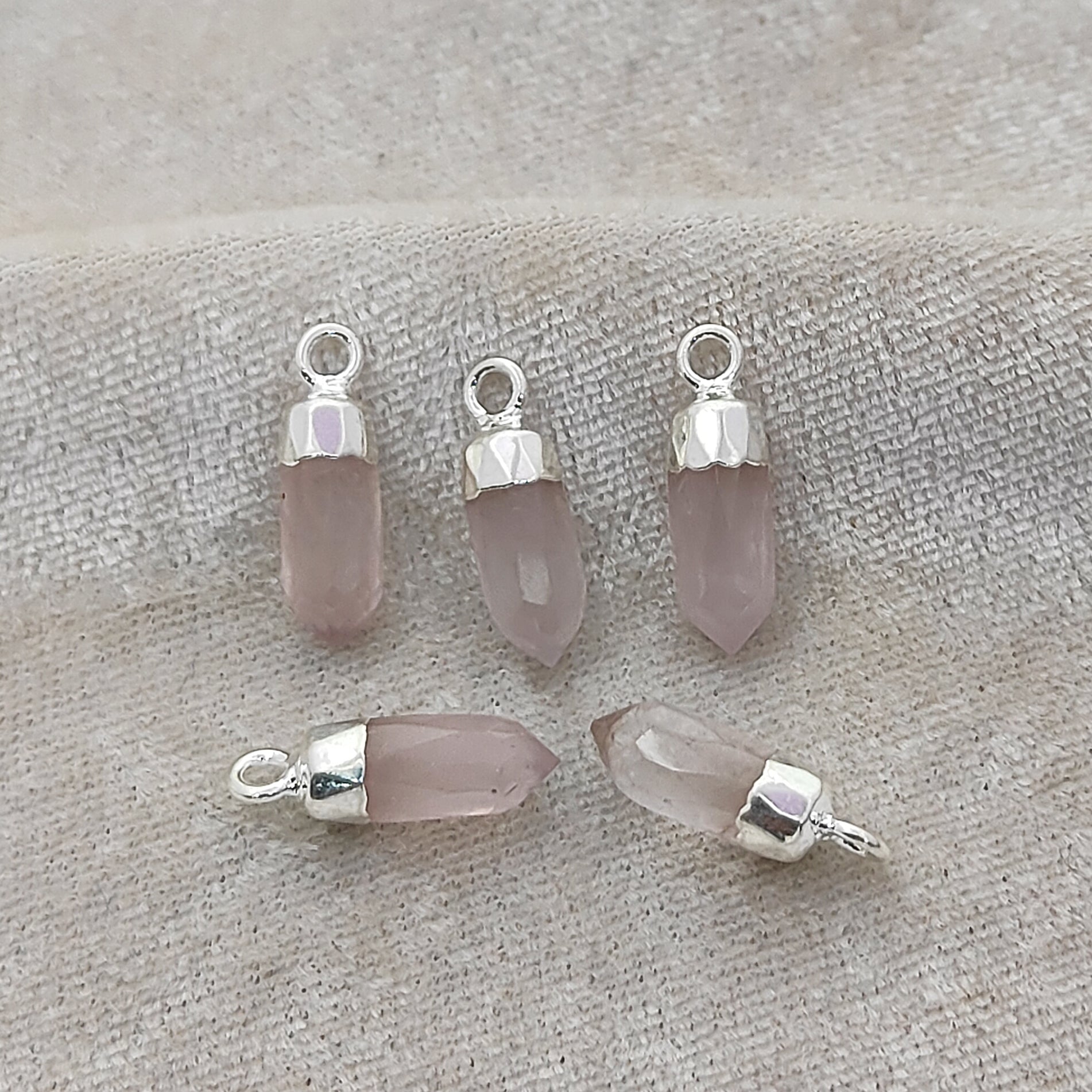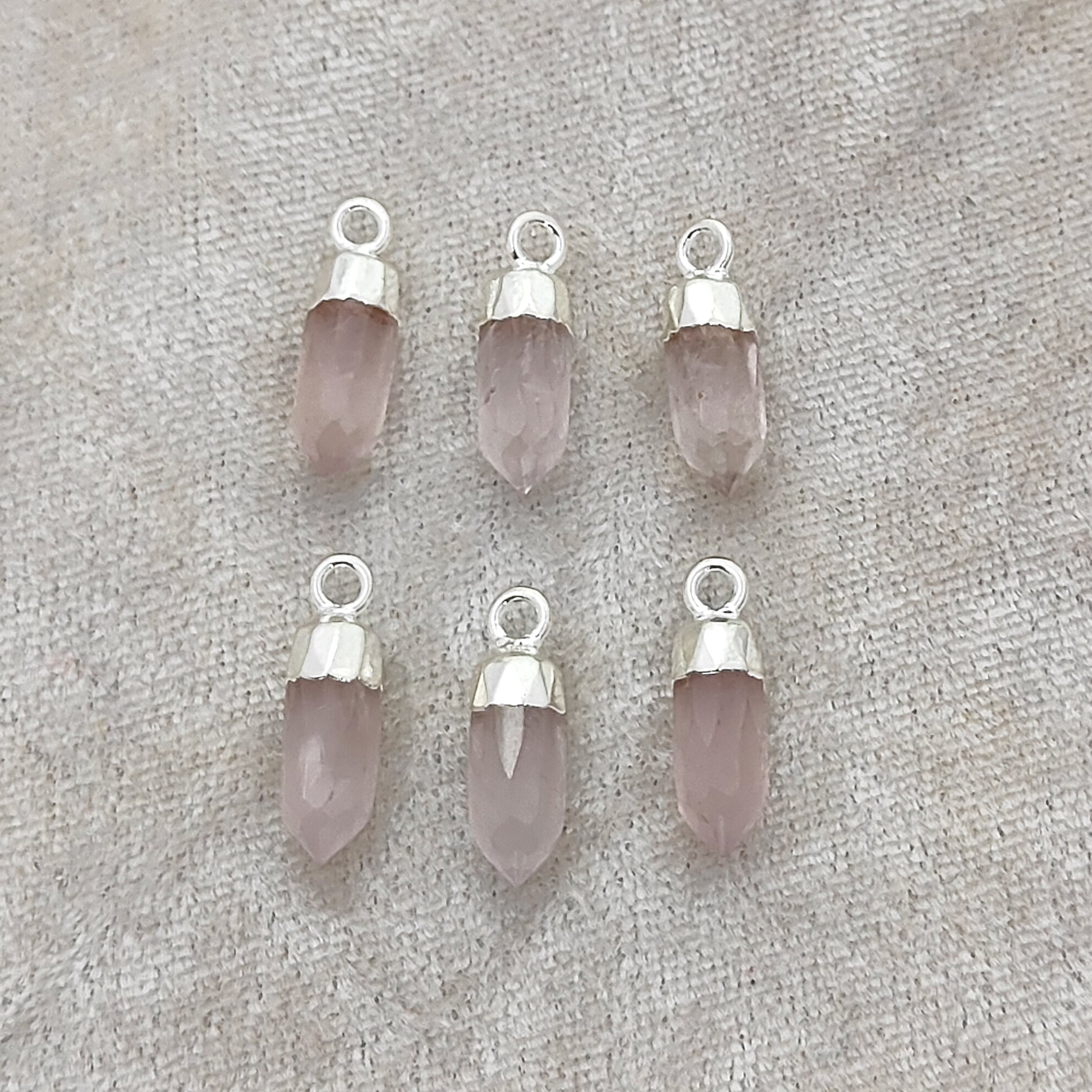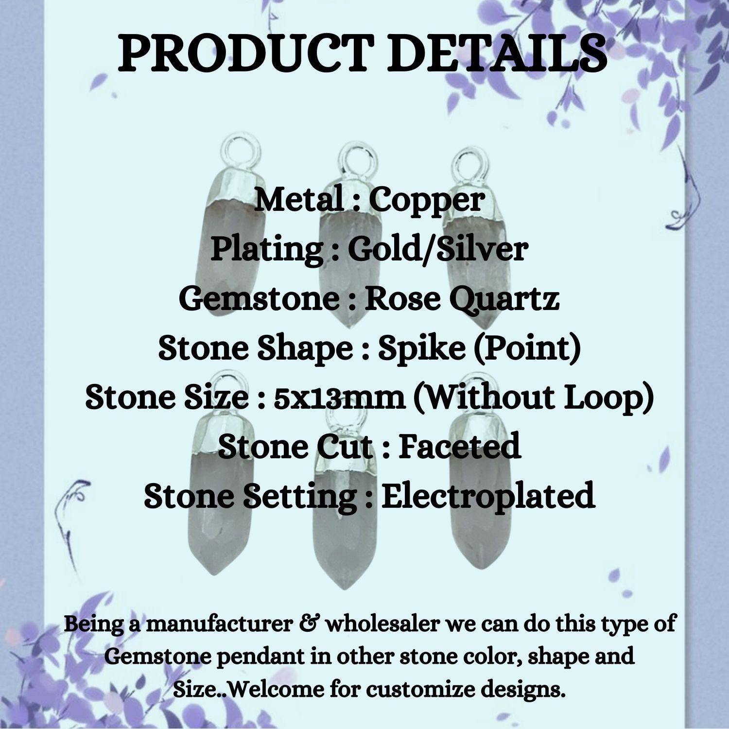 Rose Quartz Spike Pendant Electroplated Gold/Silver Capped Crystal Charm for Handmade Necklaces & Bracelets