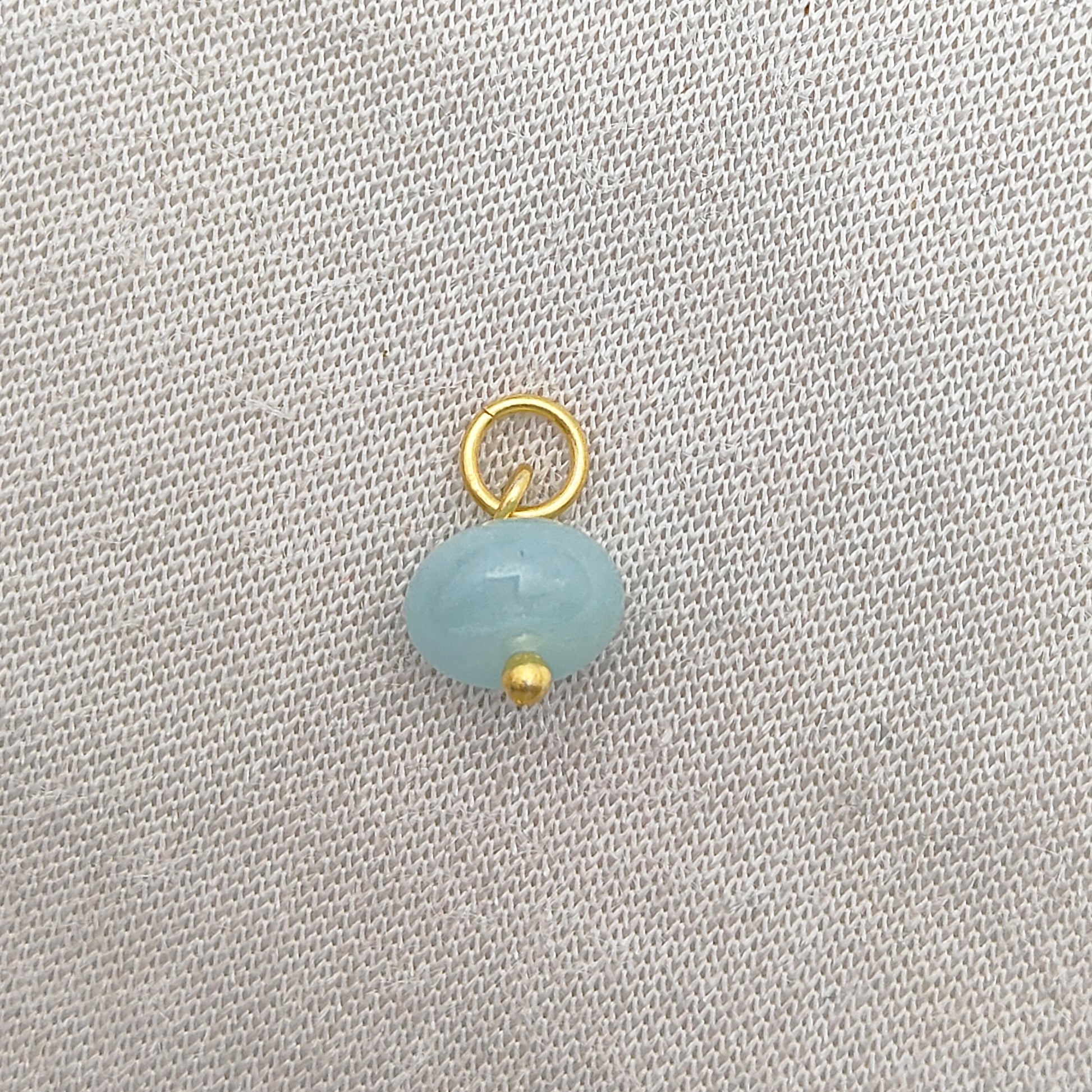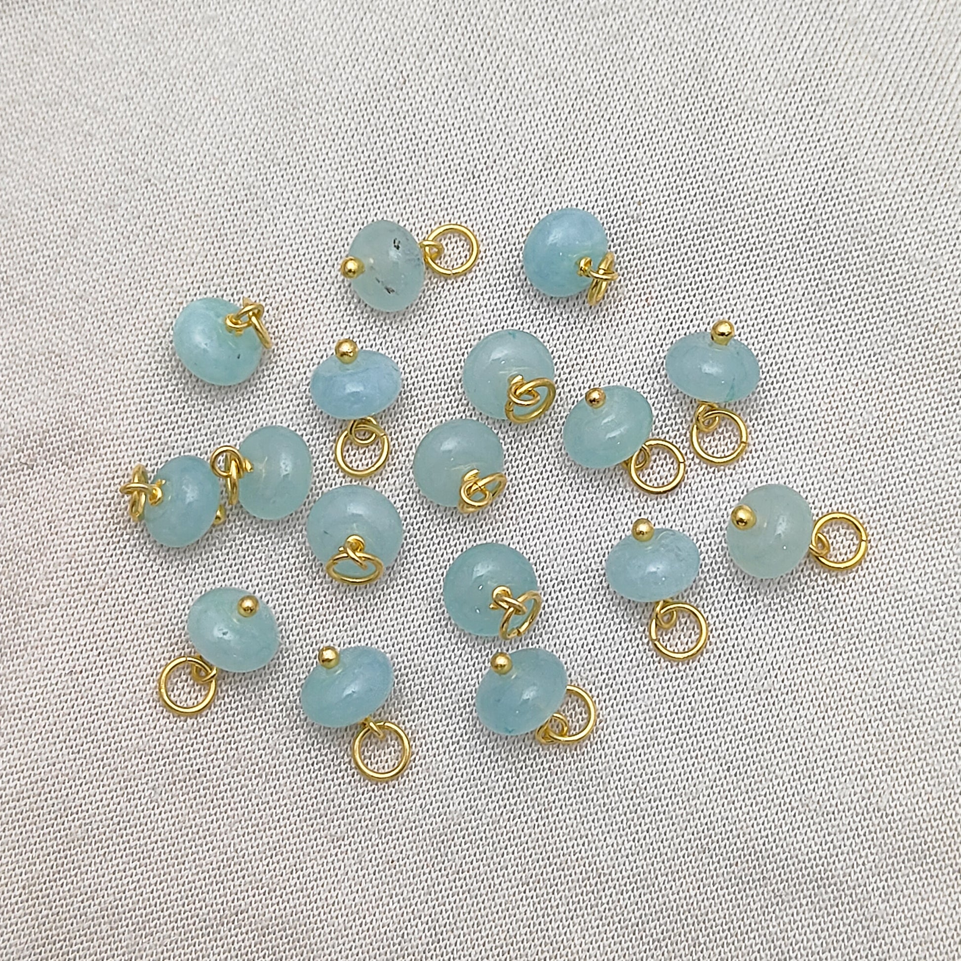 Roundel 8mm Aqua Chalcedony Beaded Pendant Gold Vermeil Gemstone Charm for DIY Jewelry & Gifts- Selling Per Piece