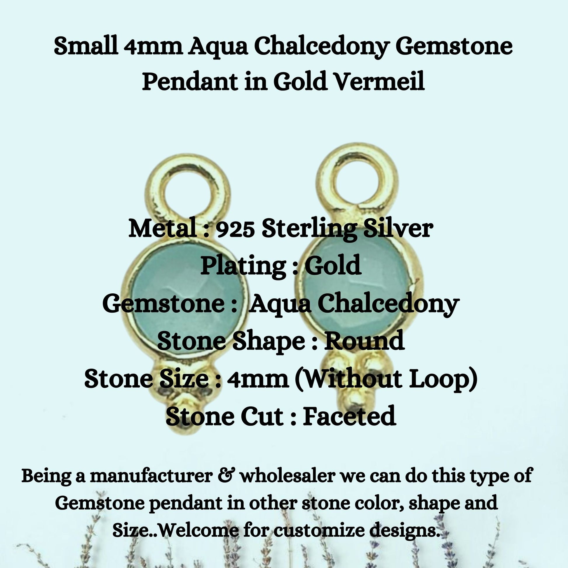 Small 4mm Aqua Chalcedony Gemstone Pendant in Gold Vermeil