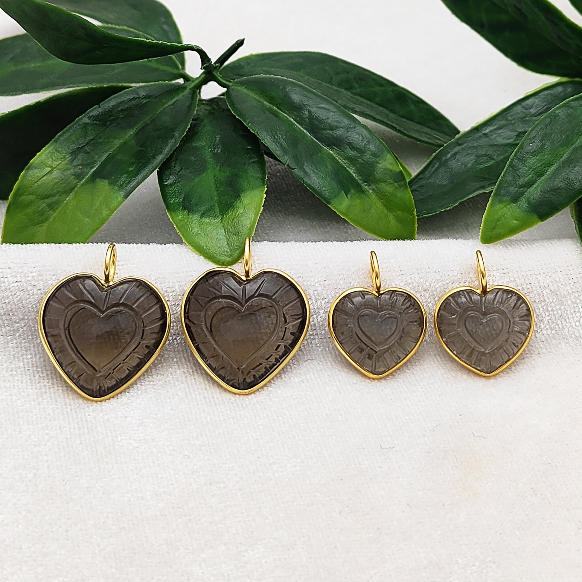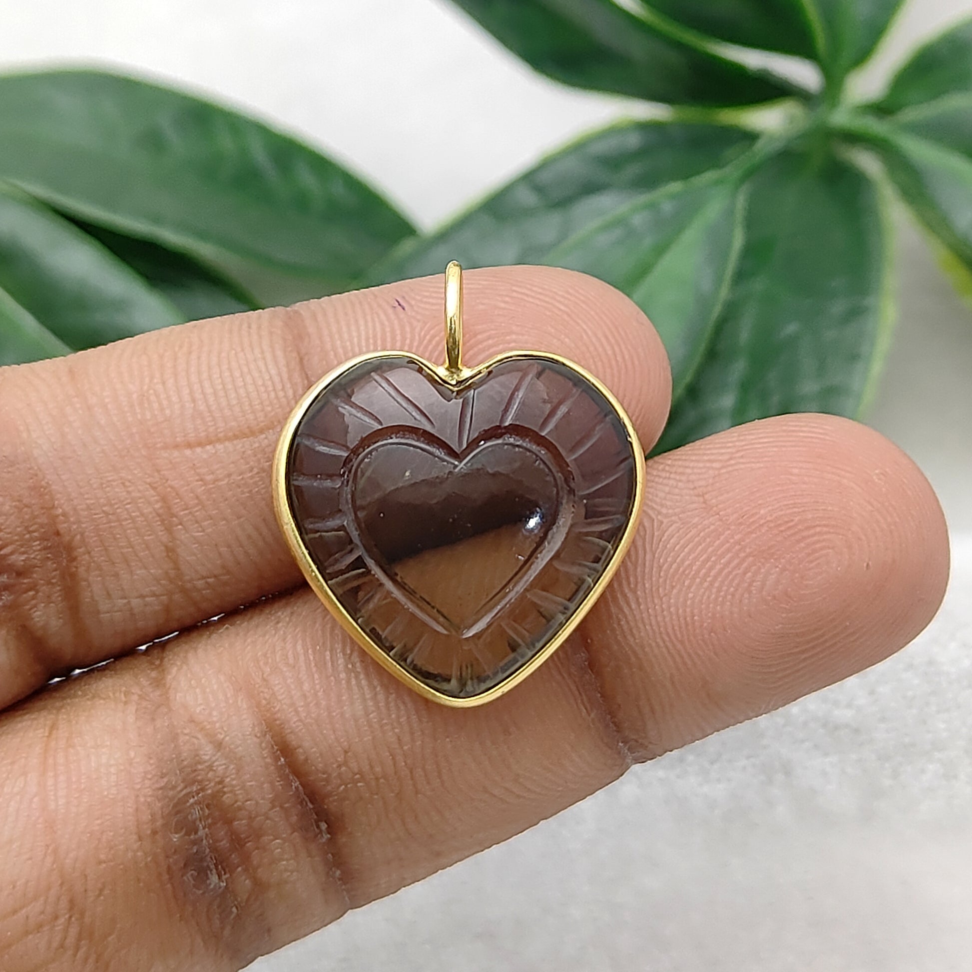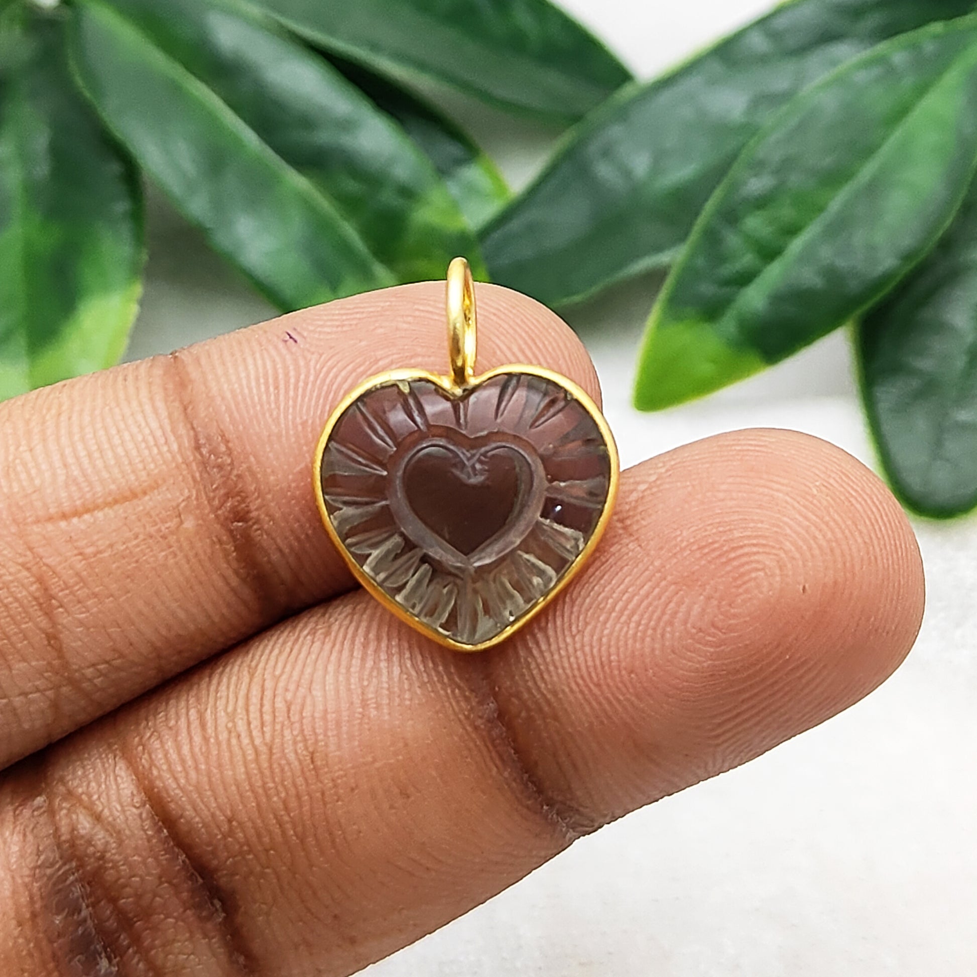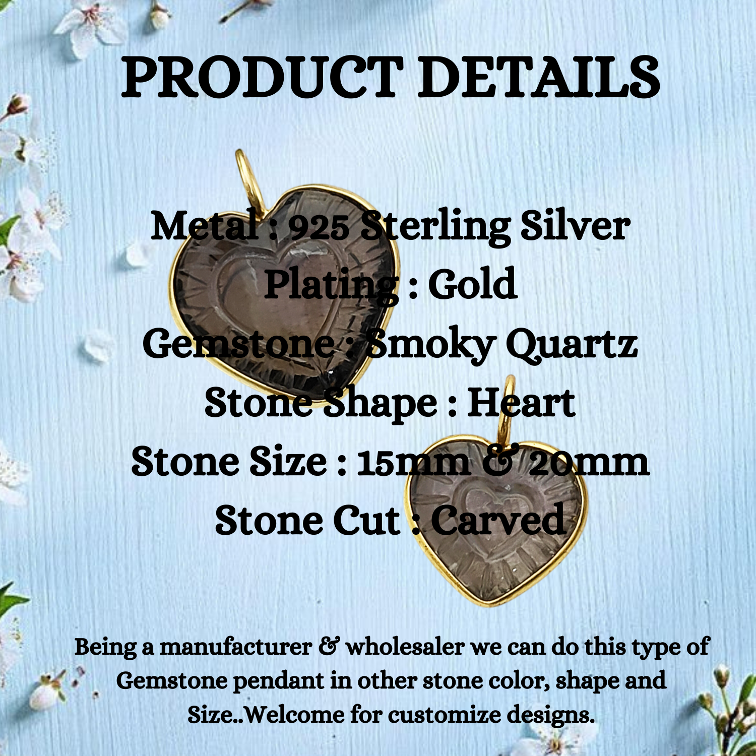 Smoky Quartz Heart-Shaped Crystal Pendant Gold Plated Sterling Silver Jewelry Gift for Women- Selling Per Piece