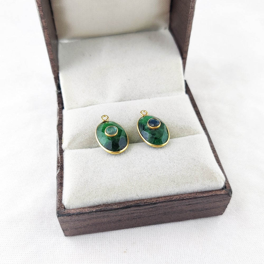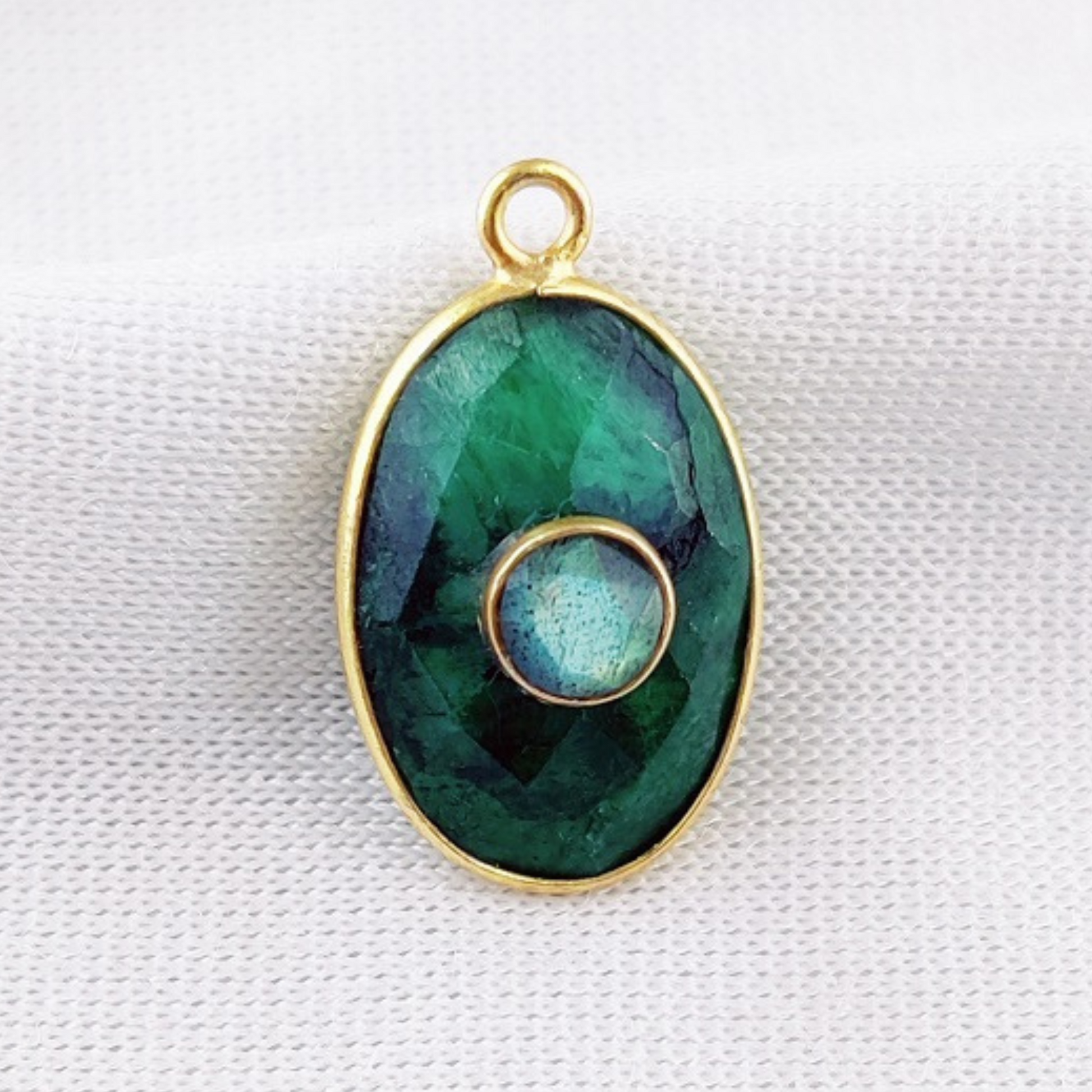Stunning Oval Dyed Emerald Bezel Gemstone Charm Labradorite Double Stone Pendant Gold Vermeil Jewelry- Selling Per Piece