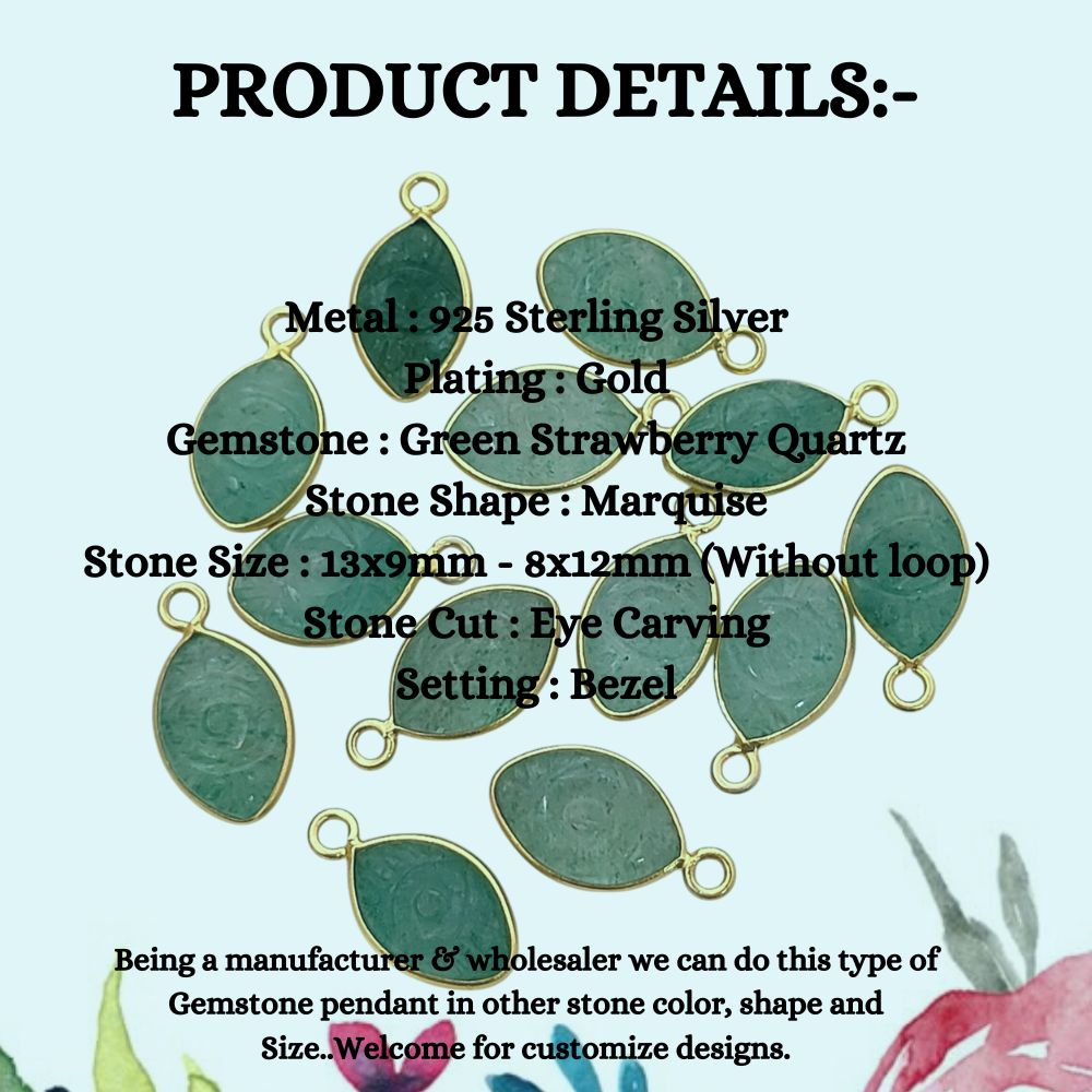 Unique Green Strawberry Quartz Evil Eye Pendant Handmade Gold Plated Sterling Silver Jewelry- Selling Per Piece