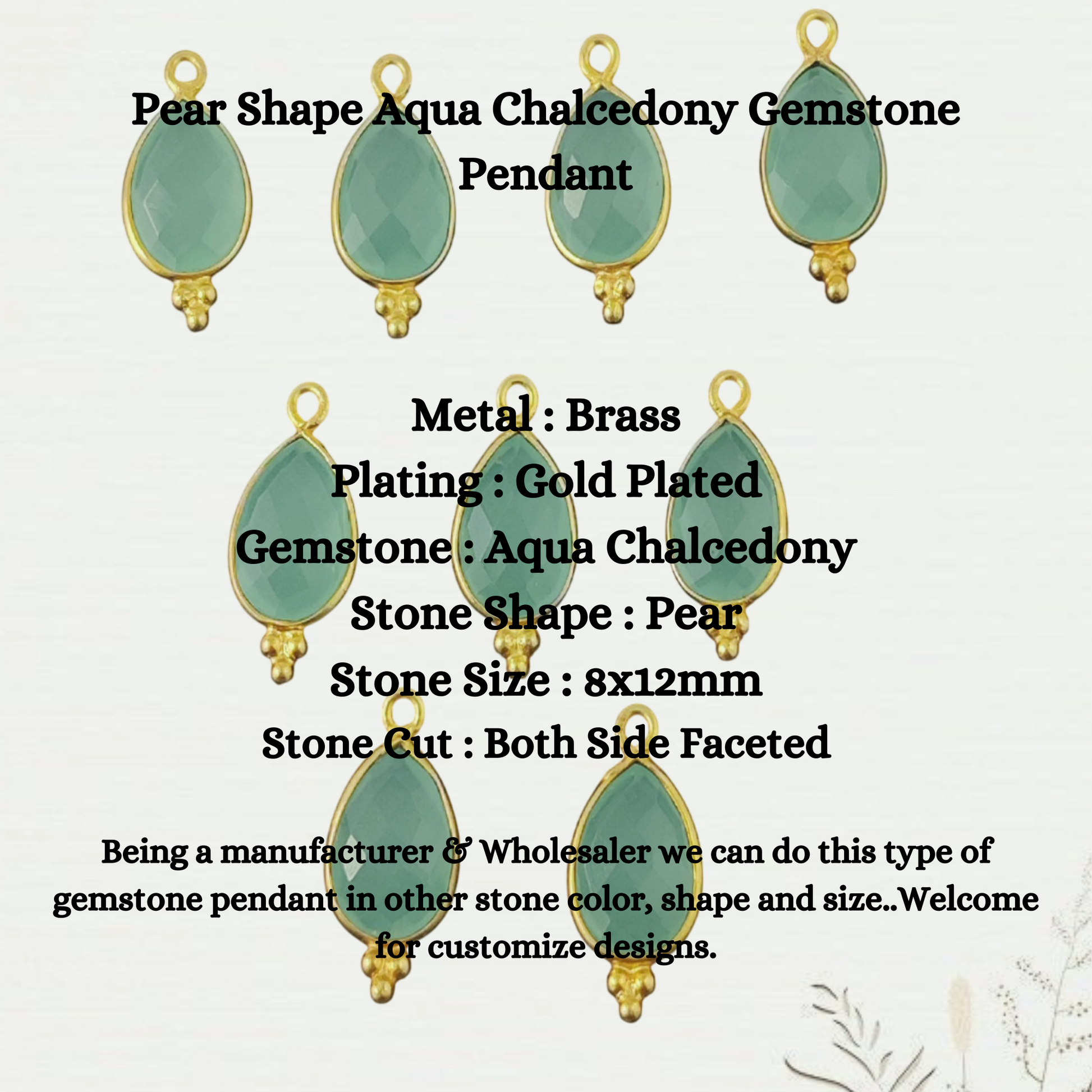 Women Delicate Gold Plated Minimalist Jewelry Pear Shape Aqua Chalcedony Gemstone Pendant- Selling Per Piece