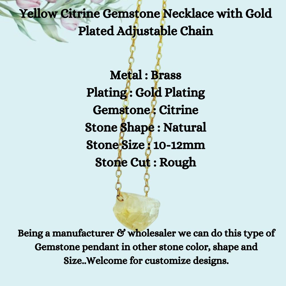Yellow Citrine Gemstone Necklace with Gold Plated Adjustable Chain